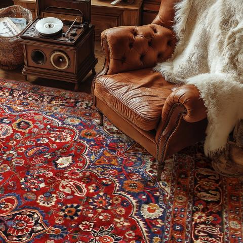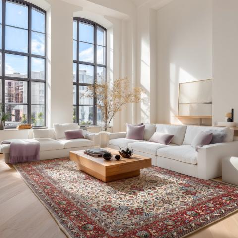 ペルシャ絨毯:最も有名で伝統あるオリエンタルラグです。手織りのペルシャ絨毯は、花柄やメダリオン模様、高密度の結びが特徴で、世界中で高く評価されています。イスファハン、タブリーズ、ゴム、カシャーン、サルークなどの名高い産地は、精密さと細部へのこだわり、そして何世紀にもわたる職人技の象徴です。