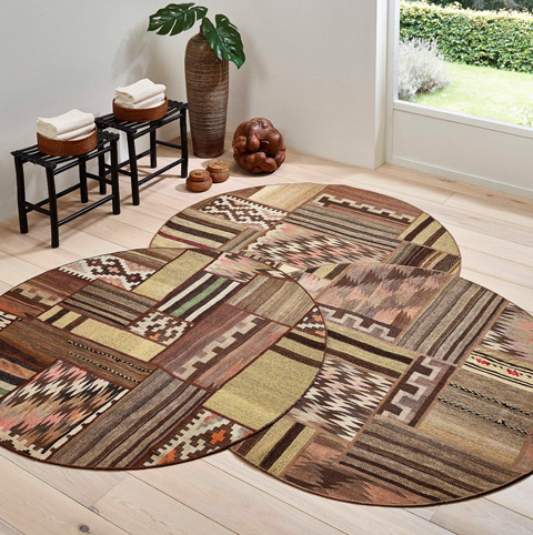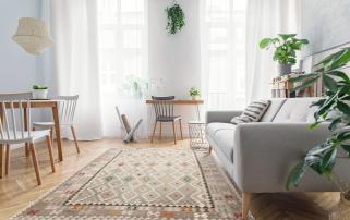 キリム:人気の高いキリムは、世界でも広く知られる平織りラグです。単色から大胆で創造的なデザインまで幅広く、個性的で多用途に活用できます。ほとんどすべてのインテリアスタイルに適しています。