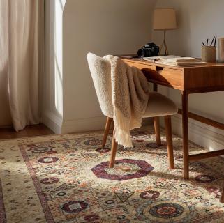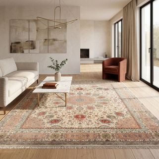 ジーグラーラグ:クラシックなペルシャ模様に着想を得ながら、より大きなパターンと柔らかな色調を採用しています。伝統的な装飾と西洋的な落ち着いた美しさを融合し、さまざまな空間に調和します。