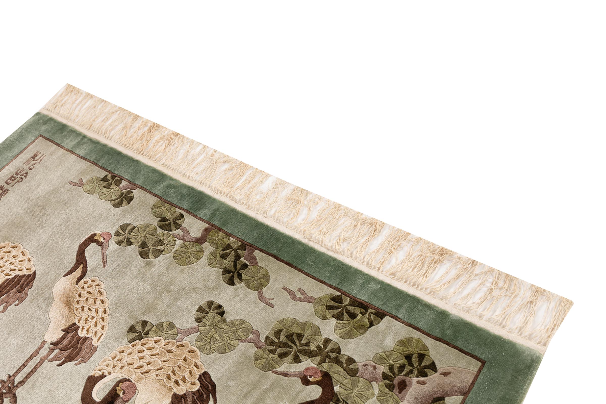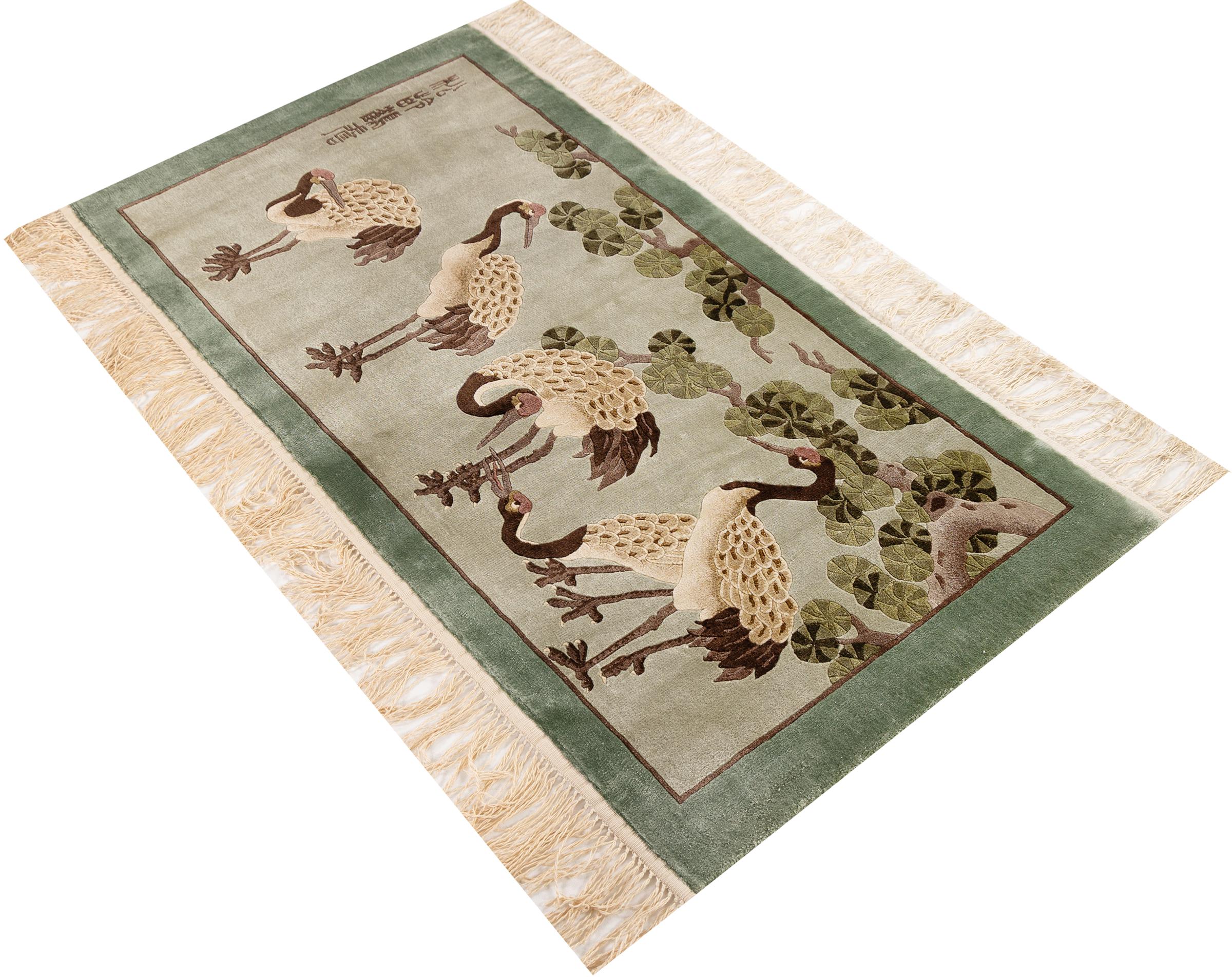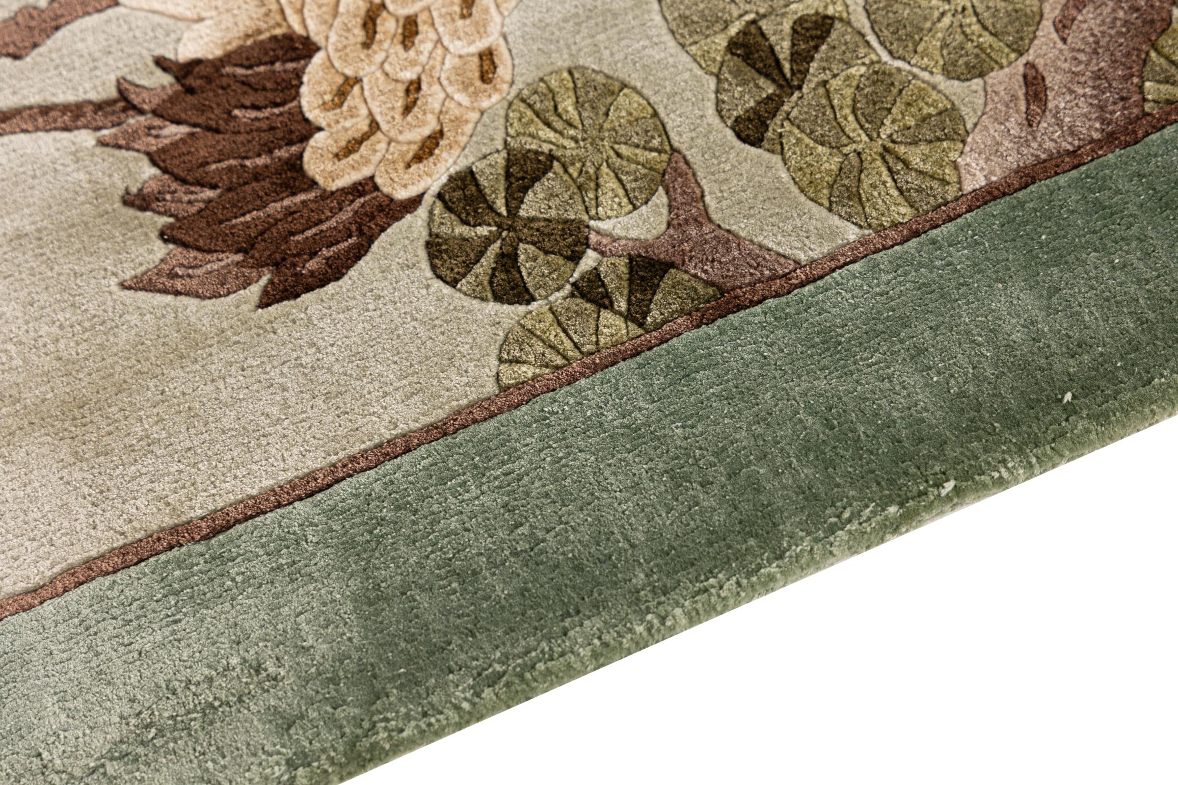 この中国製のカーペットはピュアシルクから手織りされており、その美しい輝きが印象的です。極東のデザインは中国のファンを喜ばせるだけではありません。このようなカーペットは、何世紀にもわたるカーペット文化から生まれた真の贅沢を表しています。