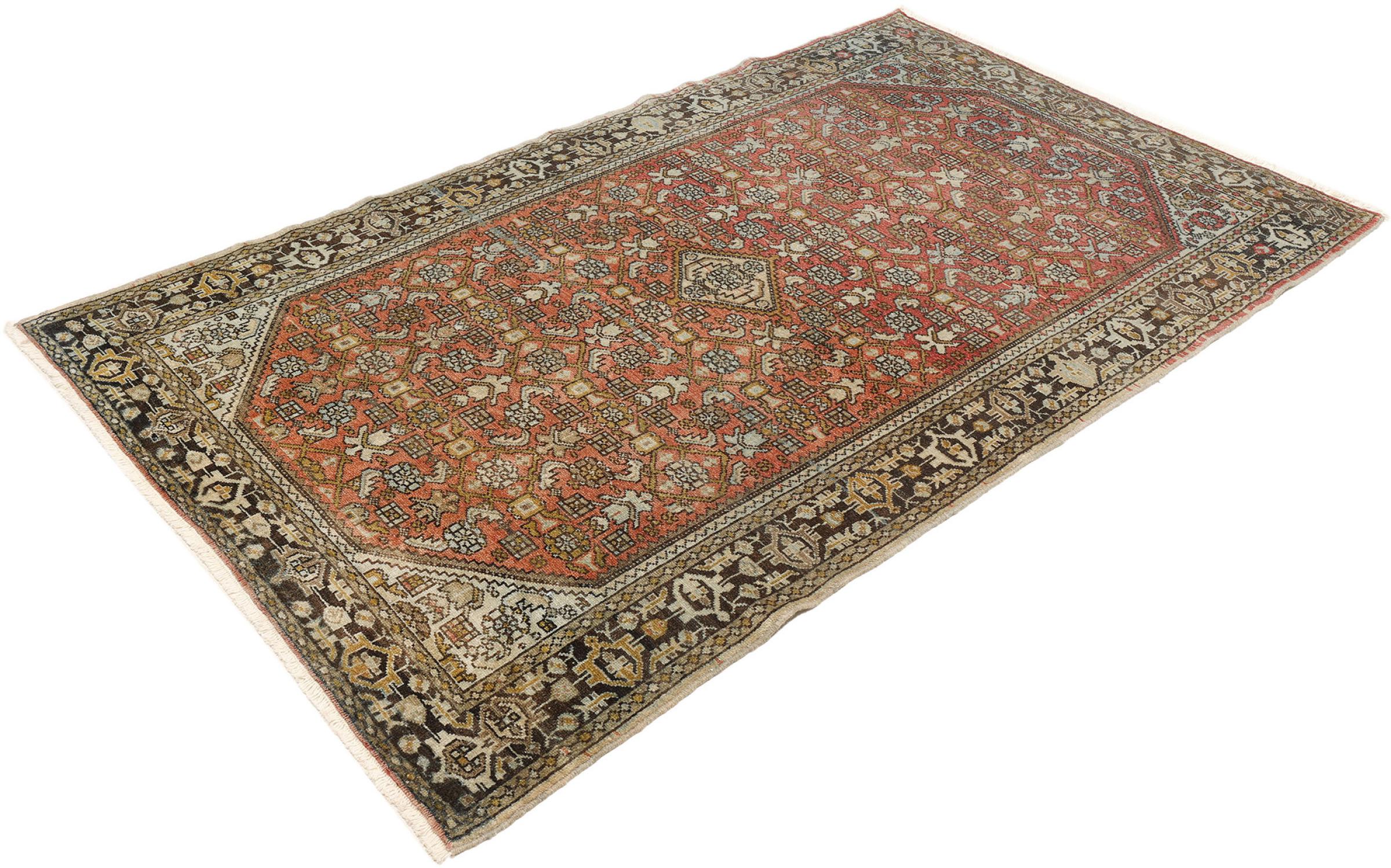 イラン(旧ペルシャ)の村や遊牧民の絨毯に属する絨毯です。この種の絨毯は、昔からの伝統で、小さな町や村で手で結ばれています。遊牧民でさえ、今でもペルシャ絨毯を野外で結びます。絨毯は柄がなく、頭から完全に結びます。古典的な装飾品が特徴で、直線的で幾何学的なパターンで配置されています。 文化的に伝統的な起源を持つこのカーペットは、古代ペルシャを体現するユニークな個性を持っています。