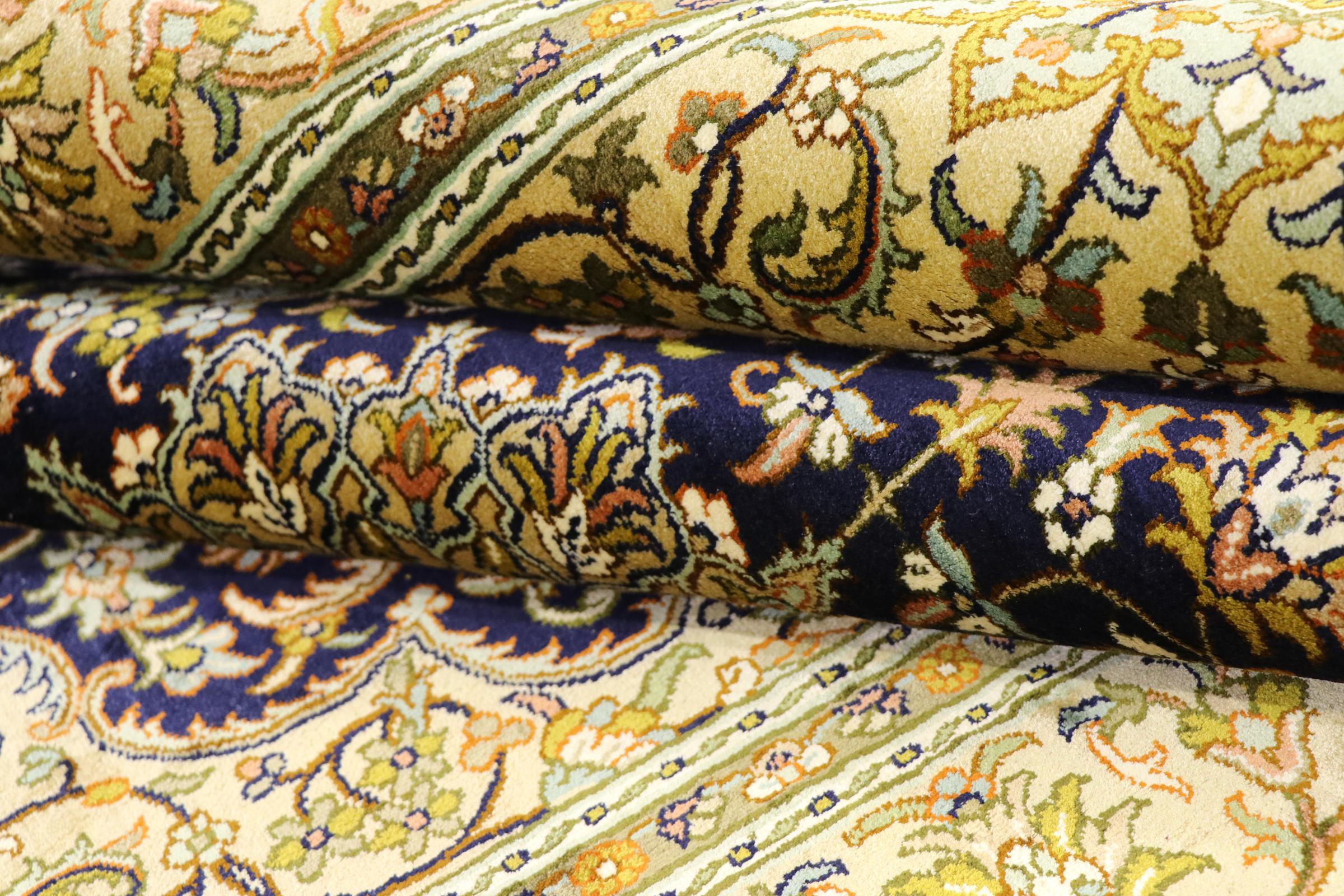 伝統的な手織り絨毯は、今でもあらゆる種類の絨毯の中で最高品質の基準となっています。結び目の種類にもよりますが、非常に丈夫で、何世代にもわたってカーペットを長持ちさせることができます。カーペットの結び目が細かく、きつくなればなるほど、パイルに細かい装飾品や模様を描くことができます。同時に、非常に細かいオリエンタルカーペットは、ノッターの経験と技術のレベルが高いだけでなく、はるかに高い手動の努力を必要とします。このように、結び目の密度は手織りカーペットの決定的な価値の要因にもなります。品質は結び目の密度とは直接関係ありません。やや目の粗いカーペットは、優れた品質のものが作られていたのかもしれません。
