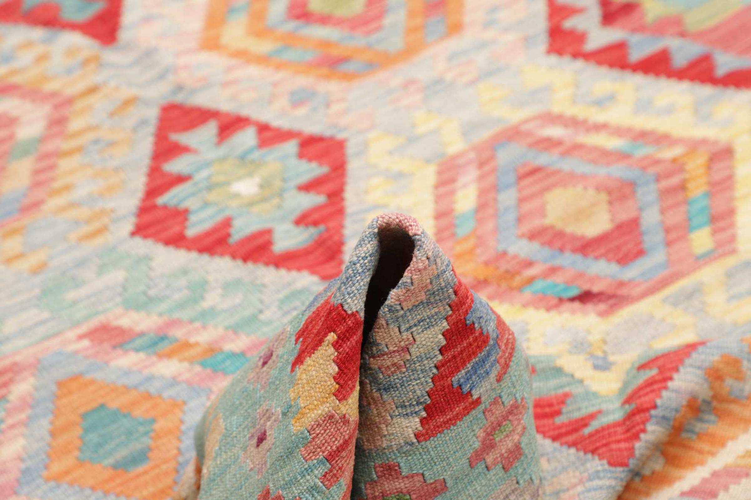 この手織りのキリム アフガンは、多面的な色と典型的なパターンのおかげで美しいです。 アフガニスタンで100%羊毛を使用して手織りされました。 間違いなく機械で作られたカーペットよりも丈夫で耐久性があります。 また、このキリムには独特の個性があります。 二度と見つからない、あなたとあなたの家のためのユニークな作品。