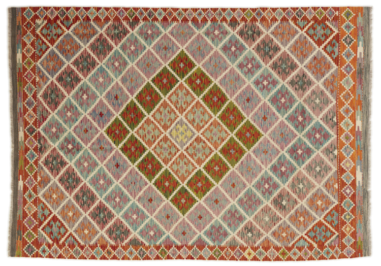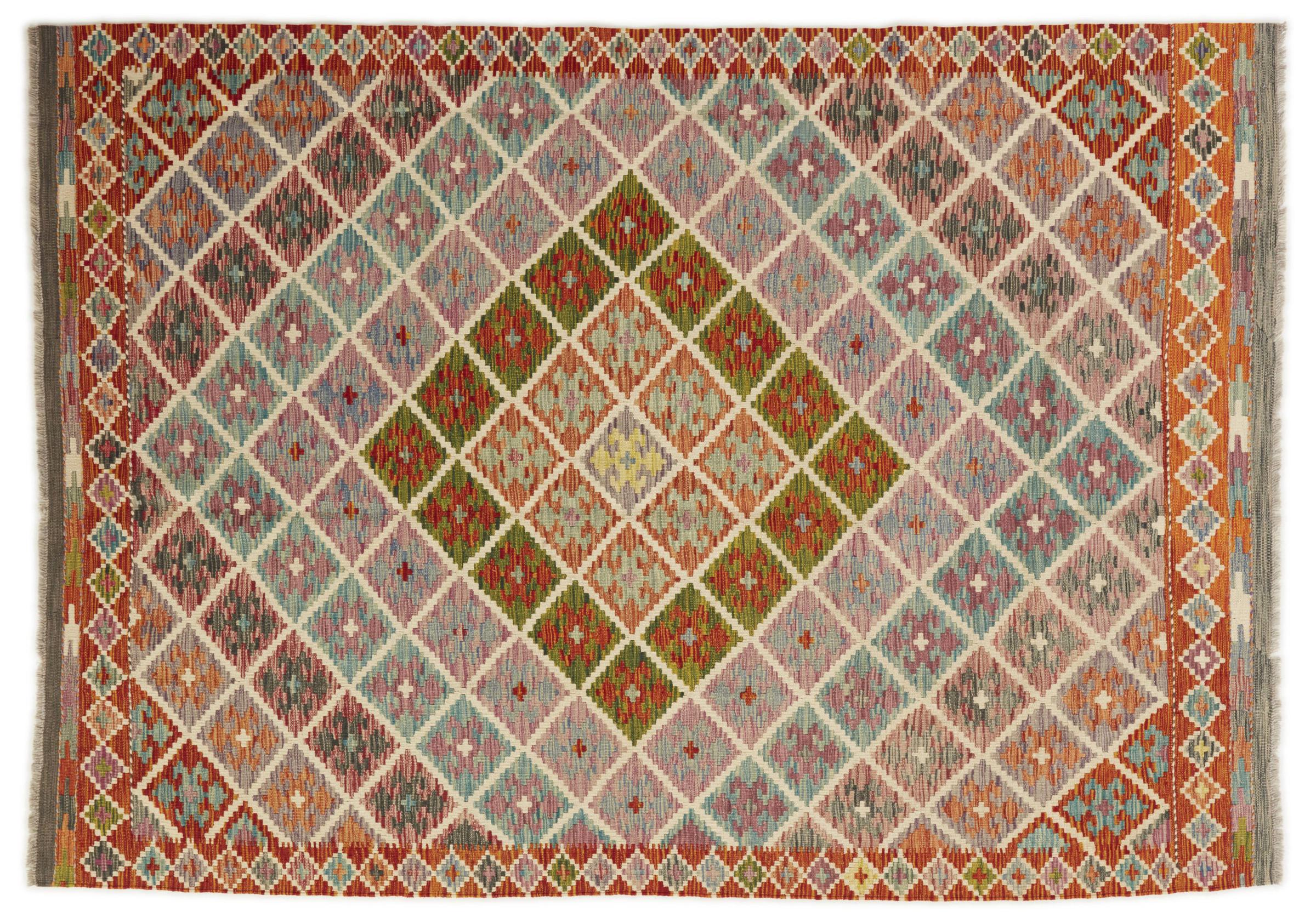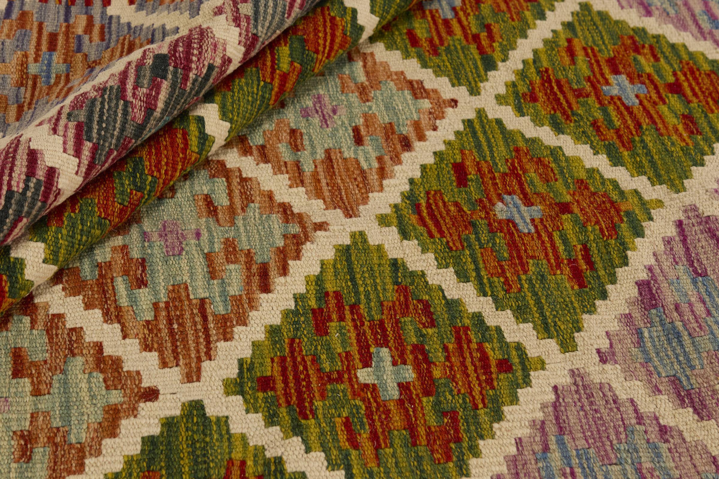 この手織りのキリム アフガンは、多面的な色と典型的なパターンのおかげで美しいです。 アフガニスタンで100%羊毛を使用して手織りされました。 間違いなく機械で作られたカーペットよりも丈夫で耐久性があります。 また、このキリムには独特の個性があります。 二度と見つからない、あなたとあなたの家のためのユニークな作品。