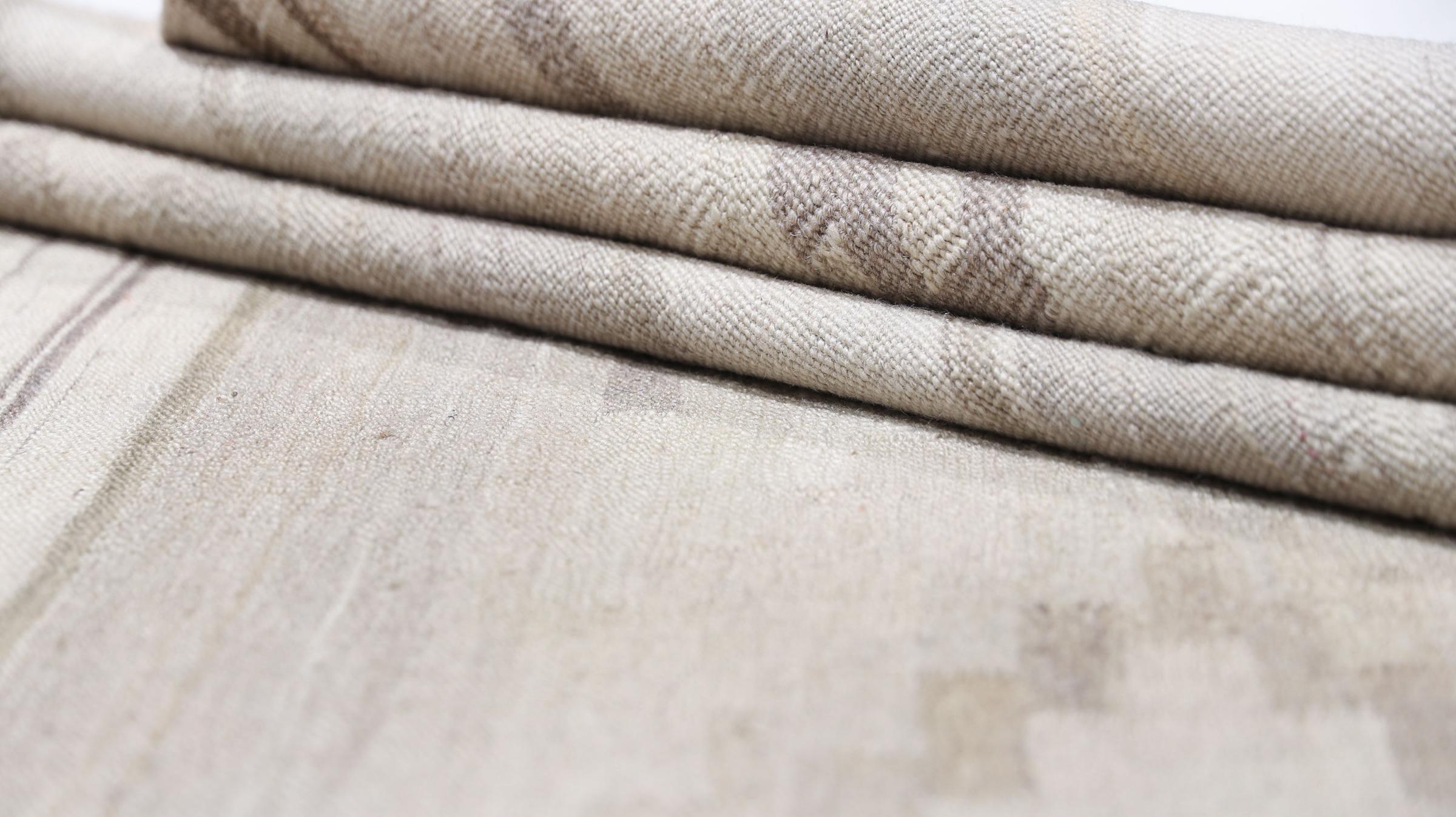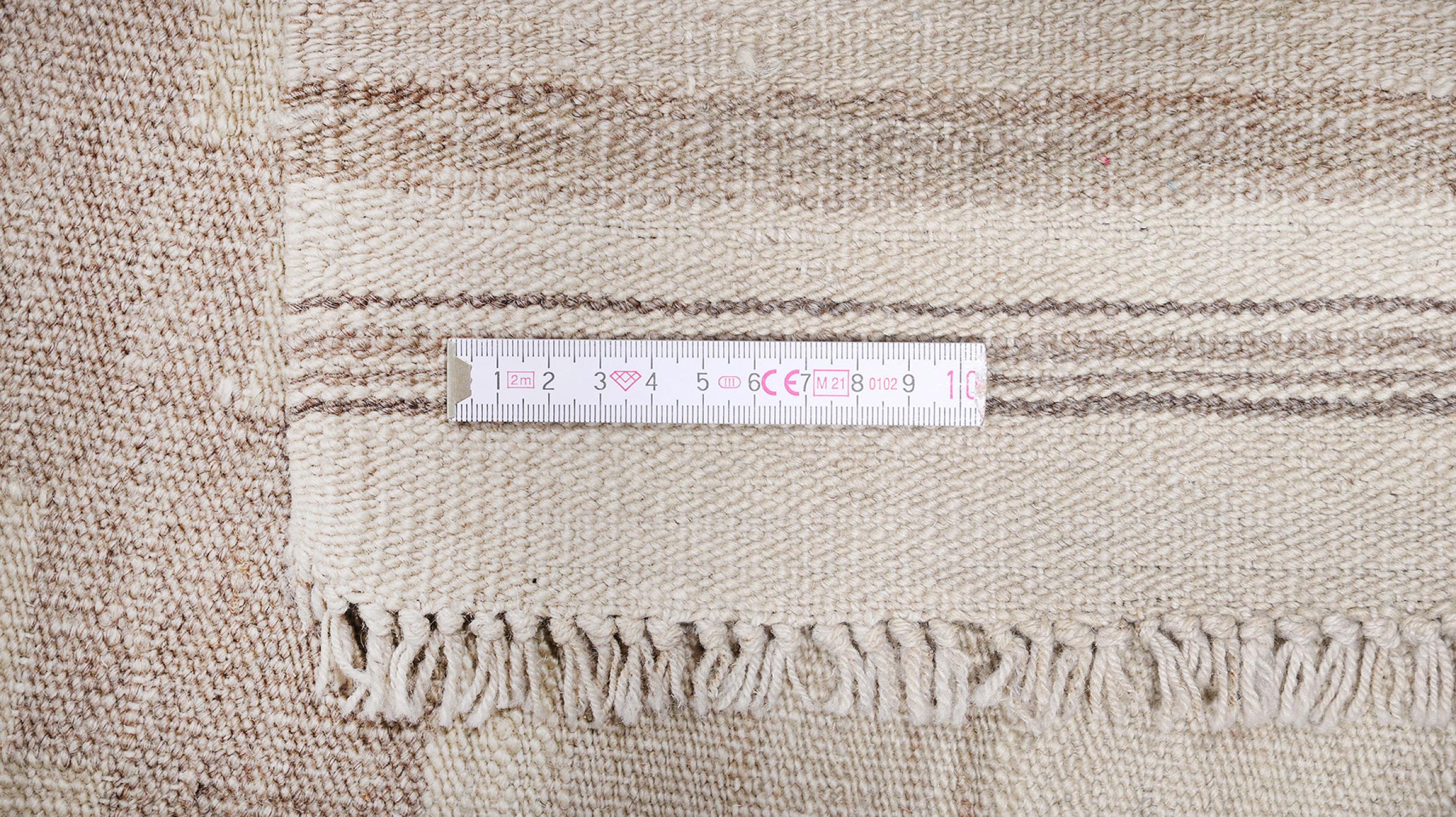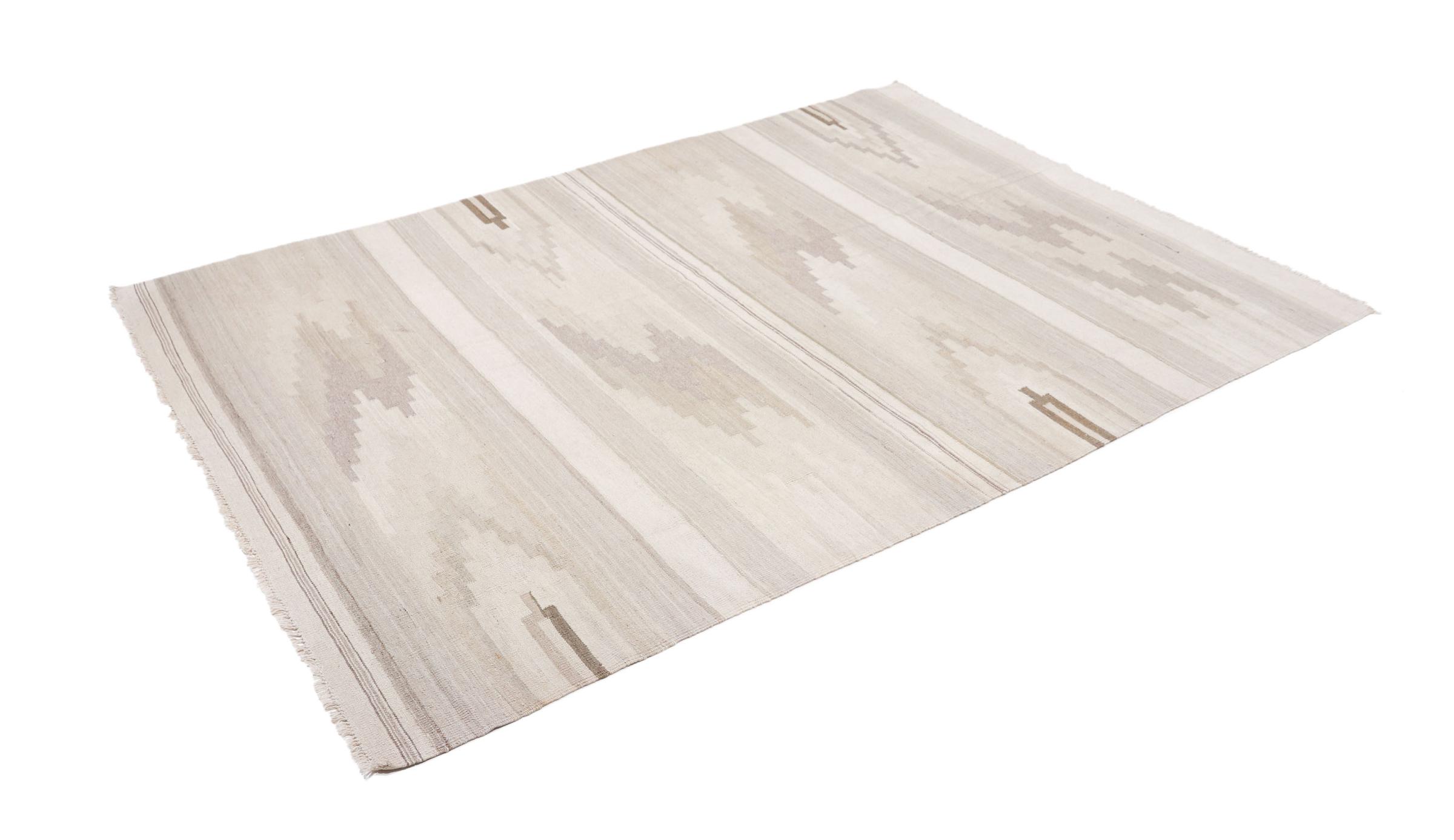 この絨毯は、平織りとして織機で手作業で作られたものです。フラットウィーブとは、パイルのないカーペットを指す言葉です。その名の通り、この絨毯は織られていて、結び目はありません。これにより、表面が構造化されたフラットカーペットが得られる。平織りは、結び目のあるカーペットよりも柔らかくなく、通常は薄くなります。同時に、彼らは製造するためにはるかに複雑ではなく、通常は両側(表と裏)からレイアウトすることができます。彼らのパターンは通常、生地によって決定される幾何学的なものです。
