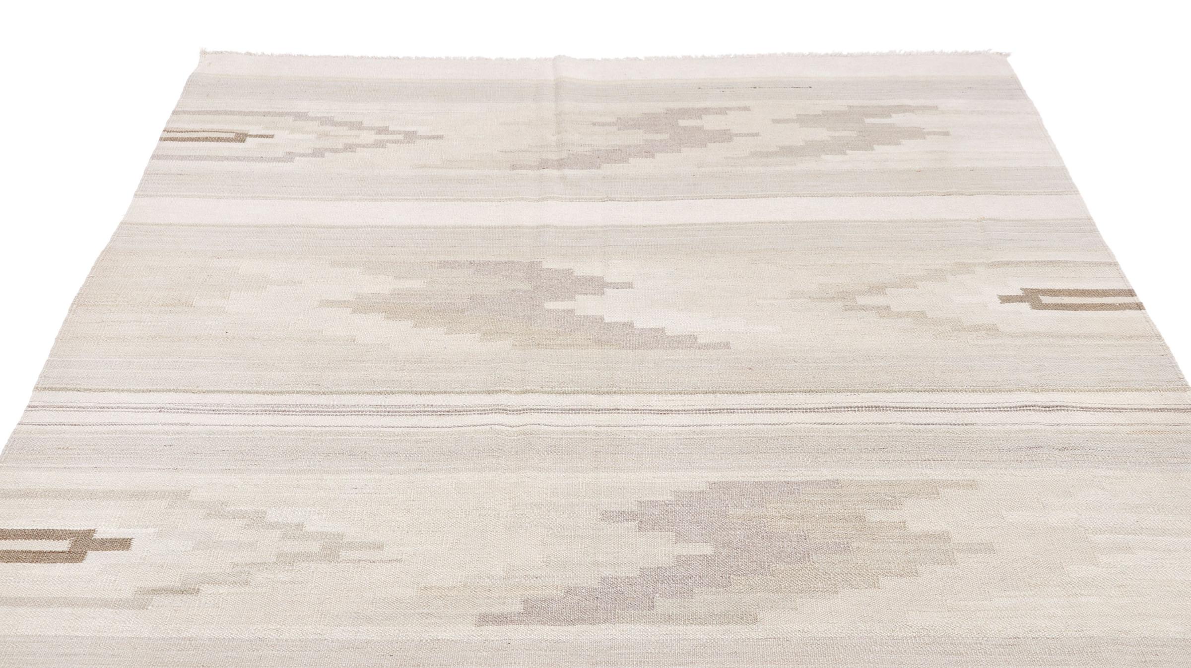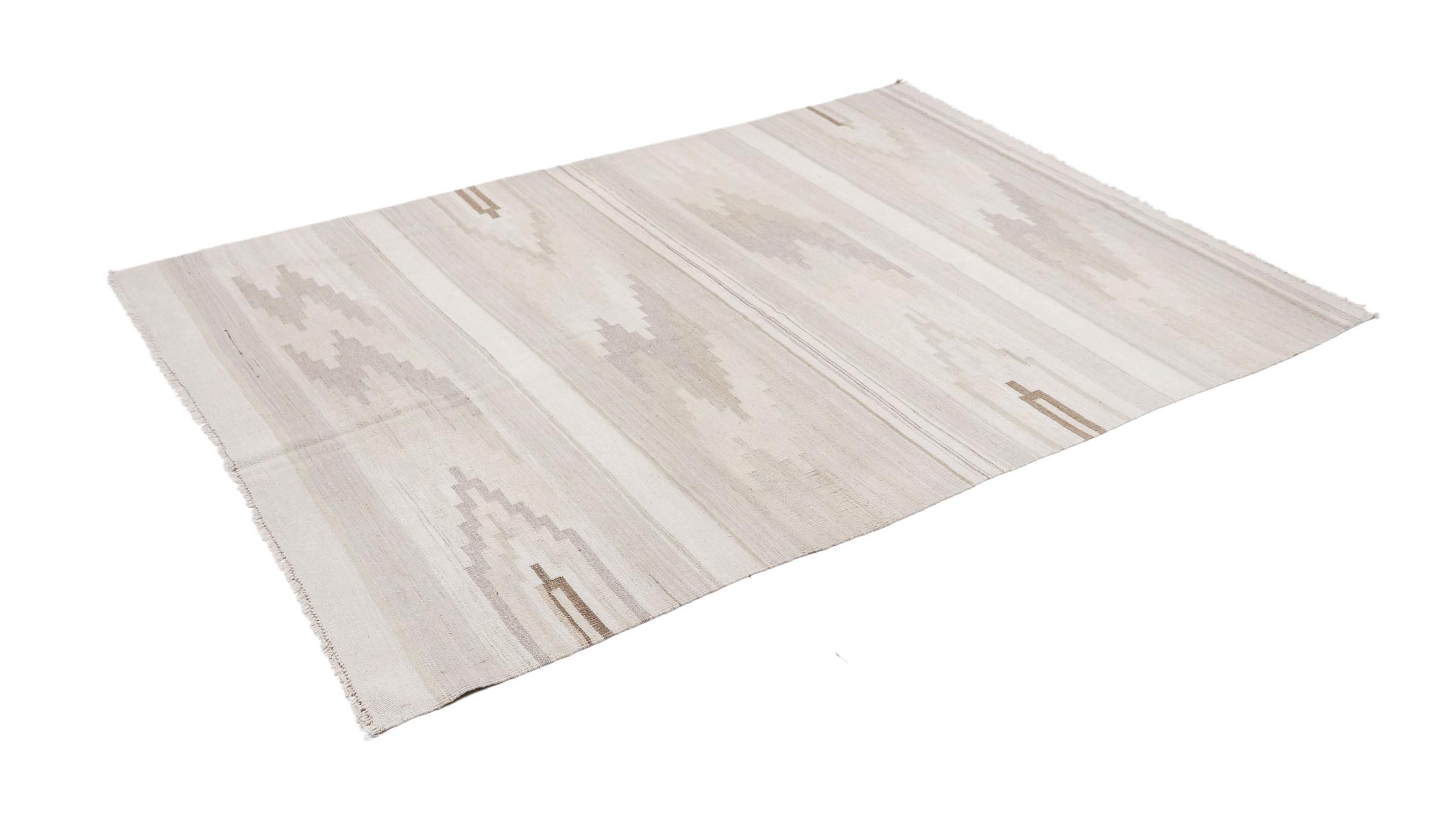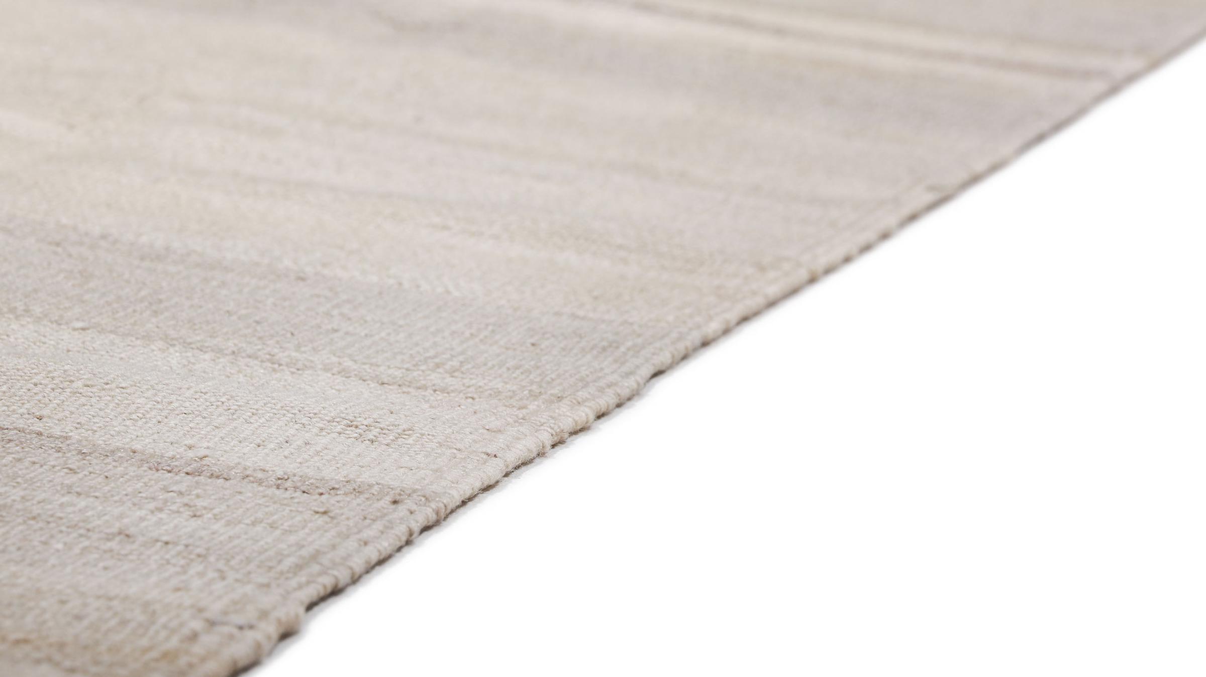 この絨毯は、平織りとして織機で手作業で作られたものです。フラットウィーブとは、パイルのないカーペットを指す言葉です。その名の通り、この絨毯は織られていて、結び目はありません。これにより、表面が構造化されたフラットカーペットが得られる。平織りは、結び目のあるカーペットよりも柔らかくなく、通常は薄くなります。同時に、彼らは製造するためにはるかに複雑ではなく、通常は両側(表と裏)からレイアウトすることができます。彼らのパターンは通常、生地によって決定される幾何学的なものです。