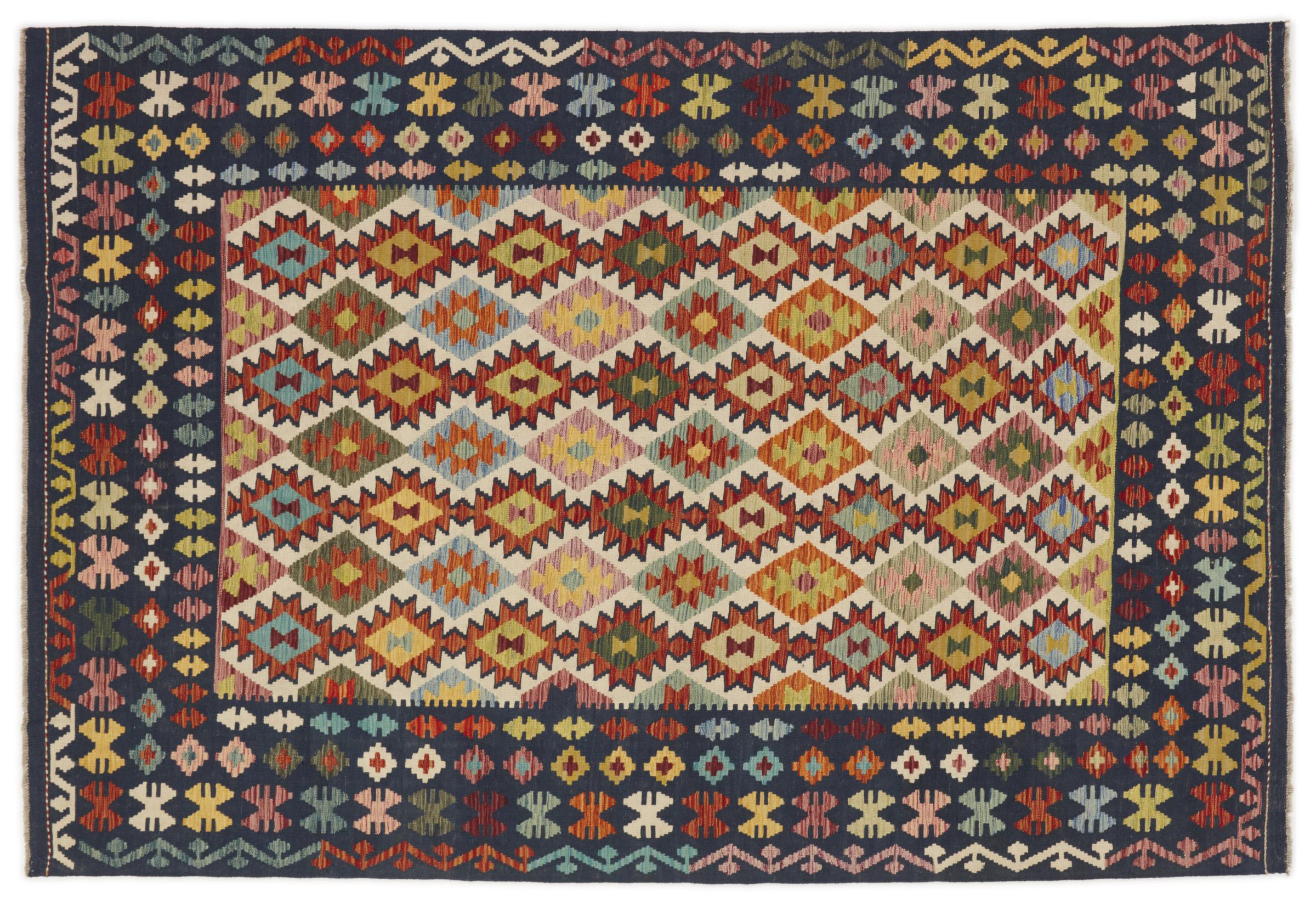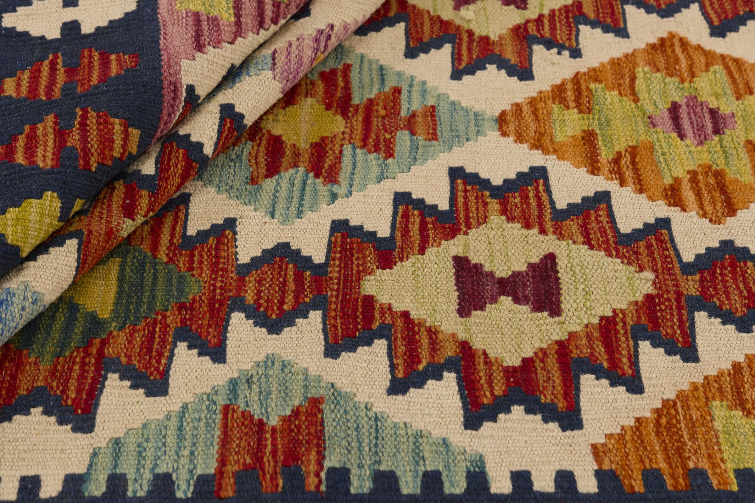 この手織りのキリム アフガンは、多面的な色と典型的なパターンのおかげで美しいです。 アフガニスタンで100%羊毛を使用して手織りされました。 間違いなく機械で作られたカーペットよりも丈夫で耐久性があります。 また、このキリムには独特の個性があります。 二度と見つからない、あなたとあなたの家のためのユニークな作品。