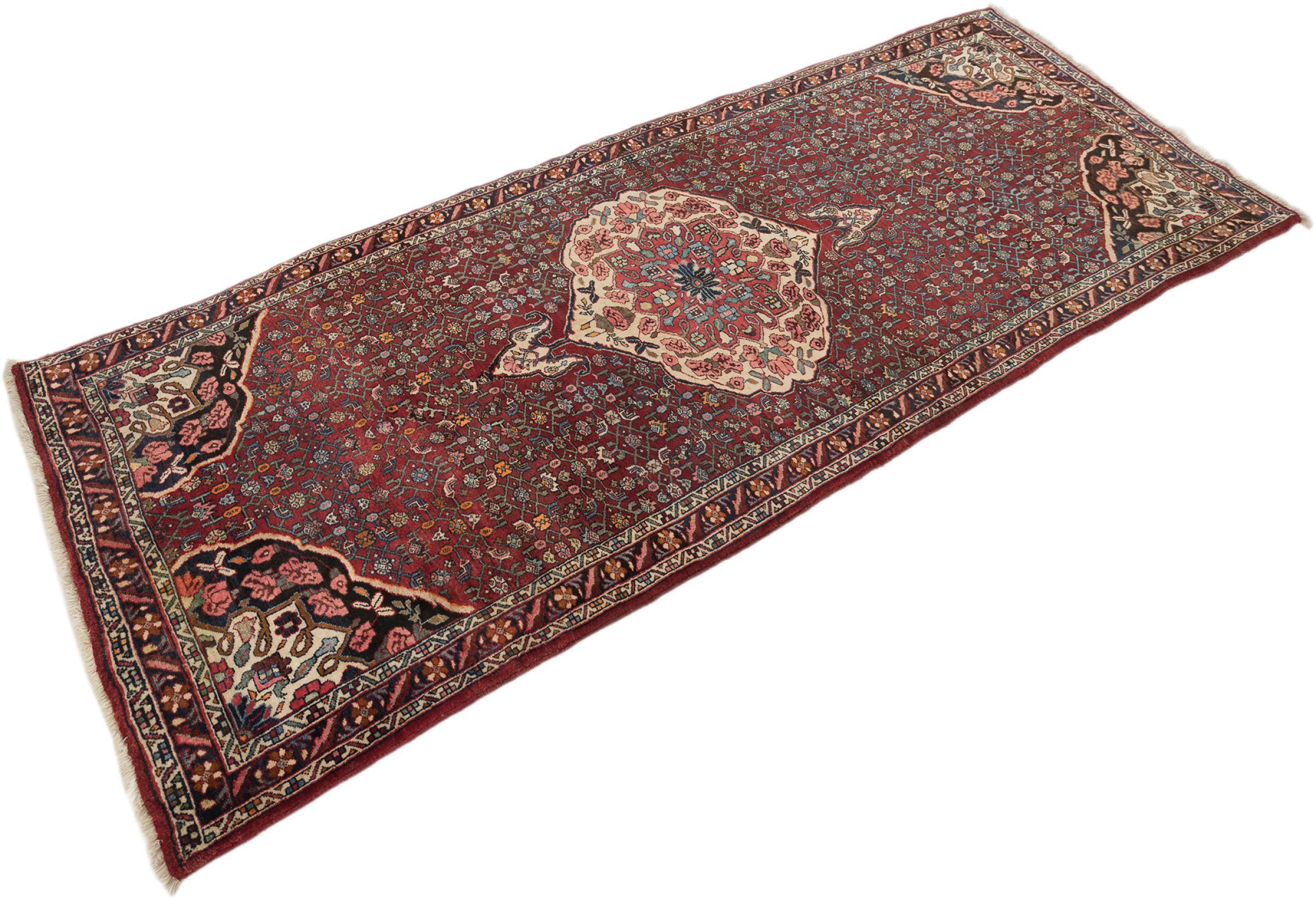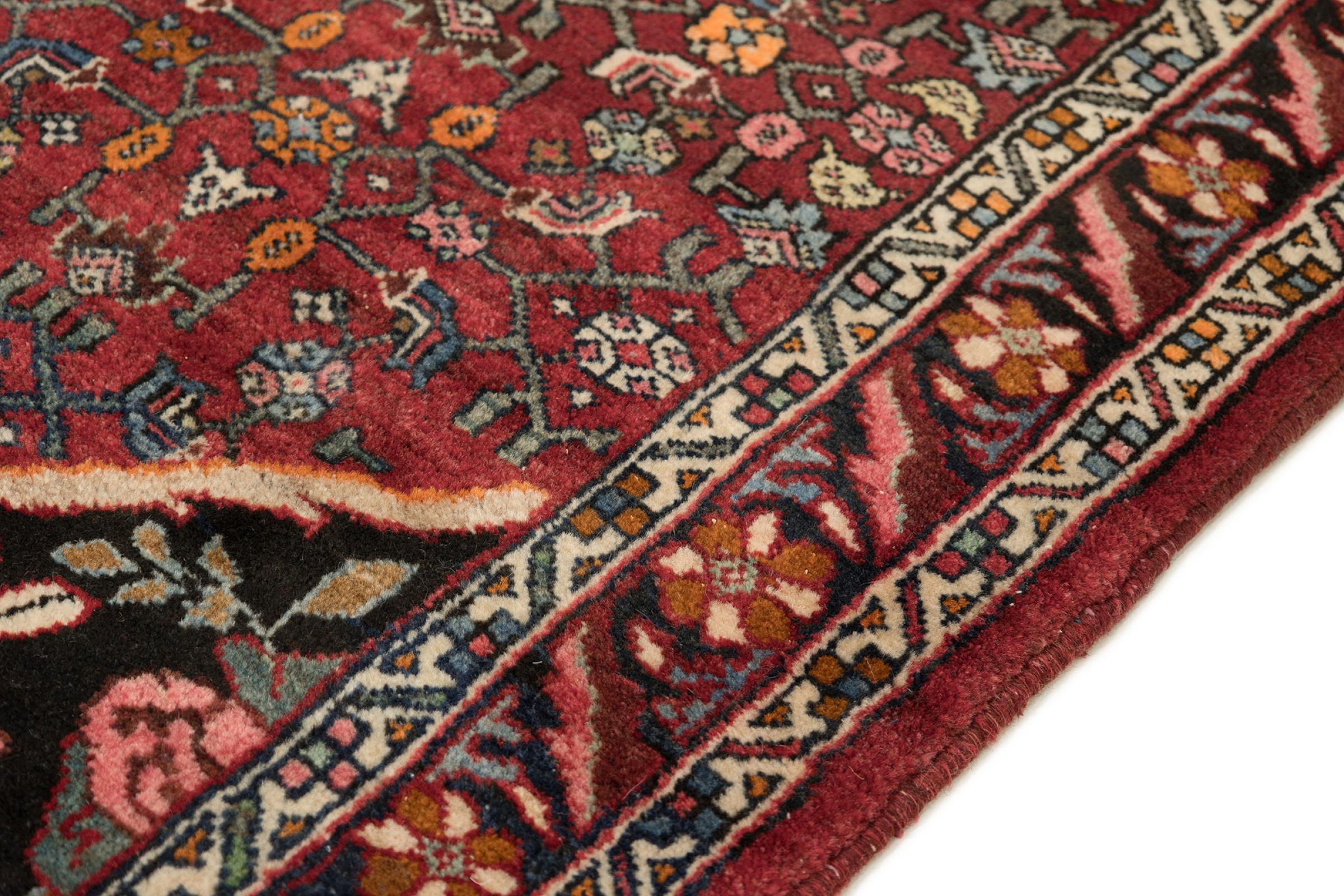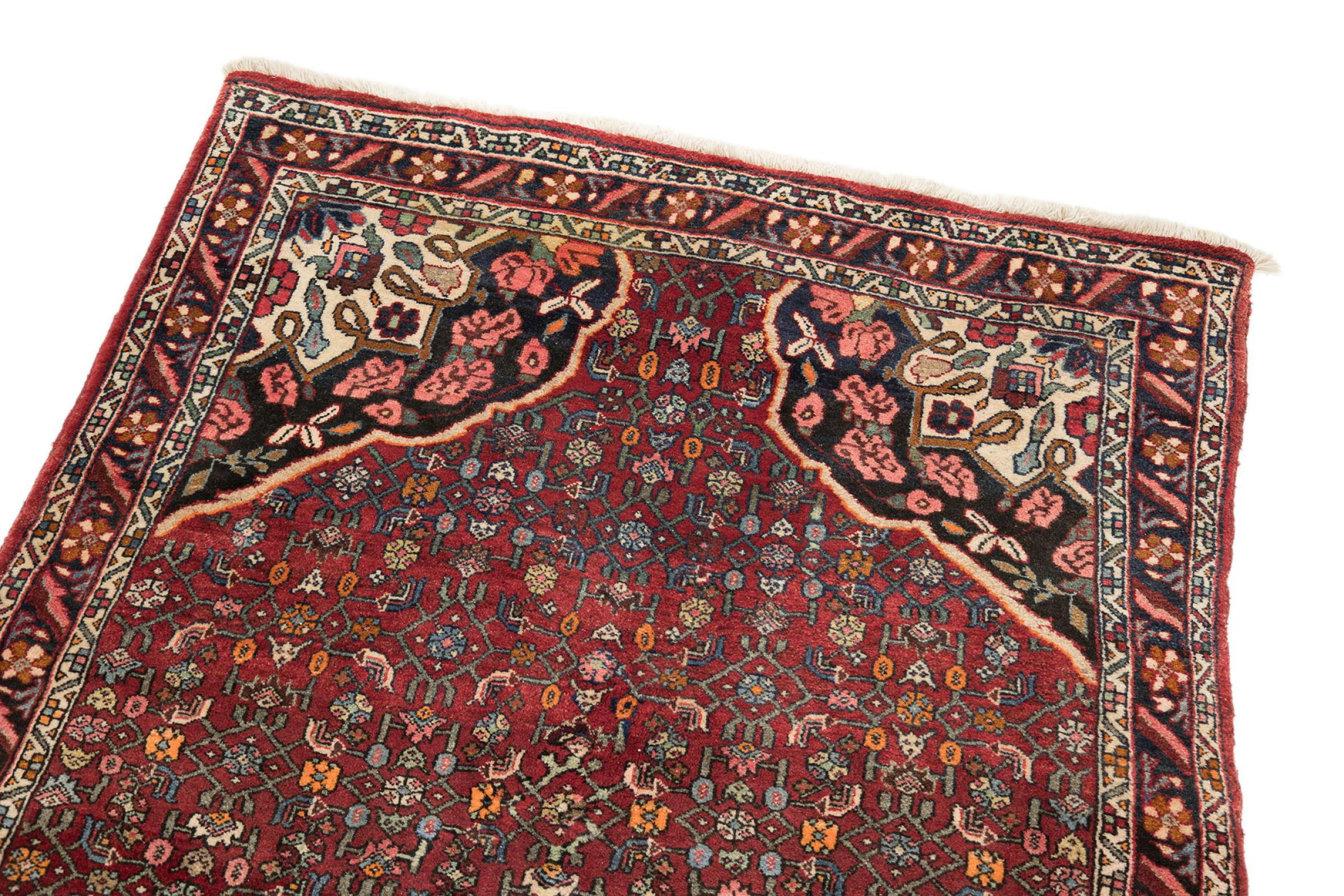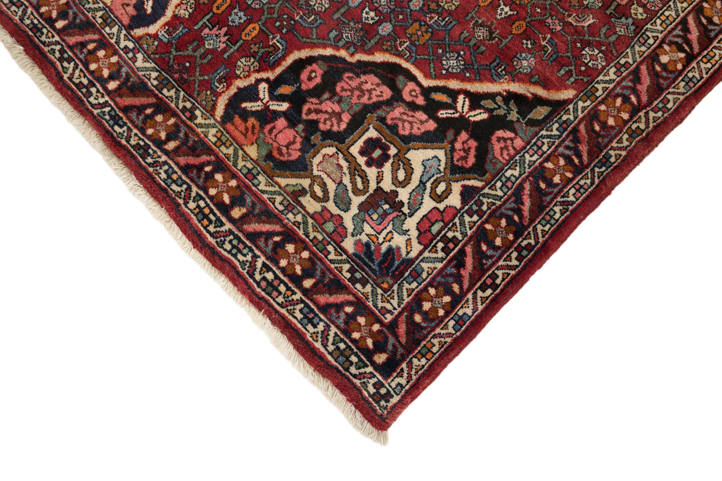 このペルシャ絨毯は、イラン西部のクルド人の小さな町で手織りされたものです。ビジャールカーペットは優れた品質を表しています。しっかりとしたパイルはそのコンパクトさ、したがって耐摩耗性に優れています。ウールは櫛でしっかりと圧縮されているため、パイルはほぼ垂直に上向きに立っています。これは、大きな汚れ粒子が浸透する可能性がほとんどないことを意味します。