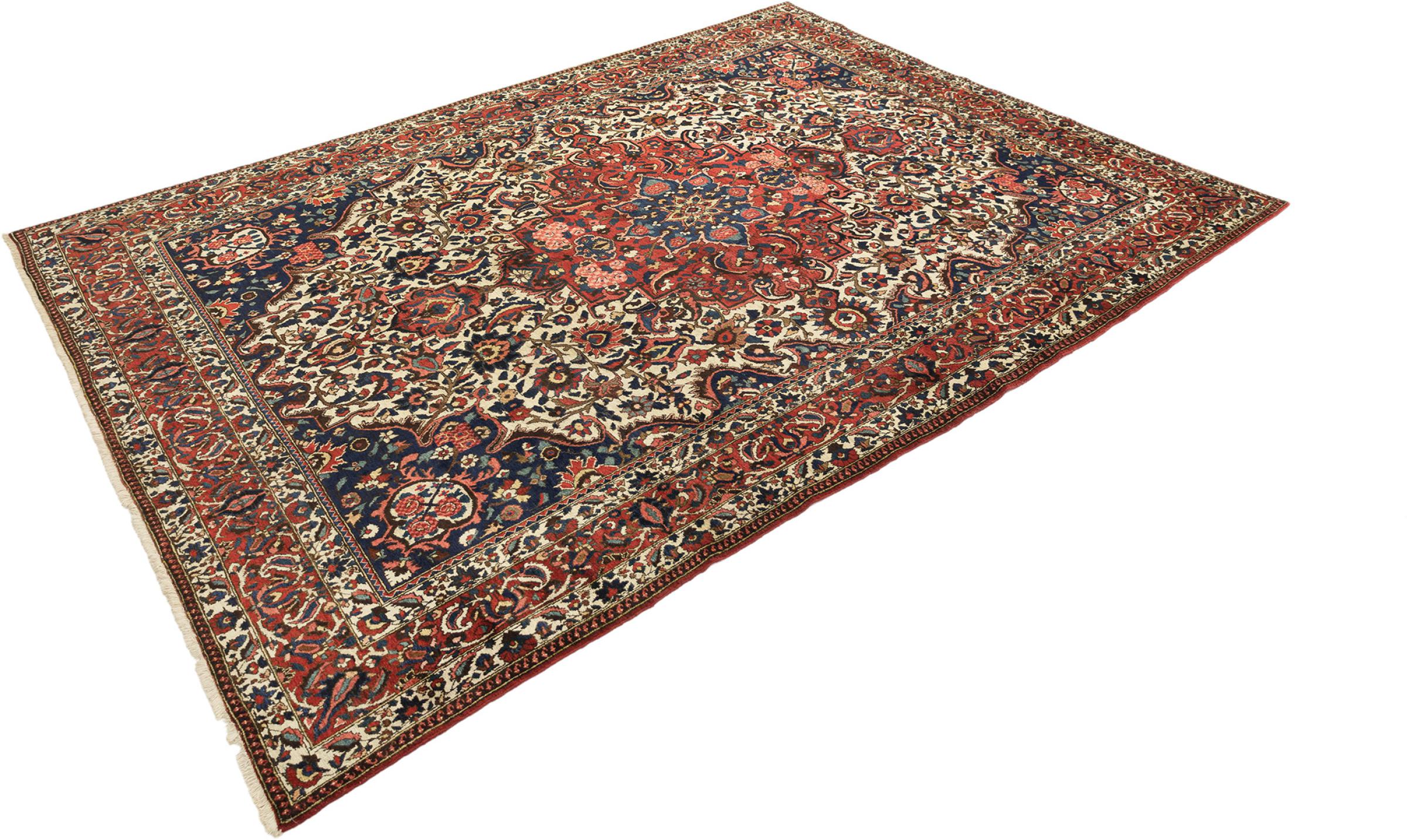 このペルシャのバクティアールは、バクティアリ族の遊牧民によって手編みで作られました。このペルシャ絨毯は、東洋の色彩を最も美しい模様で表現しています。装飾品のデザインはペルシャ庭園からインスピレーションを得ています。いわゆる伝統的な庭園のデザインは、長年にわたって西洋世界で大きな人気を集めてきました。高い結び目密度と丈夫な糸の組み合わせにより、ペルシャ絨毯アートを長期間楽しむことができます。