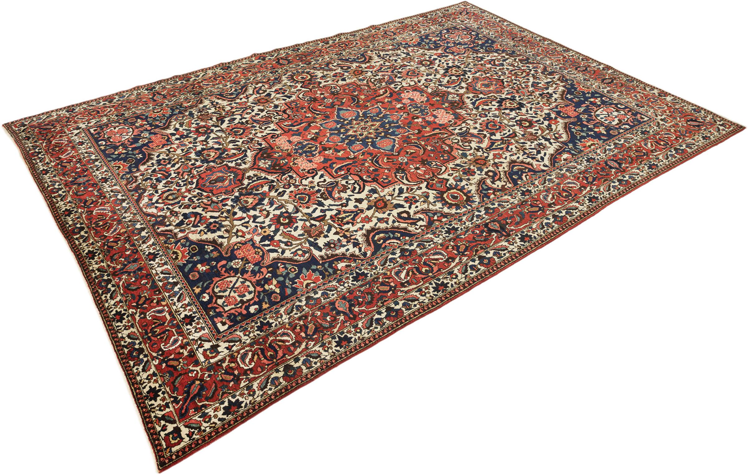 カーペットID 316795004552120 サイズ 380x273 cm 厚さ: およそ 12 mm 密度: 128 000 - 160 000 / m²平方メートル 生産: 手織り 織り目: 手紡ぎウール 整径: コットン 状態・保存 完璧 原産地: イラン 年代: アンティーク80年以上 重さ: およそ 41 kg としても知られている Baktjar 在庫: ユニーク品 - 在庫 1 点のみ