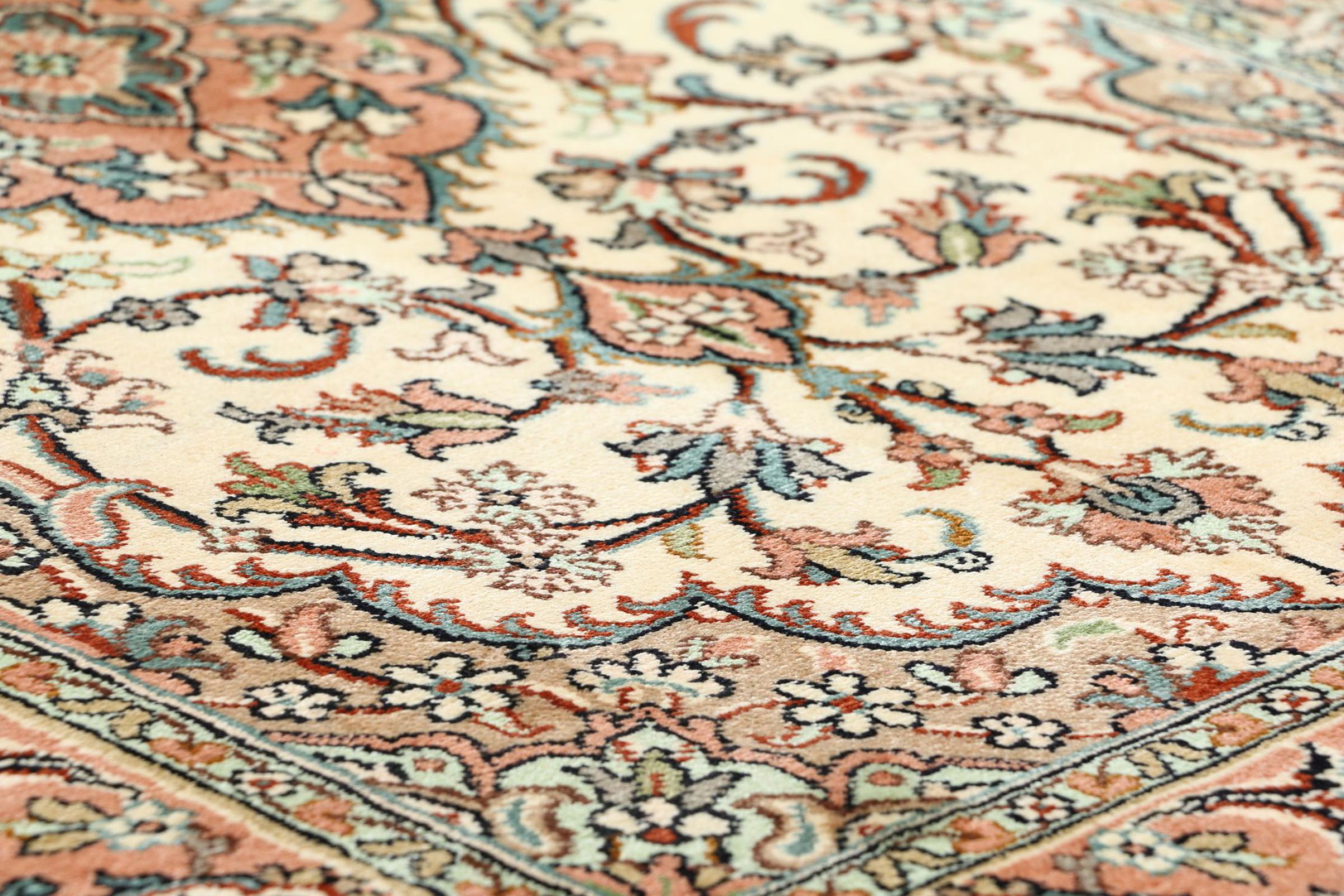 伝統的な手織り絨毯は、今でもあらゆる種類の絨毯の中で最高品質の基準となっています。結び目の種類にもよりますが、非常に丈夫で、何世代にもわたってカーペットを長持ちさせることができます。カーペットの結び目が細かく、きつくなればなるほど、パイルに細かい装飾品や模様を描くことができます。同時に、非常に細かいオリエンタルカーペットは、ノッターの経験と技術のレベルが高いだけでなく、はるかに高い手動の努力を必要とします。このように、結び目の密度は手織りカーペットの決定的な価値の要因にもなります。品質は結び目の密度とは直接関係ありません。やや目の粗いカーペットは、優れた品質のものが作られていたのかもしれません。