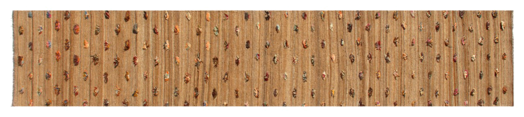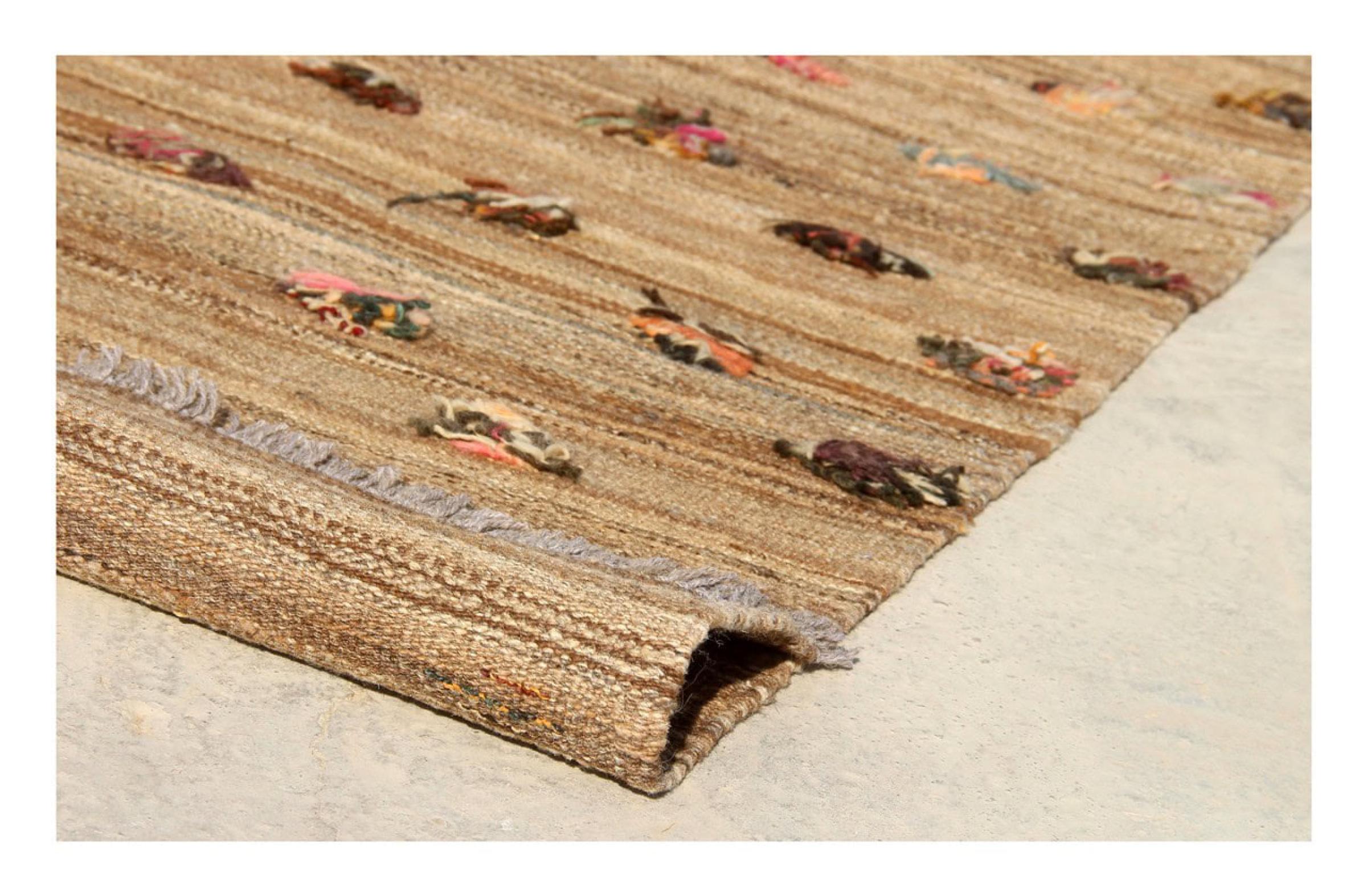 この絨毯は、平織りとして織機で手作業で作られたものです。フラットウィーブとは、パイルのないカーペットを指す言葉です。その名の通り、この絨毯は織られていて、結び目はありません。これにより、表面が構造化されたフラットカーペットが得られる。平織りは、結び目のあるカーペットよりも柔らかくなく、通常は薄くなります。同時に、彼らは製造するためにはるかに複雑ではなく、通常は両側(表と裏)からレイアウトすることができます。彼らのパターンは通常、生地によって決定される幾何学的なものです。