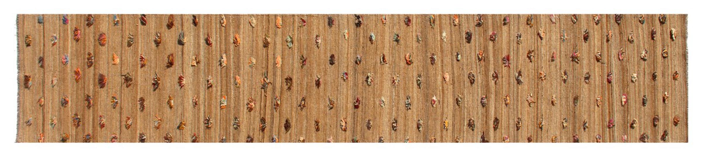 同時に、アフガンエディションケリムには現代的に解釈されたカラーバリエーションも含まれています。これには、ベージュ、グレー、オリーブなどの調和の取れた自然色や、ターコイズ、グリーン、ピンク、または多色構成の生き生きとしたアクセントが含まれています。この多様性により、アフガニスタンのケリムは特に変化に富んでおり、伝統的な目を引く要素としても、現代の住空間におけるスタイリッシュなデザイン要素としても使用できます。