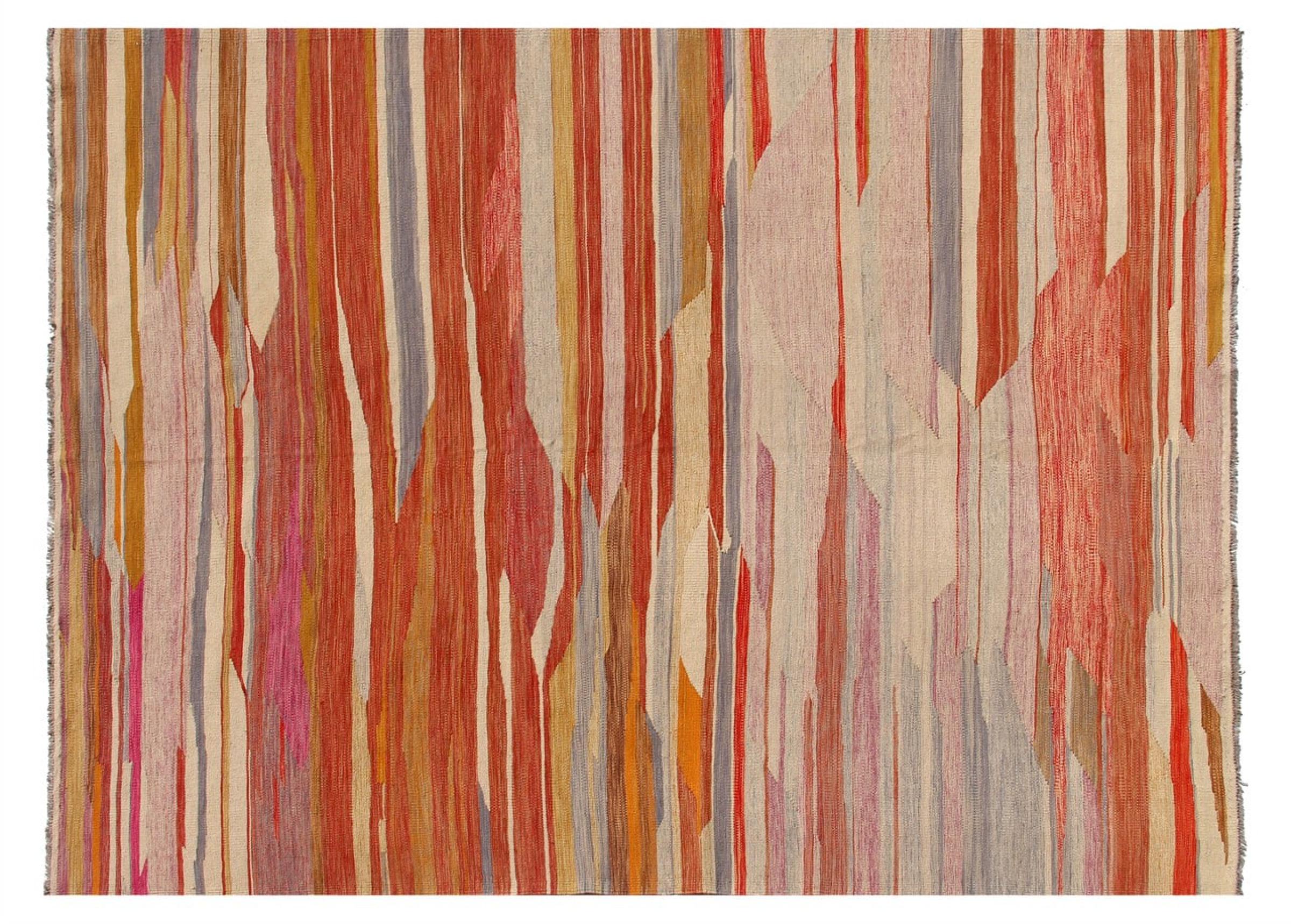 同時に、アフガンエディションケリムには現代的に解釈されたカラーバリエーションも含まれています。これには、ベージュ、グレー、オリーブなどの調和の取れた自然色や、ターコイズ、グリーン、ピンク、または多色構成の生き生きとしたアクセントが含まれています。この多様性により、アフガニスタンのケリムは特に変化に富んでおり、伝統的な目を引く要素としても、現代の住空間におけるスタイリッシュなデザイン要素としても使用できます。