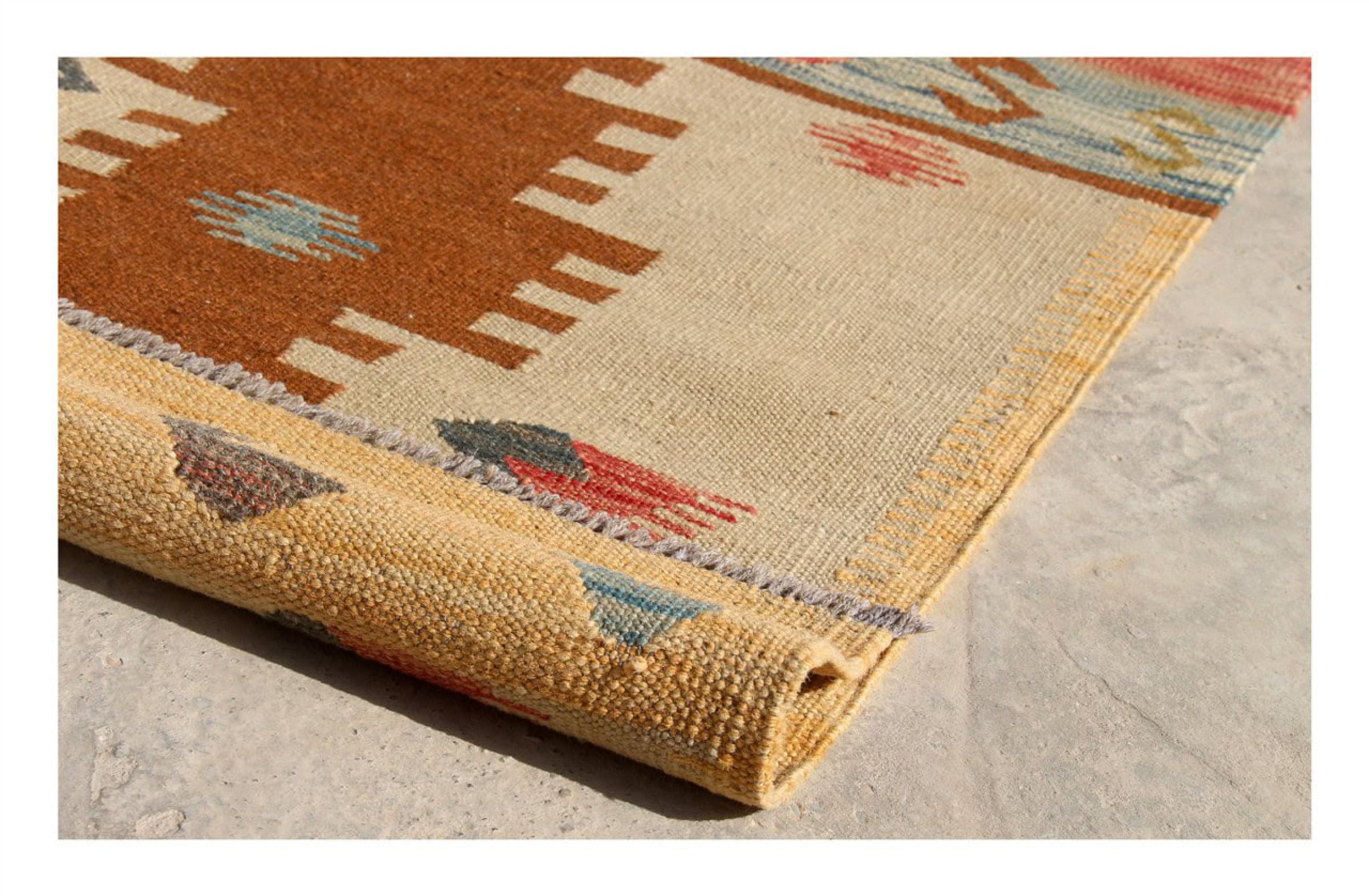 この手織りのキリム アフガンは、多面的な色と典型的なパターンのおかげで美しいです。 アフガニスタンで100%羊毛を使用して手織りされました。 間違いなく機械で作られたカーペットよりも丈夫で耐久性があります。 また、このキリムには独特の個性があります。 二度と見つからない、あなたとあなたの家のためのユニークな作品。