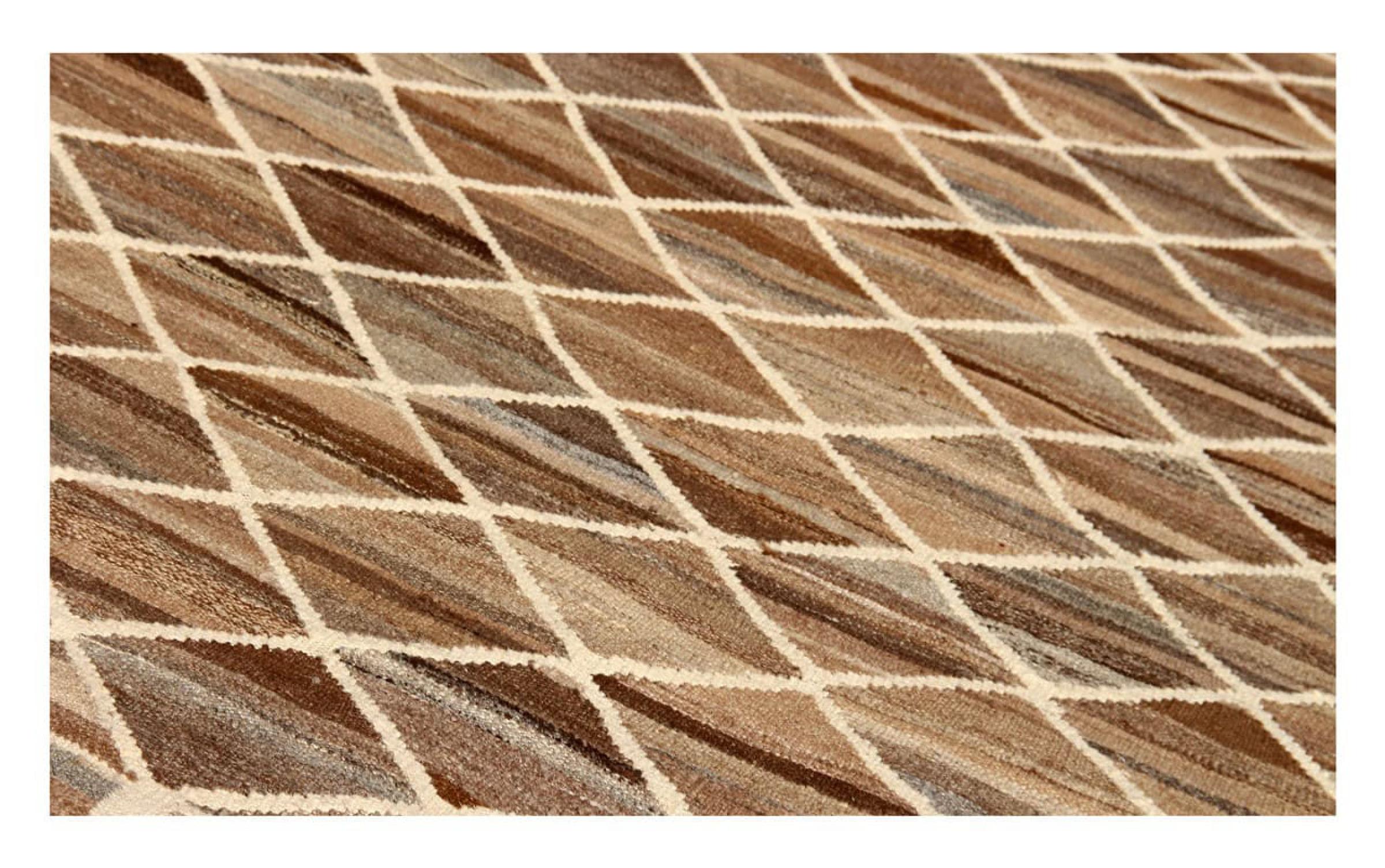 このカーペットは、最高品質の手紡ぎ羊毛を使用しています。特にイラン(旧ペルシャ)、アフガニスタン、パキスタンでは、実際にカーペットの結び目が始まる前に、今でも手で羊毛を紡いでいます。ウールは何世紀にもわたって、自然で非常に丈夫な素材であることを証明してきました。中でも、防汚性、保温性があります。同時に、ウールは他の素材とは比べ物にならないほど柔らかく、自然な光沢があります。