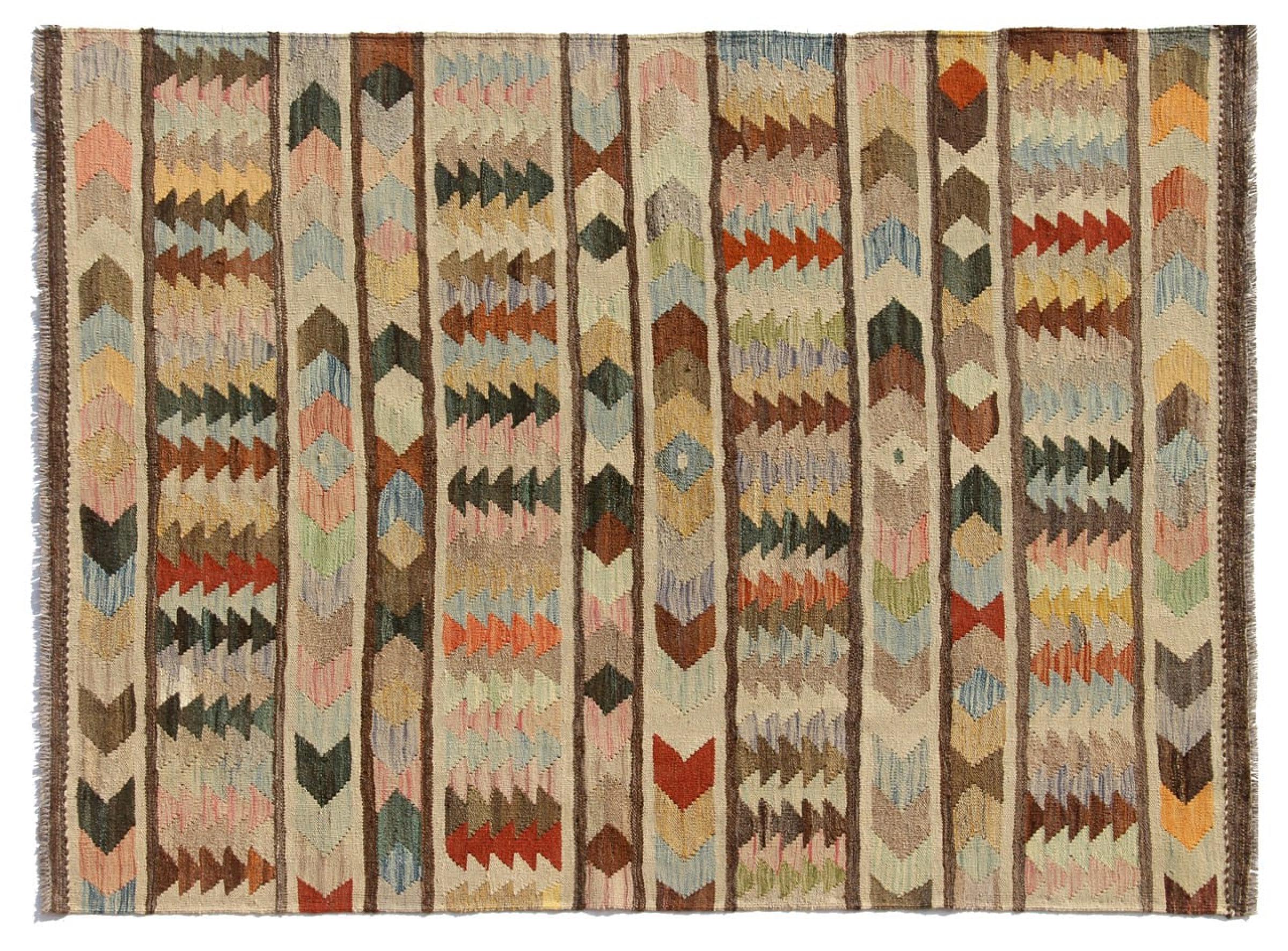 この手織りのキリム アフガンは、多面的な色と典型的なパターンのおかげで美しいです。 アフガニスタンで100%羊毛を使用して手織りされました。 間違いなく機械で作られたカーペットよりも丈夫で耐久性があります。 また、このキリムには独特の個性があります。 二度と見つからない、あなたとあなたの家のためのユニークな作品。