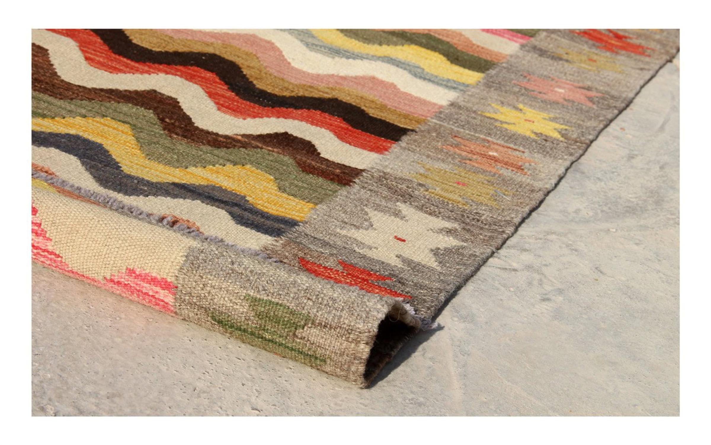 この手織りのキリム アフガンは、多面的な色と典型的なパターンのおかげで美しいです。 アフガニスタンで100%羊毛を使用して手織りされました。 間違いなく機械で作られたカーペットよりも丈夫で耐久性があります。 また、このキリムには独特の個性があります。 二度と見つからない、あなたとあなたの家のためのユニークな作品。
