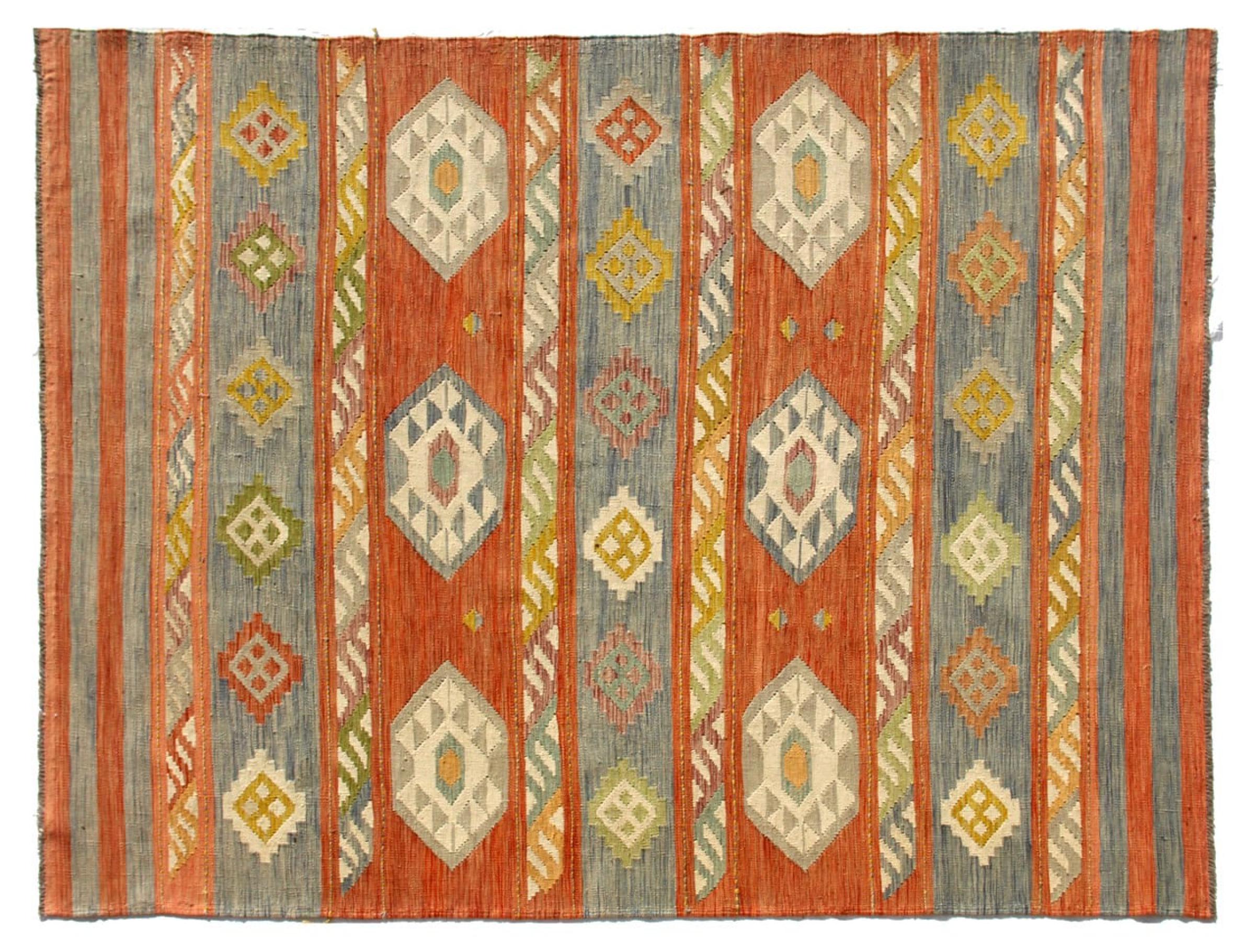 この手織りのキリム アフガンは、多面的な色と典型的なパターンのおかげで美しいです。 アフガニスタンで100%羊毛を使用して手織りされました。 間違いなく機械で作られたカーペットよりも丈夫で耐久性があります。 また、このキリムには独特の個性があります。 二度と見つからない、あなたとあなたの家のためのユニークな作品。
