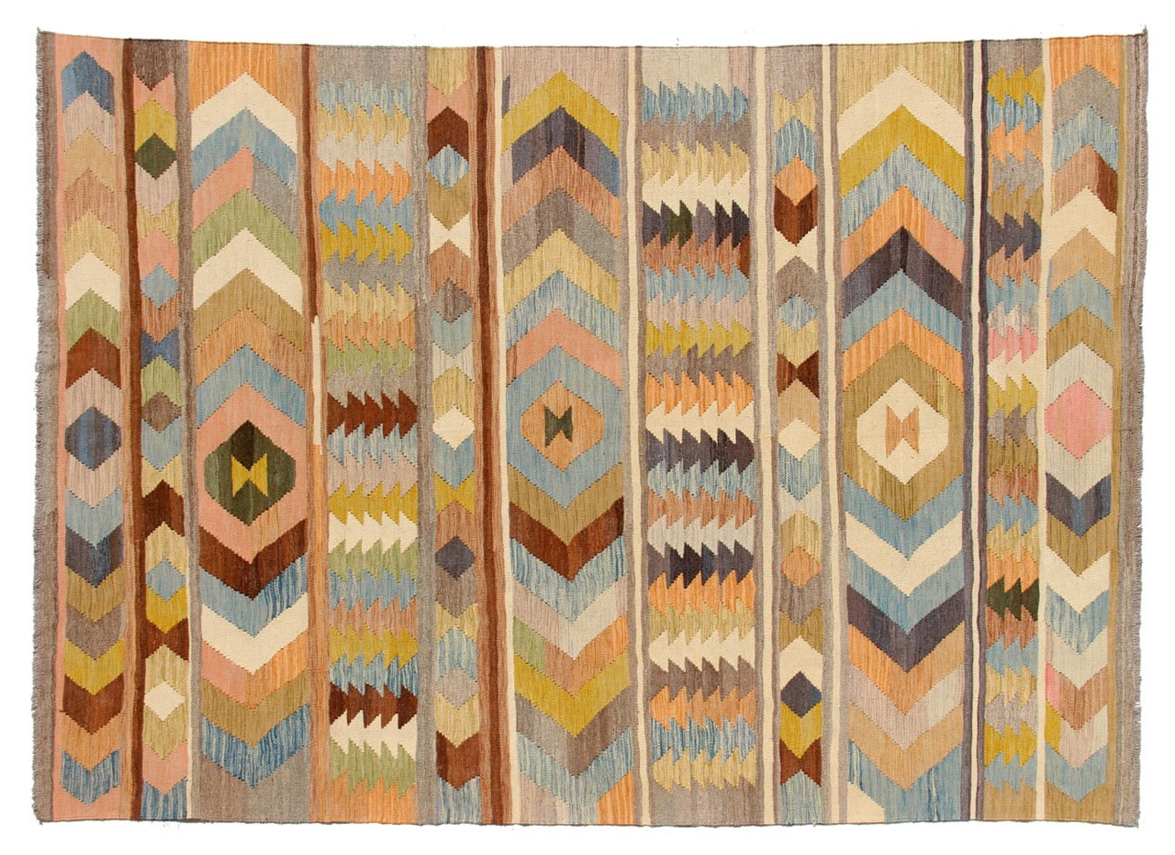 この手織りのキリム アフガンは、多面的な色と典型的なパターンのおかげで美しいです。 アフガニスタンで100%羊毛を使用して手織りされました。 間違いなく機械で作られたカーペットよりも丈夫で耐久性があります。 また、このキリムには独特の個性があります。 二度と見つからない、あなたとあなたの家のためのユニークな作品。