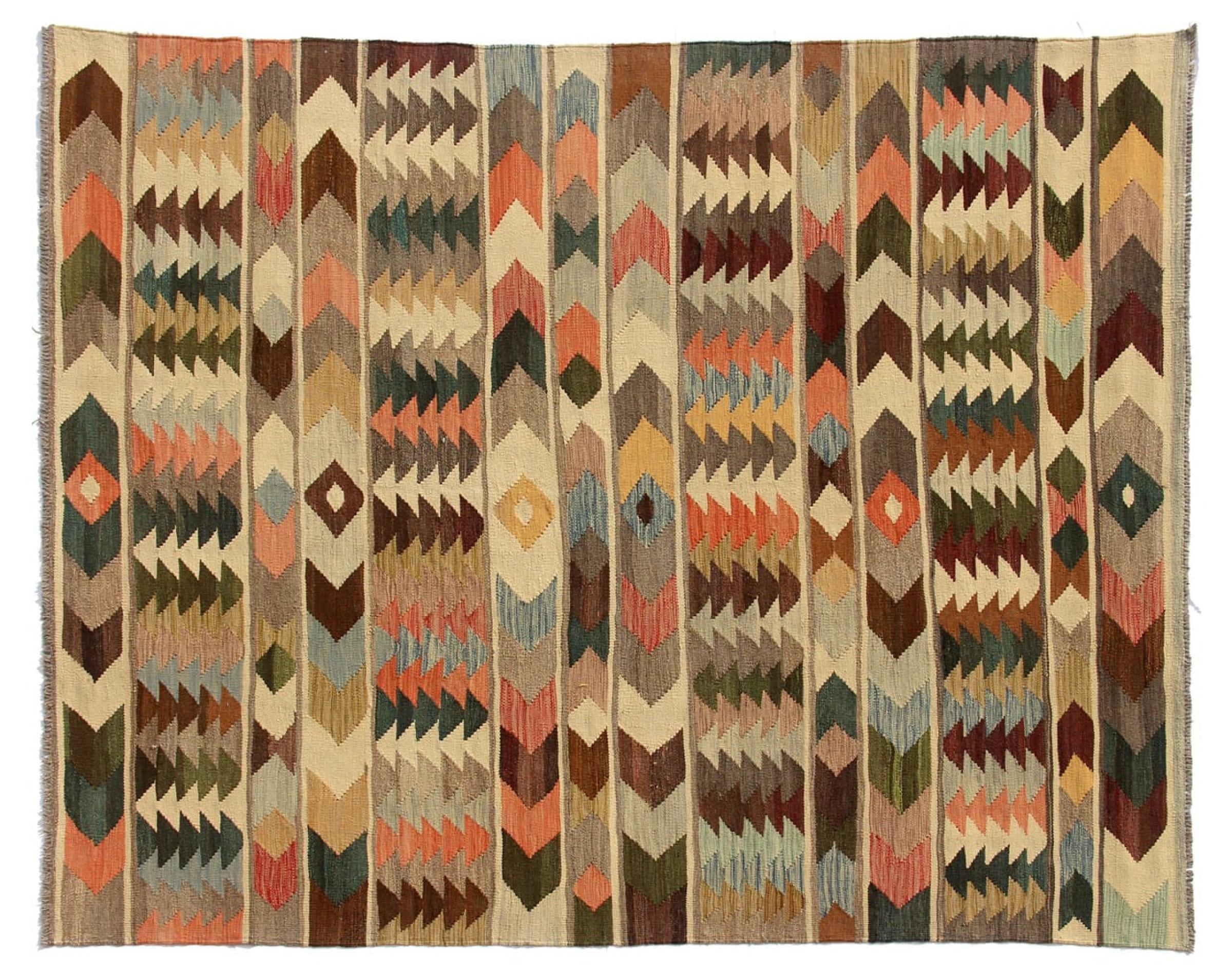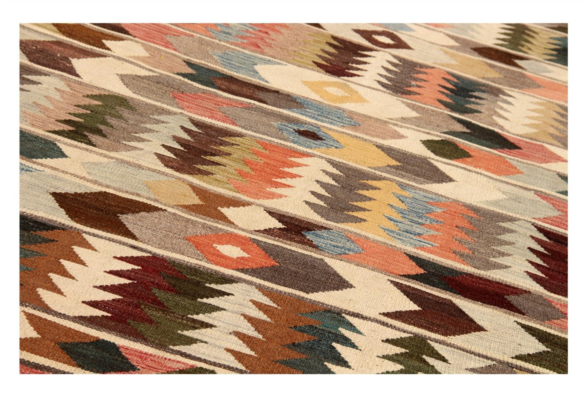 この手織りのキリム アフガンは、多面的な色と典型的なパターンのおかげで美しいです。 アフガニスタンで100%羊毛を使用して手織りされました。 間違いなく機械で作られたカーペットよりも丈夫で耐久性があります。 また、このキリムには独特の個性があります。 二度と見つからない、あなたとあなたの家のためのユニークな作品。