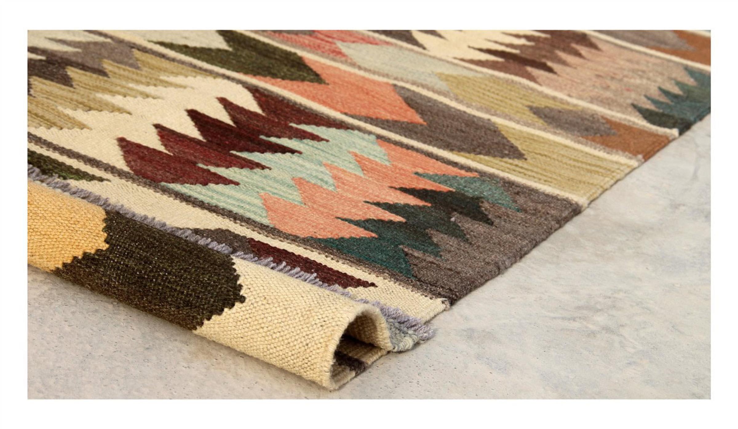 これらのキリムカーペットは、手編みのカーペットとは決定的な違いがあります。手織りのカーペットです。 彼らは高品質のウールの山を持っていませんし、結び目のあるウールカーペットよりも平坦で荒いことがよくあります。 それらの設計はそれほど複雑ではないため、通常ははるかに安価です。 もう1つの利点は、キリムカーペットがはるかに軽く、前面と背面からレイアウトできることです。 手織りのキリムは、元はペルシャ産で、現在はアフガニスタンでも多く製造されています。 彼らはそれらの織り技術に起因するかなりシンプルで簡単なパターンを持っています。