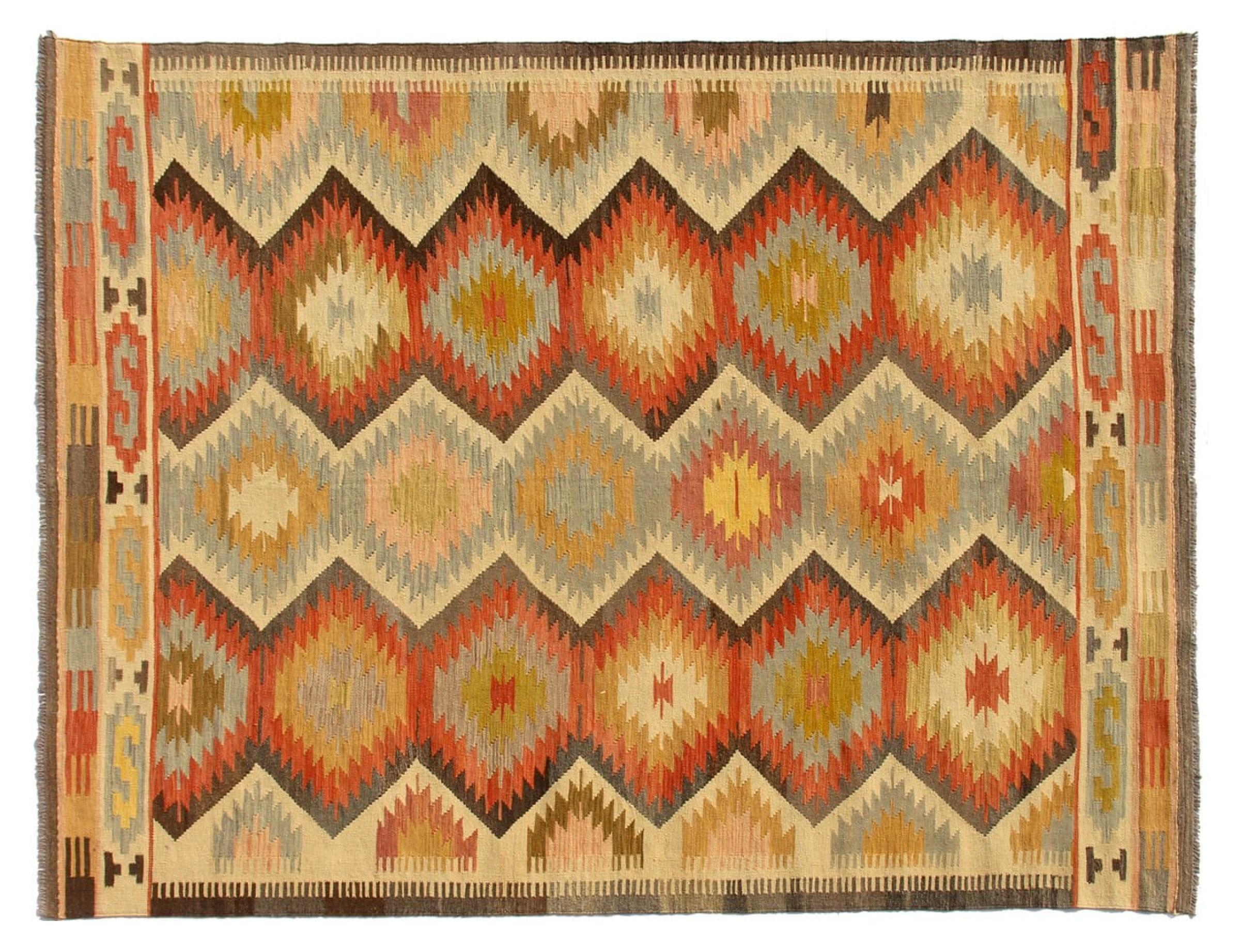 この手織りのキリム アフガンは、多面的な色と典型的なパターンのおかげで美しいです。 アフガニスタンで100%羊毛を使用して手織りされました。 間違いなく機械で作られたカーペットよりも丈夫で耐久性があります。 また、このキリムには独特の個性があります。 二度と見つからない、あなたとあなたの家のためのユニークな作品。