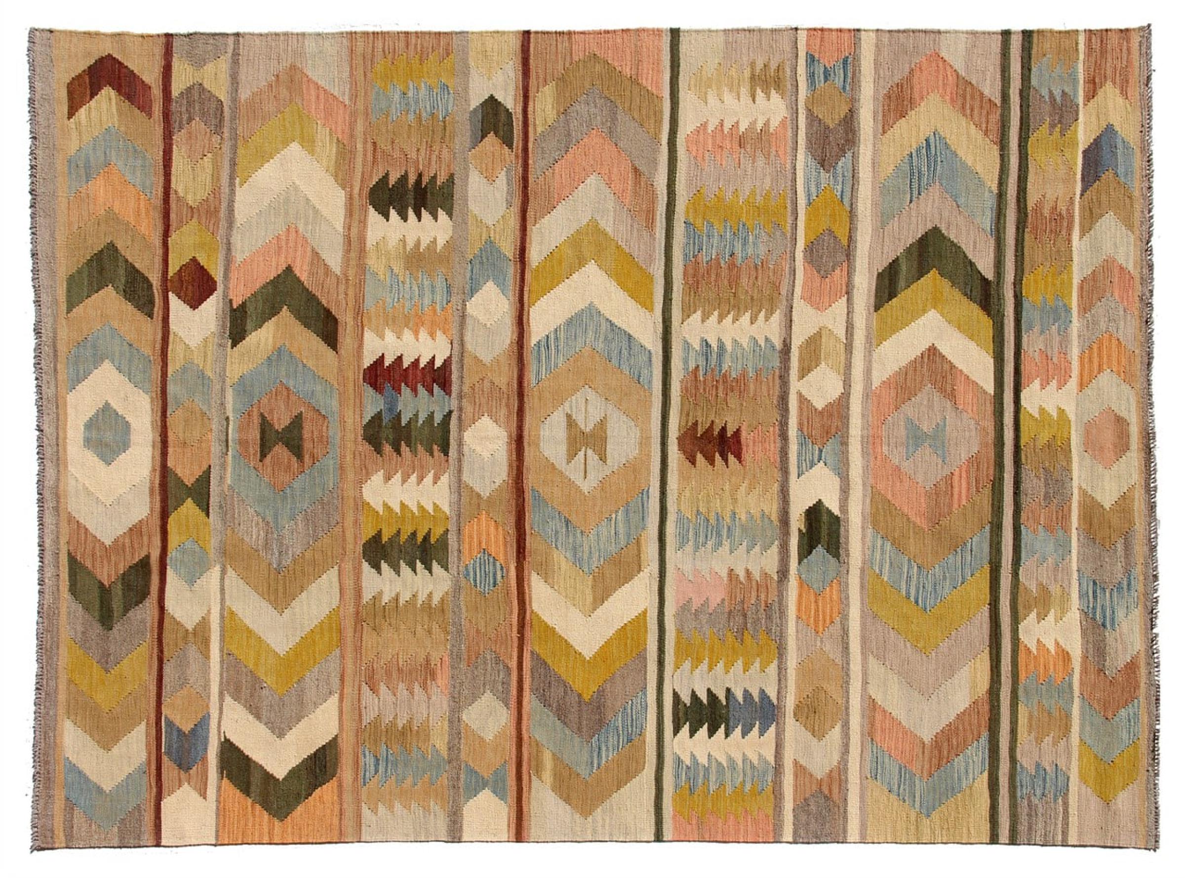 この手織りのキリム アフガンは、多面的な色と典型的なパターンのおかげで美しいです。 アフガニスタンで100%羊毛を使用して手織りされました。 間違いなく機械で作られたカーペットよりも丈夫で耐久性があります。 また、このキリムには独特の個性があります。 二度と見つからない、あなたとあなたの家のためのユニークな作品。