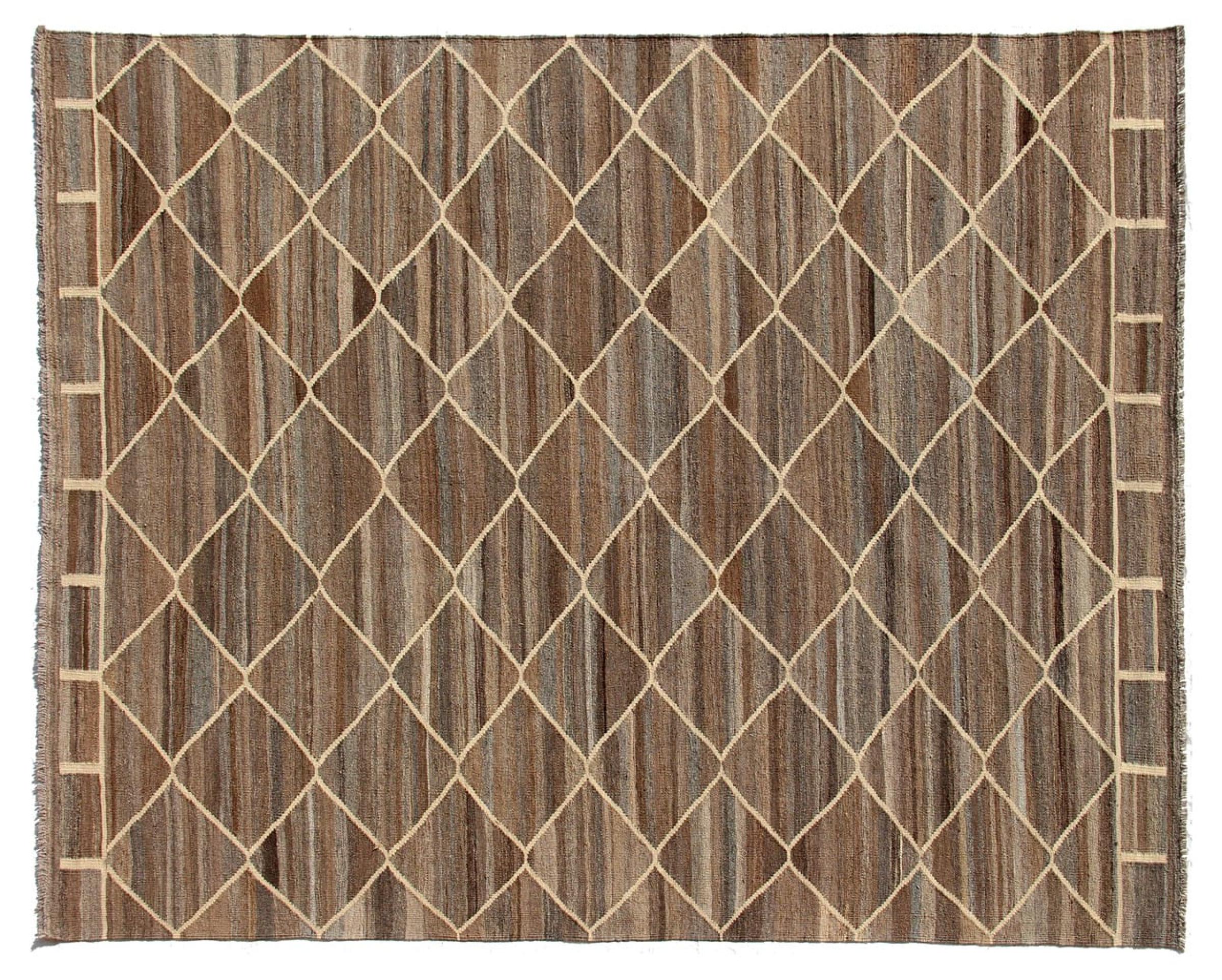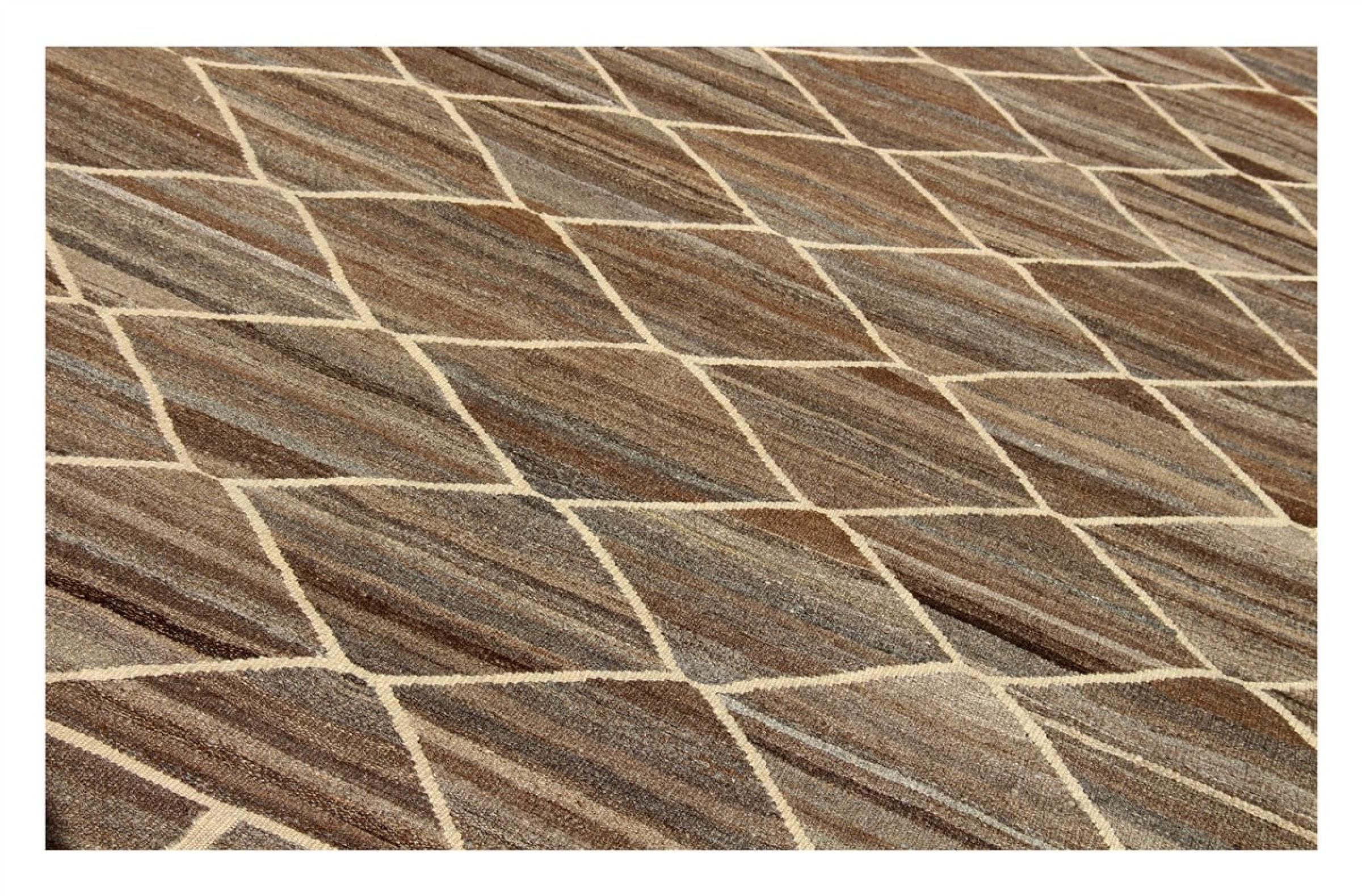 この絨毯は、平織りとして織機で手作業で作られたものです。フラットウィーブとは、パイルのないカーペットを指す言葉です。その名の通り、この絨毯は織られていて、結び目はありません。これにより、表面が構造化されたフラットカーペットが得られる。平織りは、結び目のあるカーペットよりも柔らかくなく、通常は薄くなります。同時に、彼らは製造するためにはるかに複雑ではなく、通常は両側(表と裏)からレイアウトすることができます。彼らのパターンは通常、生地によって決定される幾何学的なものです。