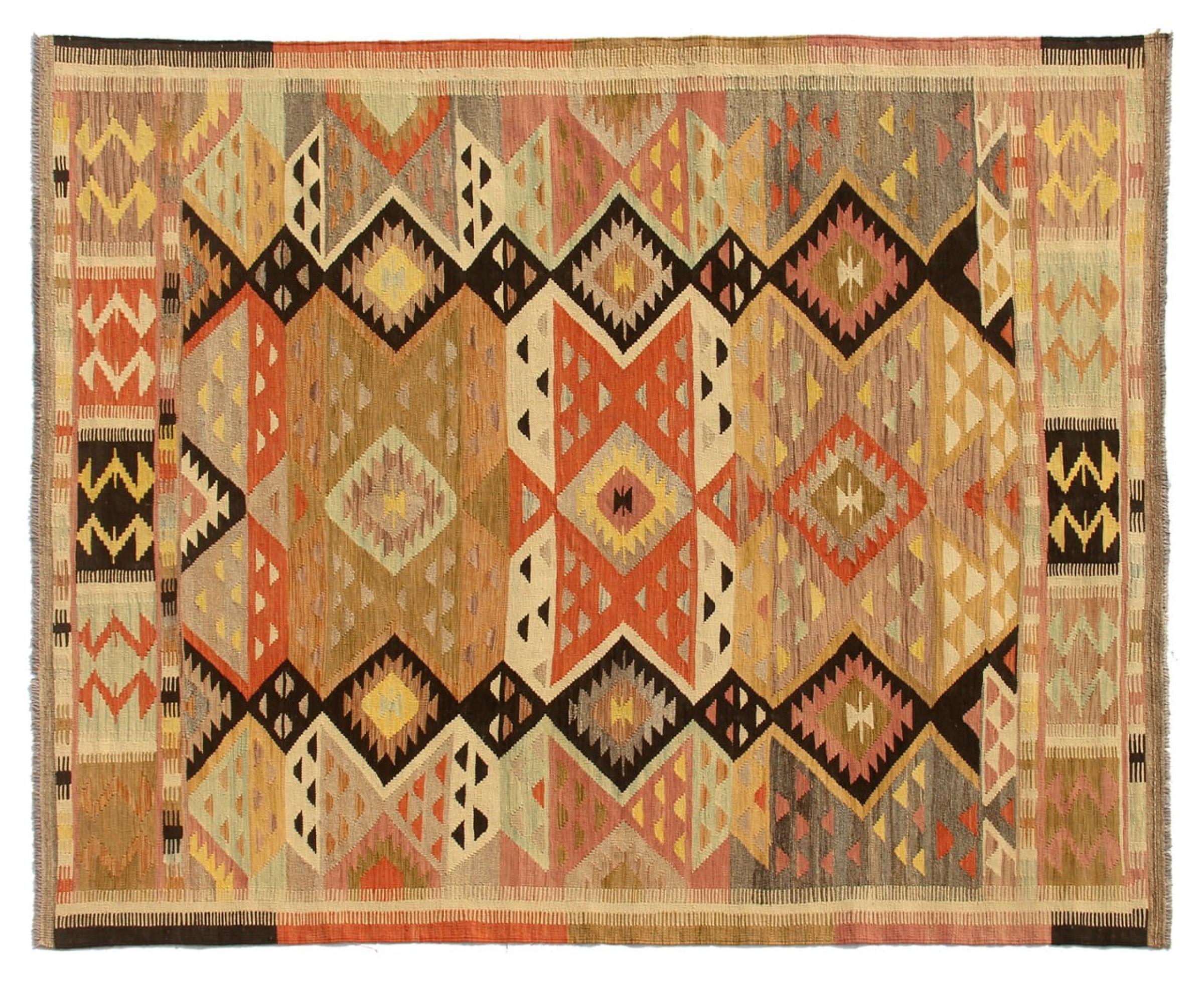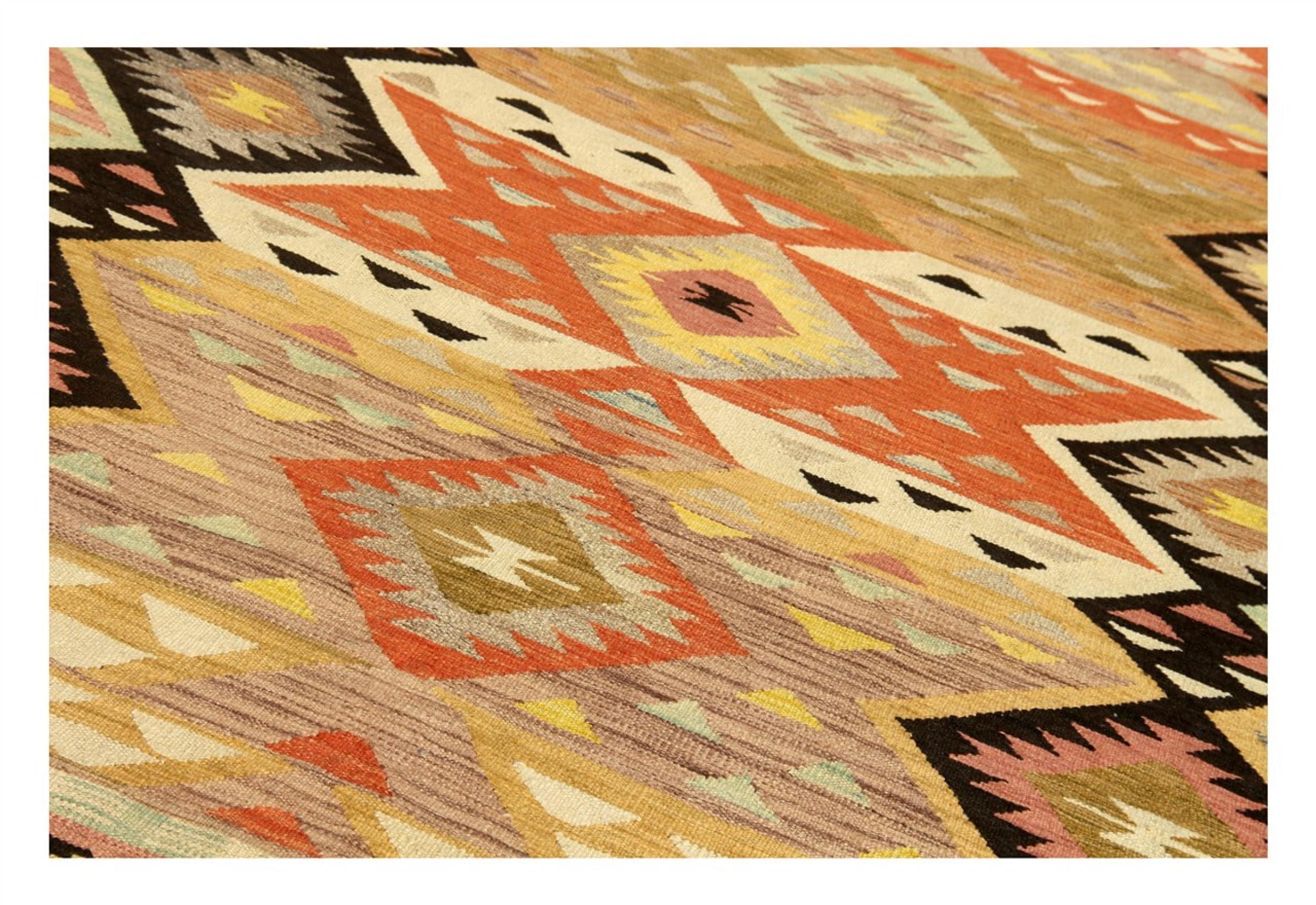この手織りのキリム アフガンは、多面的な色と典型的なパターンのおかげで美しいです。 アフガニスタンで100%羊毛を使用して手織りされました。 間違いなく機械で作られたカーペットよりも丈夫で耐久性があります。 また、このキリムには独特の個性があります。 二度と見つからない、あなたとあなたの家のためのユニークな作品。