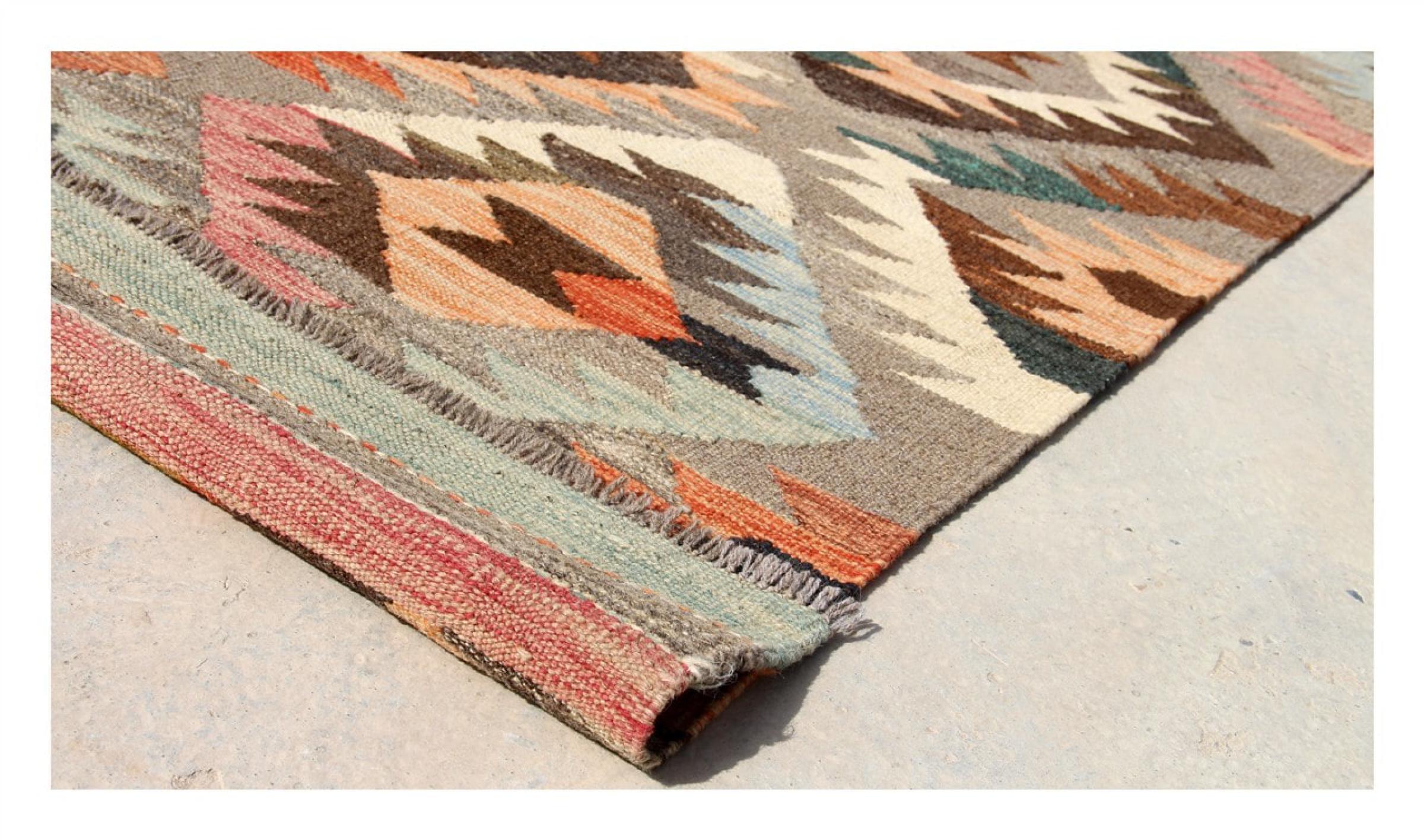 この手織りのキリム アフガンは、多面的な色と典型的なパターンのおかげで美しいです。 アフガニスタンで100%羊毛を使用して手織りされました。 間違いなく機械で作られたカーペットよりも丈夫で耐久性があります。 また、このキリムには独特の個性があります。 二度と見つからない、あなたとあなたの家のためのユニークな作品。
