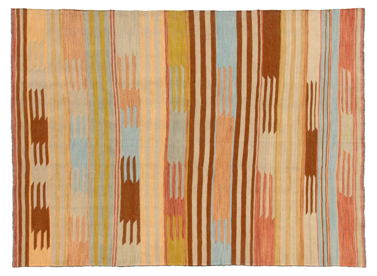 この手織りのキリム アフガンは、多面的な色と典型的なパターンのおかげで美しいです。 アフガニスタンで100%羊毛を使用して手織りされました。 間違いなく機械で作られたカーペットよりも丈夫で耐久性があります。 また、このキリムには独特の個性があります。 二度と見つからない、あなたとあなたの家のためのユニークな作品。