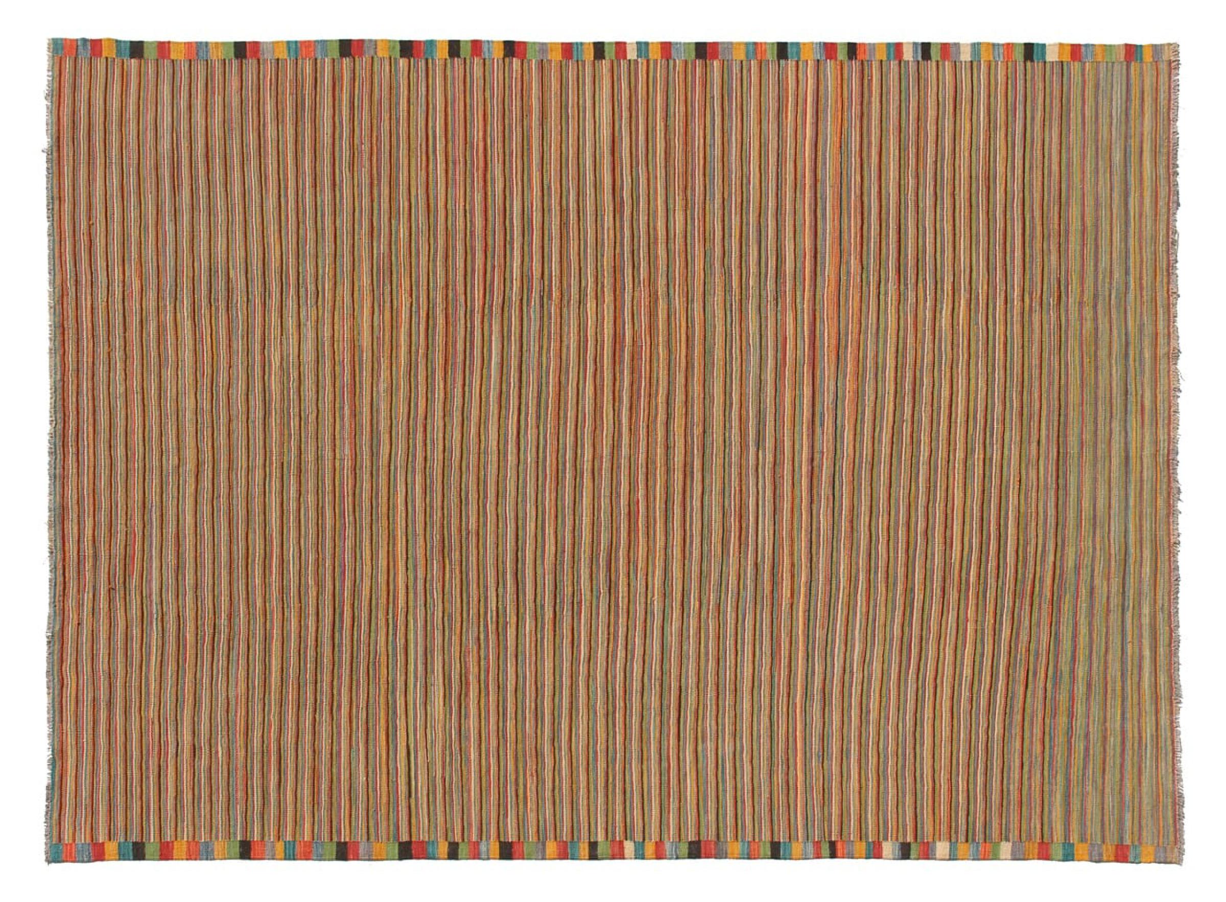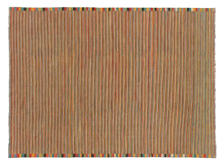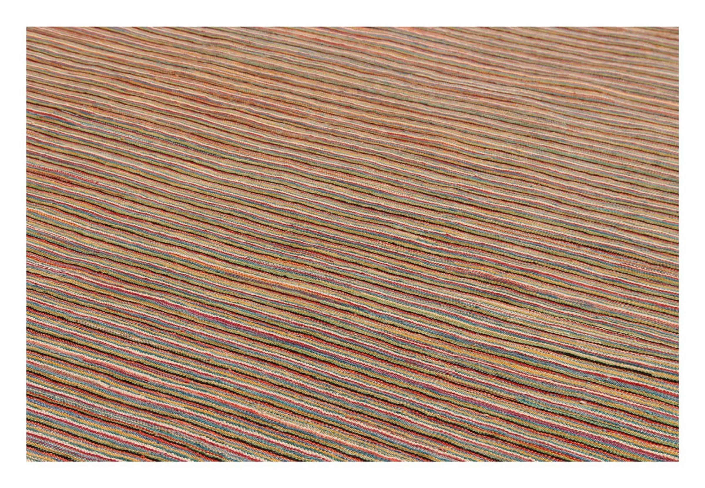 この絨毯は、平織りとして織機で手作業で作られたものです。フラットウィーブとは、パイルのないカーペットを指す言葉です。その名の通り、この絨毯は織られていて、結び目はありません。これにより、表面が構造化されたフラットカーペットが得られる。平織りは、結び目のあるカーペットよりも柔らかくなく、通常は薄くなります。同時に、彼らは製造するためにはるかに複雑ではなく、通常は両側(表と裏)からレイアウトすることができます。彼らのパターンは通常、生地によって決定される幾何学的なものです。
