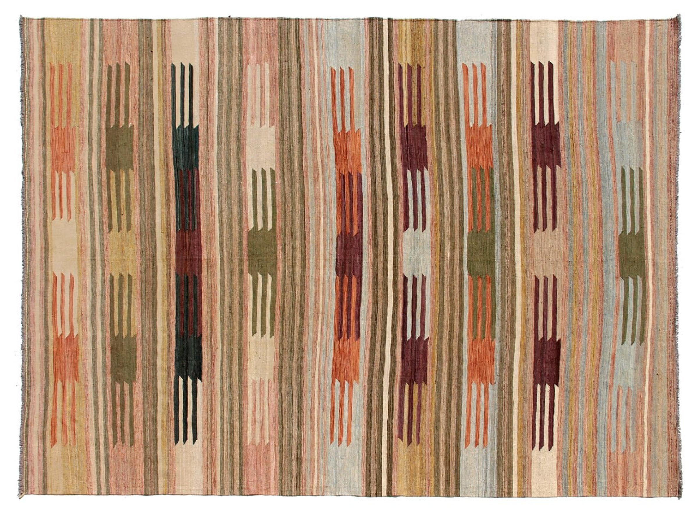 この手織りのキリム アフガンは、多面的な色と典型的なパターンのおかげで美しいです。 アフガニスタンで100%羊毛を使用して手織りされました。 間違いなく機械で作られたカーペットよりも丈夫で耐久性があります。 また、このキリムには独特の個性があります。 二度と見つからない、あなたとあなたの家のためのユニークな作品。