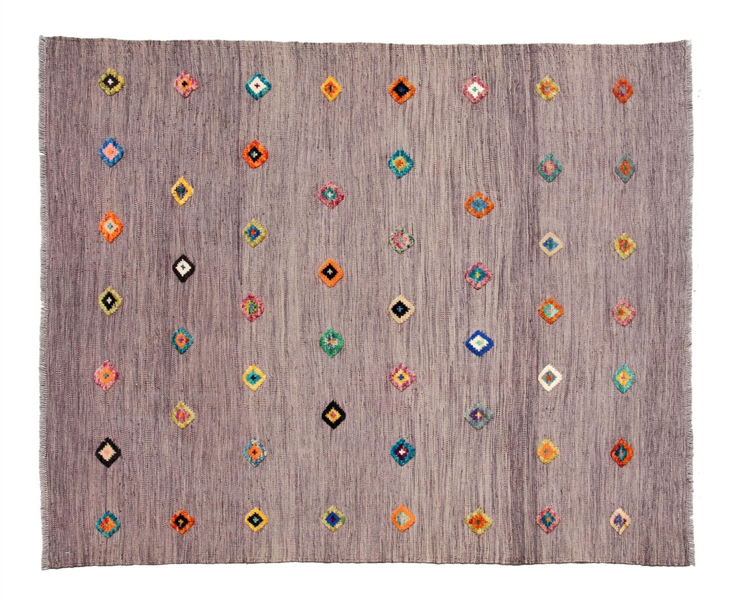 同時に、アフガンエディションケリムには現代的に解釈されたカラーバリエーションも含まれています。これには、ベージュ、グレー、オリーブなどの調和の取れた自然色や、ターコイズ、グリーン、ピンク、または多色構成の生き生きとしたアクセントが含まれています。この多様性により、アフガニスタンのケリムは特に変化に富んでおり、伝統的な目を引く要素としても、現代の住空間におけるスタイリッシュなデザイン要素としても使用できます。