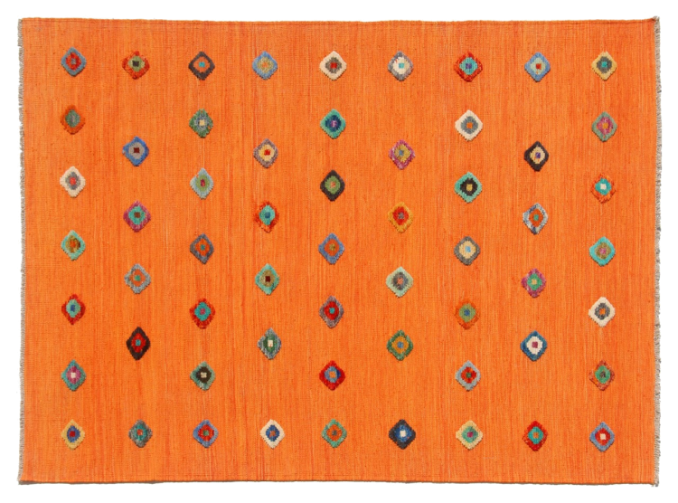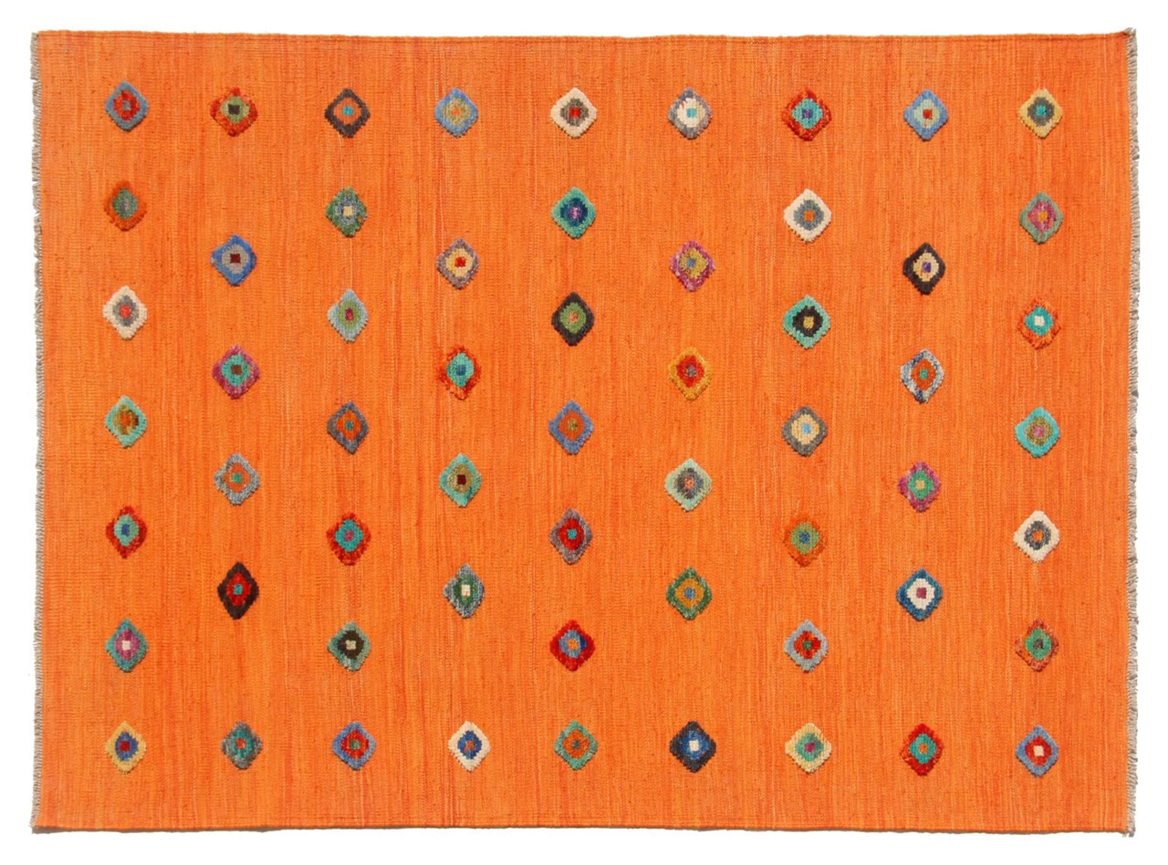 カーペットID 314627004401849 サイズ 196x150 cm 厚さ: およそ 5 mm 生産: 手織り 織り目: 手紡ぎウール 整径: ウール、羊毛 原産地: アフガニスタン 年代: 新品 重さ: およそ 6 kg としても知られている Kilim, Qilim, Chilim, Afgan, Afghán 在庫: ユニーク品 - 在庫 1 点のみ