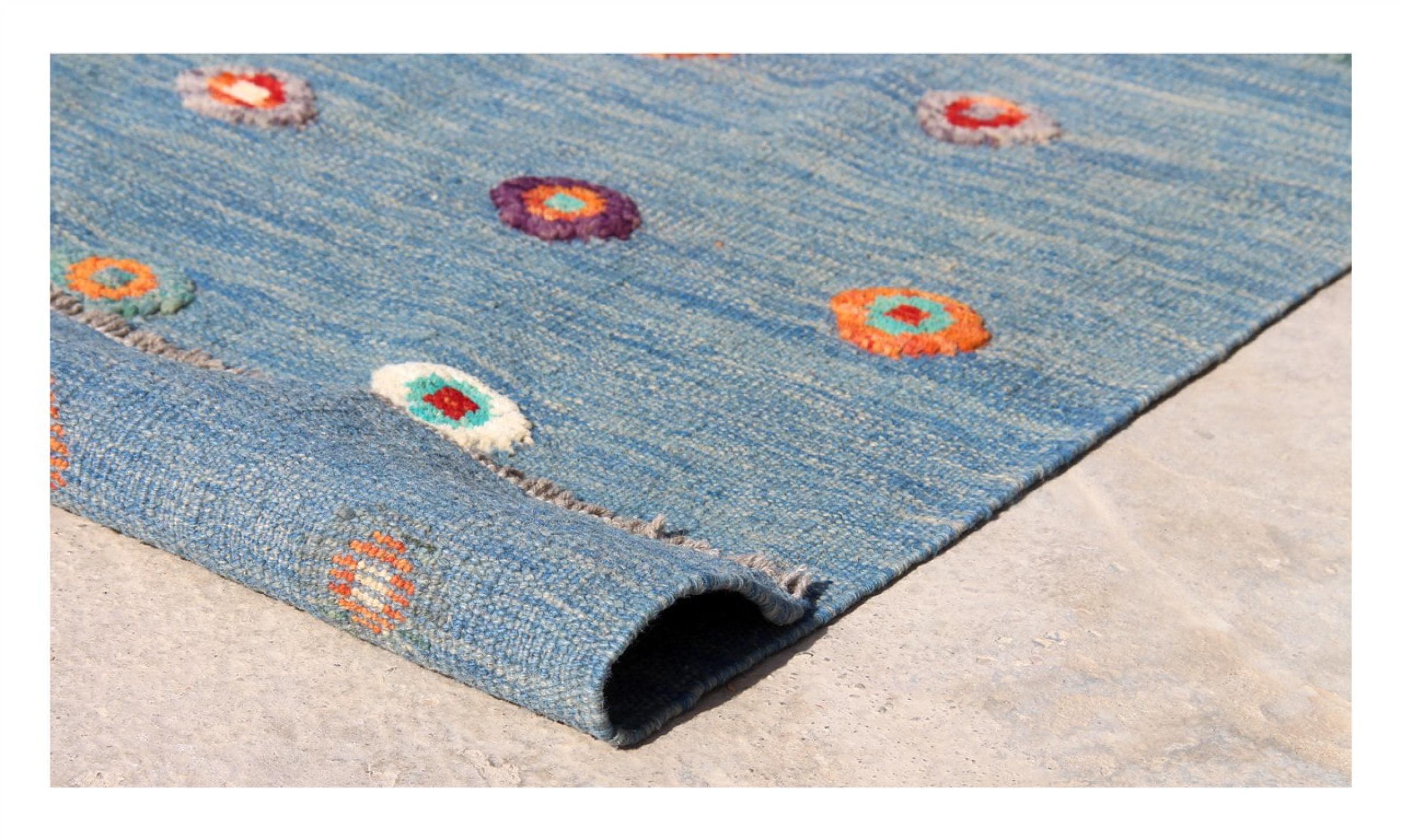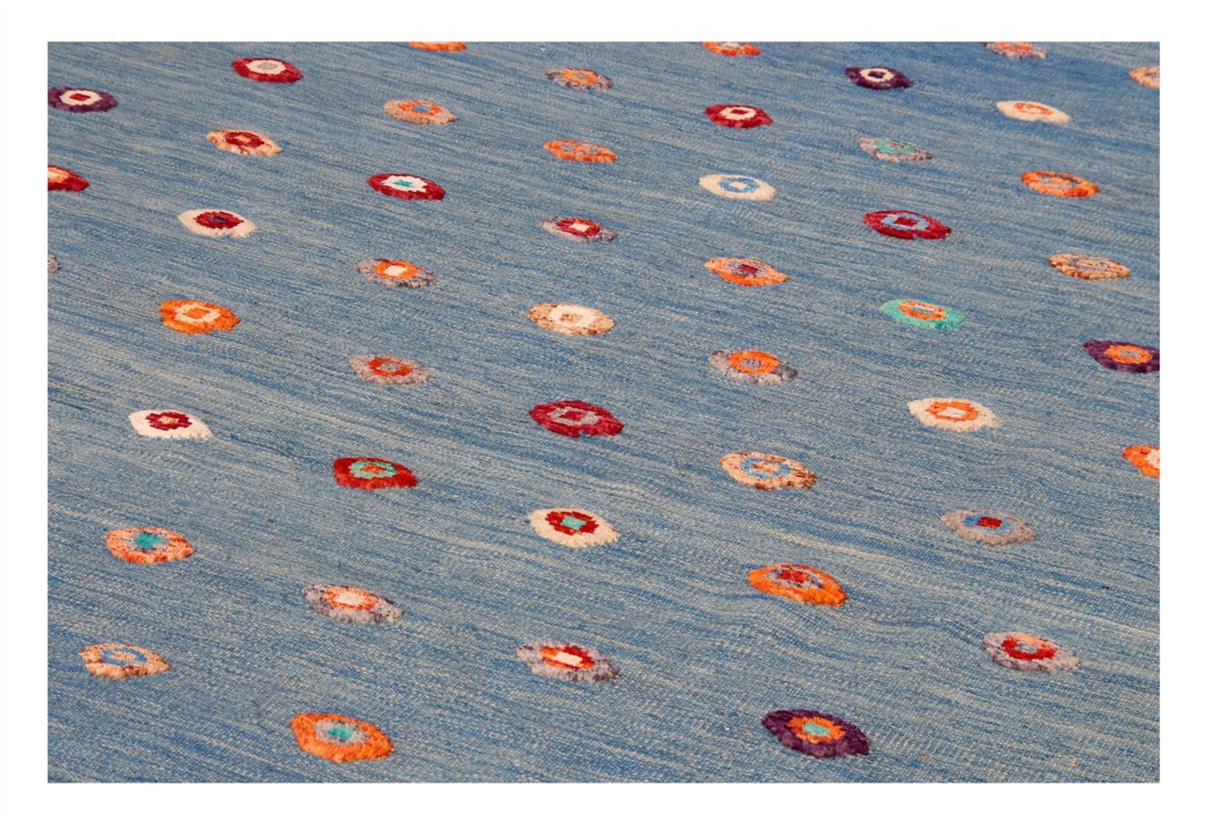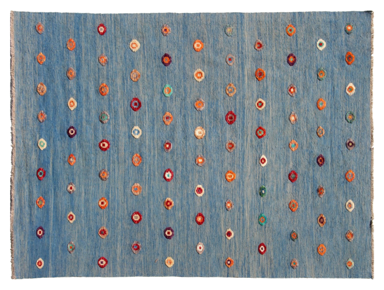 この絨毯は、平織りとして織機で手作業で作られたものです。フラットウィーブとは、パイルのないカーペットを指す言葉です。その名の通り、この絨毯は織られていて、結び目はありません。これにより、表面が構造化されたフラットカーペットが得られる。平織りは、結び目のあるカーペットよりも柔らかくなく、通常は薄くなります。同時に、彼らは製造するためにはるかに複雑ではなく、通常は両側(表と裏)からレイアウトすることができます。彼らのパターンは通常、生地によって決定される幾何学的なものです。