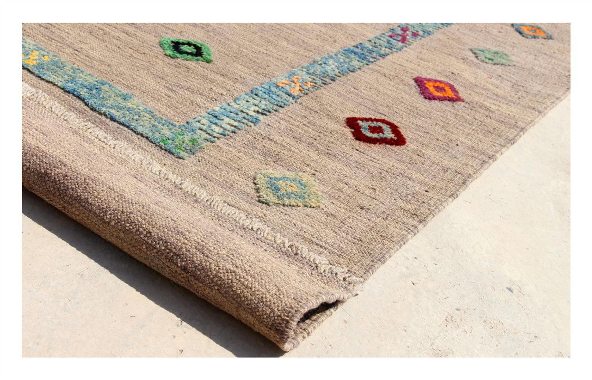 同時に、アフガンエディションケリムには現代的に解釈されたカラーバリエーションも含まれています。これには、ベージュ、グレー、オリーブなどの調和の取れた自然色や、ターコイズ、グリーン、ピンク、または多色構成の生き生きとしたアクセントが含まれています。この多様性により、アフガニスタンのケリムは特に変化に富んでおり、伝統的な目を引く要素としても、現代の住空間におけるスタイリッシュなデザイン要素としても使用できます。