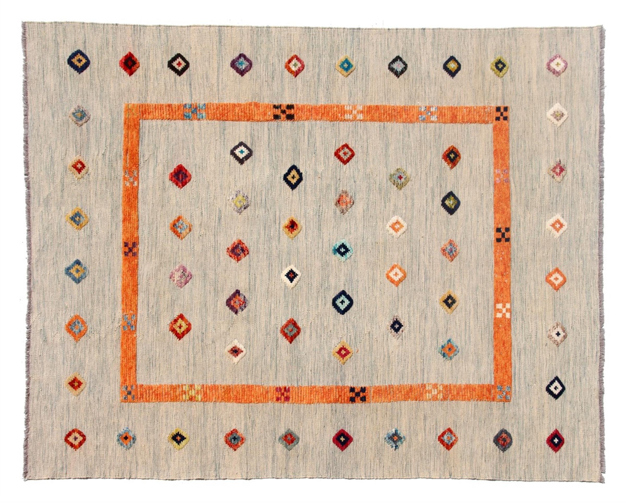 同時に、アフガンエディションケリムには現代的に解釈されたカラーバリエーションも含まれています。これには、ベージュ、グレー、オリーブなどの調和の取れた自然色や、ターコイズ、グリーン、ピンク、または多色構成の生き生きとしたアクセントが含まれています。この多様性により、アフガニスタンのケリムは特に変化に富んでおり、伝統的な目を引く要素としても、現代の住空間におけるスタイリッシュなデザイン要素としても使用できます。