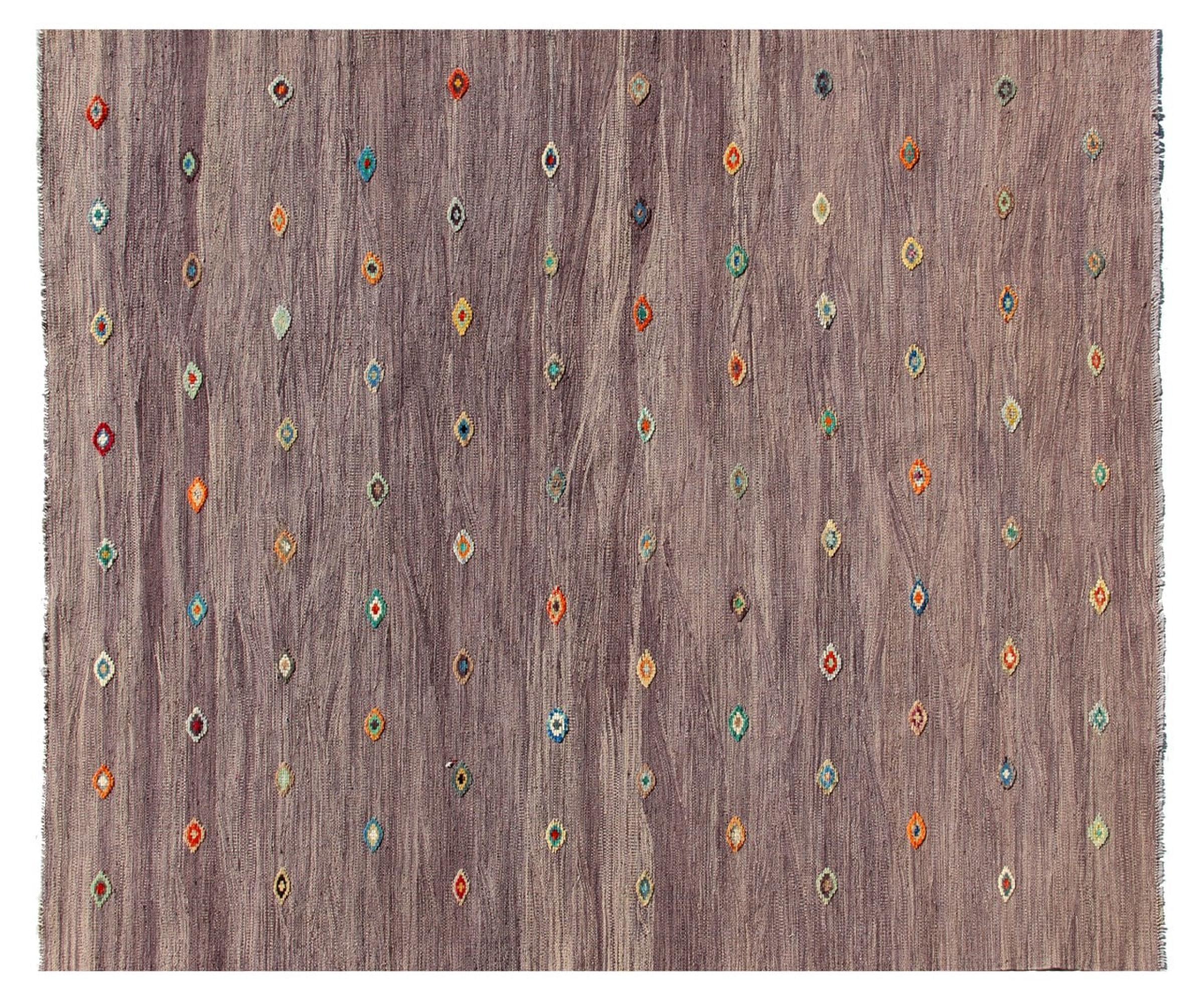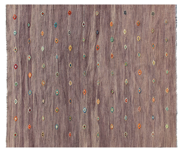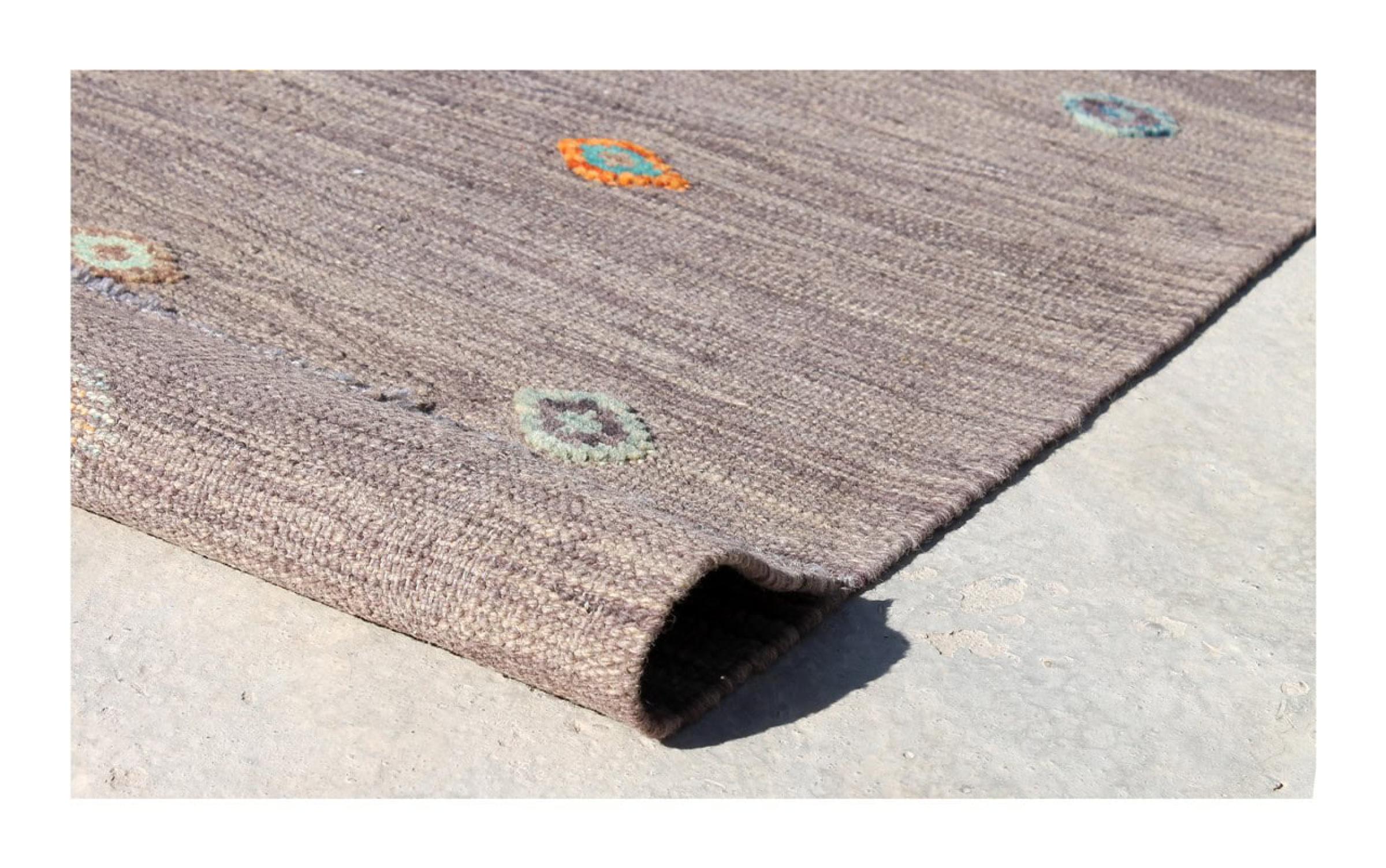 この絨毯は、平織りとして織機で手作業で作られたものです。フラットウィーブとは、パイルのないカーペットを指す言葉です。その名の通り、この絨毯は織られていて、結び目はありません。これにより、表面が構造化されたフラットカーペットが得られる。平織りは、結び目のあるカーペットよりも柔らかくなく、通常は薄くなります。同時に、彼らは製造するためにはるかに複雑ではなく、通常は両側(表と裏)からレイアウトすることができます。彼らのパターンは通常、生地によって決定される幾何学的なものです。
