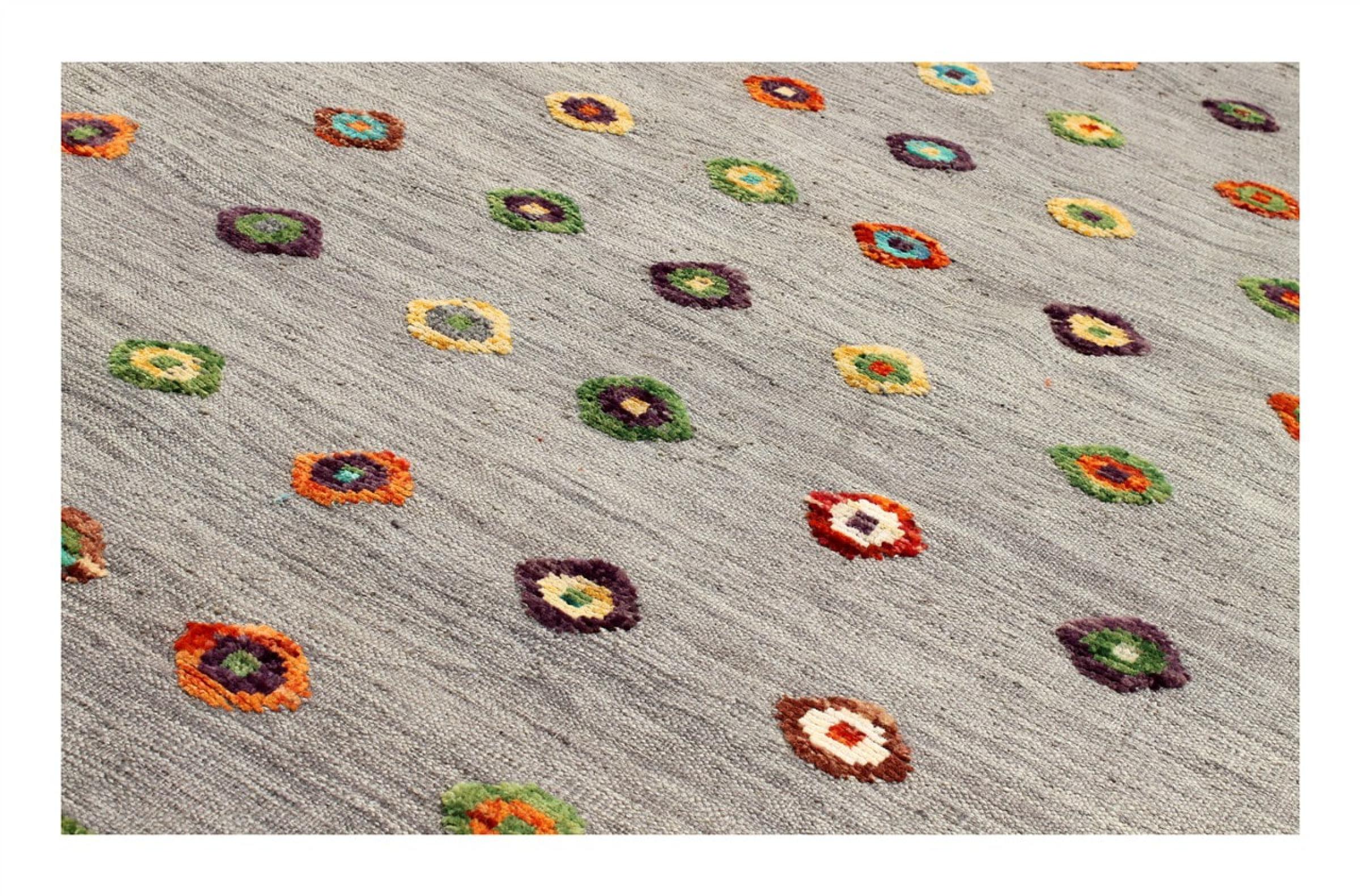 同時に、アフガンエディションケリムには現代的に解釈されたカラーバリエーションも含まれています。これには、ベージュ、グレー、オリーブなどの調和の取れた自然色や、ターコイズ、グリーン、ピンク、または多色構成の生き生きとしたアクセントが含まれています。この多様性により、アフガニスタンのケリムは特に変化に富んでおり、伝統的な目を引く要素としても、現代の住空間におけるスタイリッシュなデザイン要素としても使用できます。