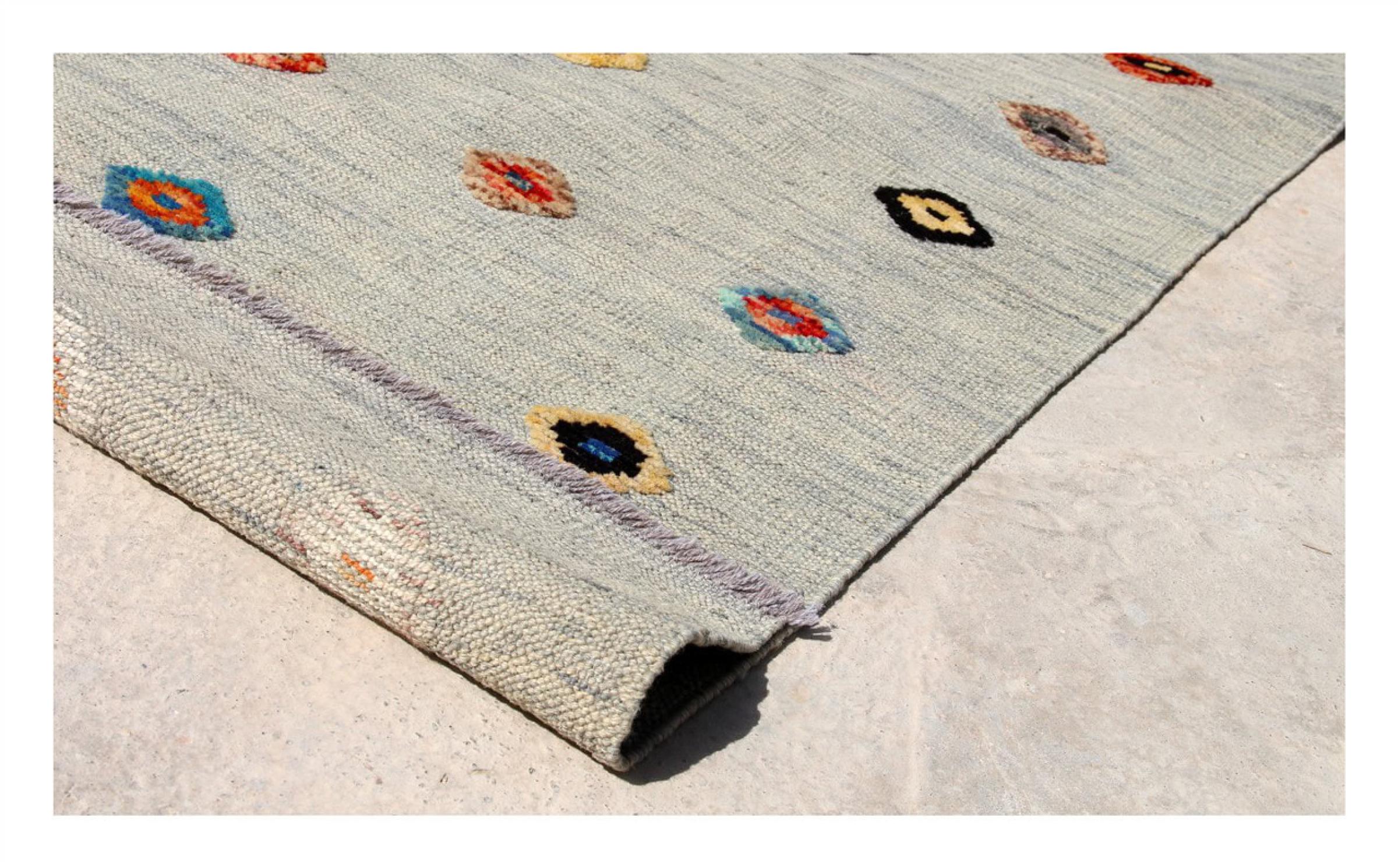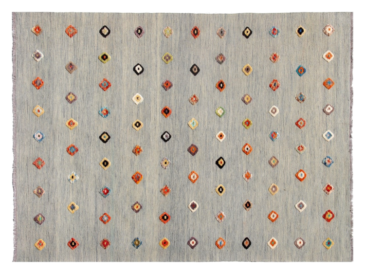 同時に、アフガンエディションケリムには現代的に解釈されたカラーバリエーションも含まれています。これには、ベージュ、グレー、オリーブなどの調和の取れた自然色や、ターコイズ、グリーン、ピンク、または多色構成の生き生きとしたアクセントが含まれています。この多様性により、アフガニスタンのケリムは特に変化に富んでおり、伝統的な目を引く要素としても、現代の住空間におけるスタイリッシュなデザイン要素としても使用できます。
