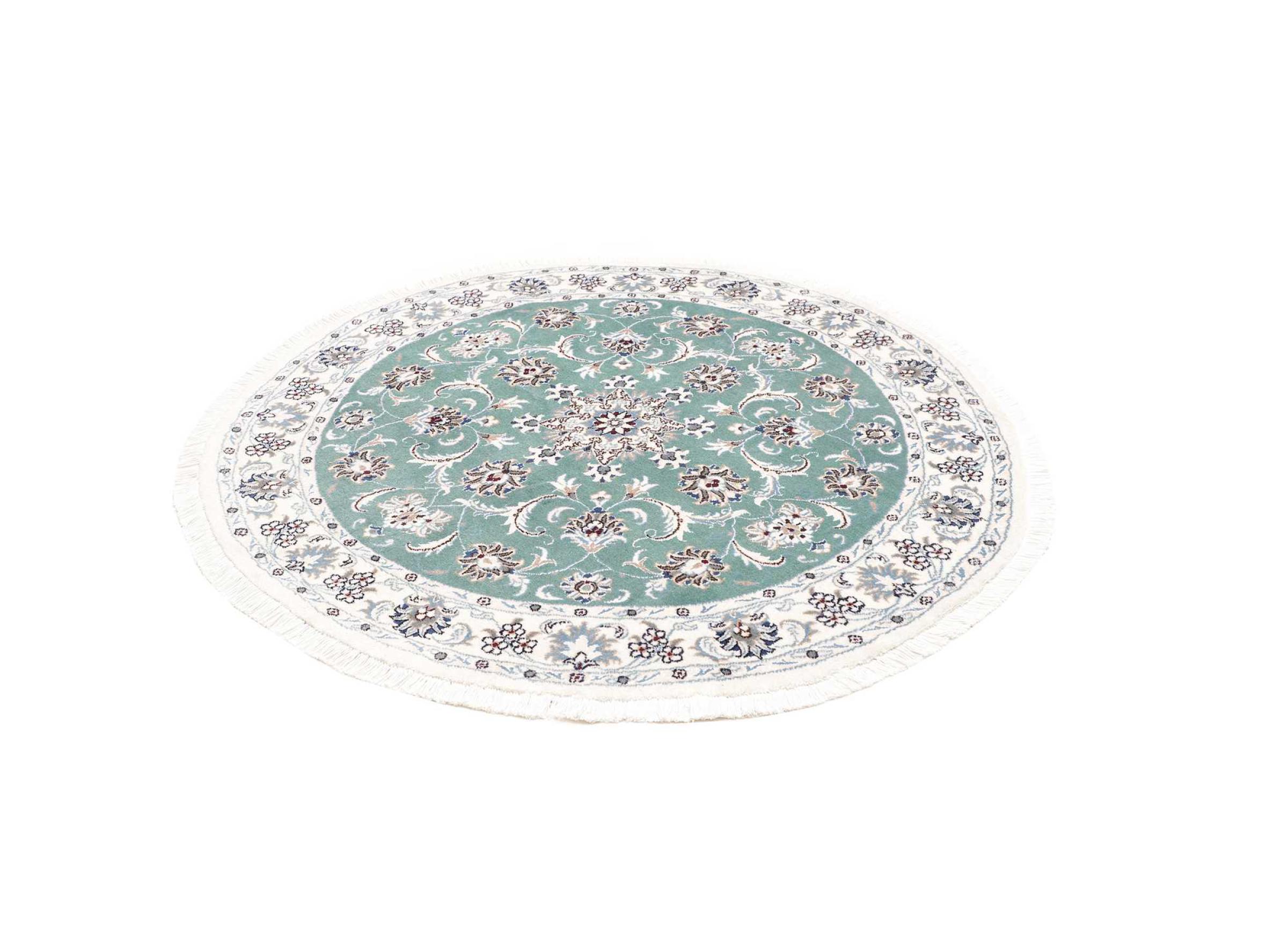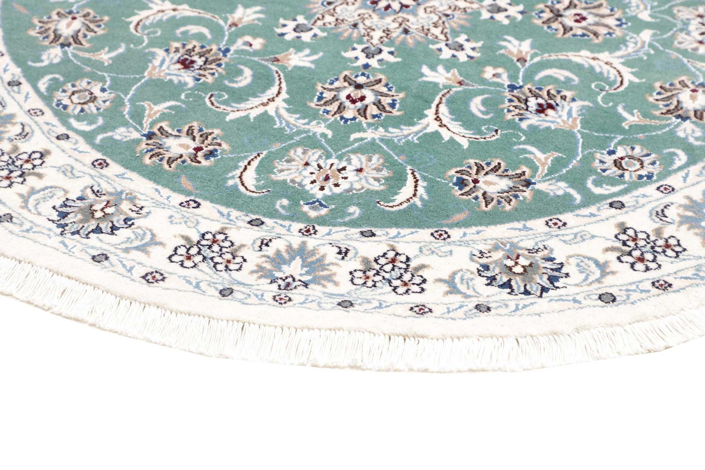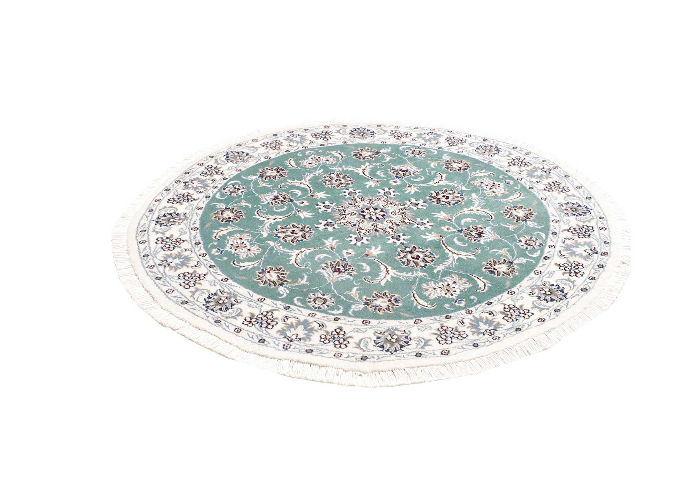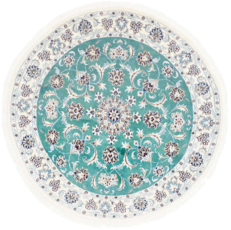 この Nain ラグは 12La と評価されています。 ナインらしい配色で上品かつ高貴に見えます。 このペルシャ絨毯は、ダシュテ・カヴィル砂漠の西端にあるナイン市で高品質のウールと天然シルクを使って手織りされました。 12La では、Nain 9La や 6La ほど細かく詳細な装飾が施されていません。