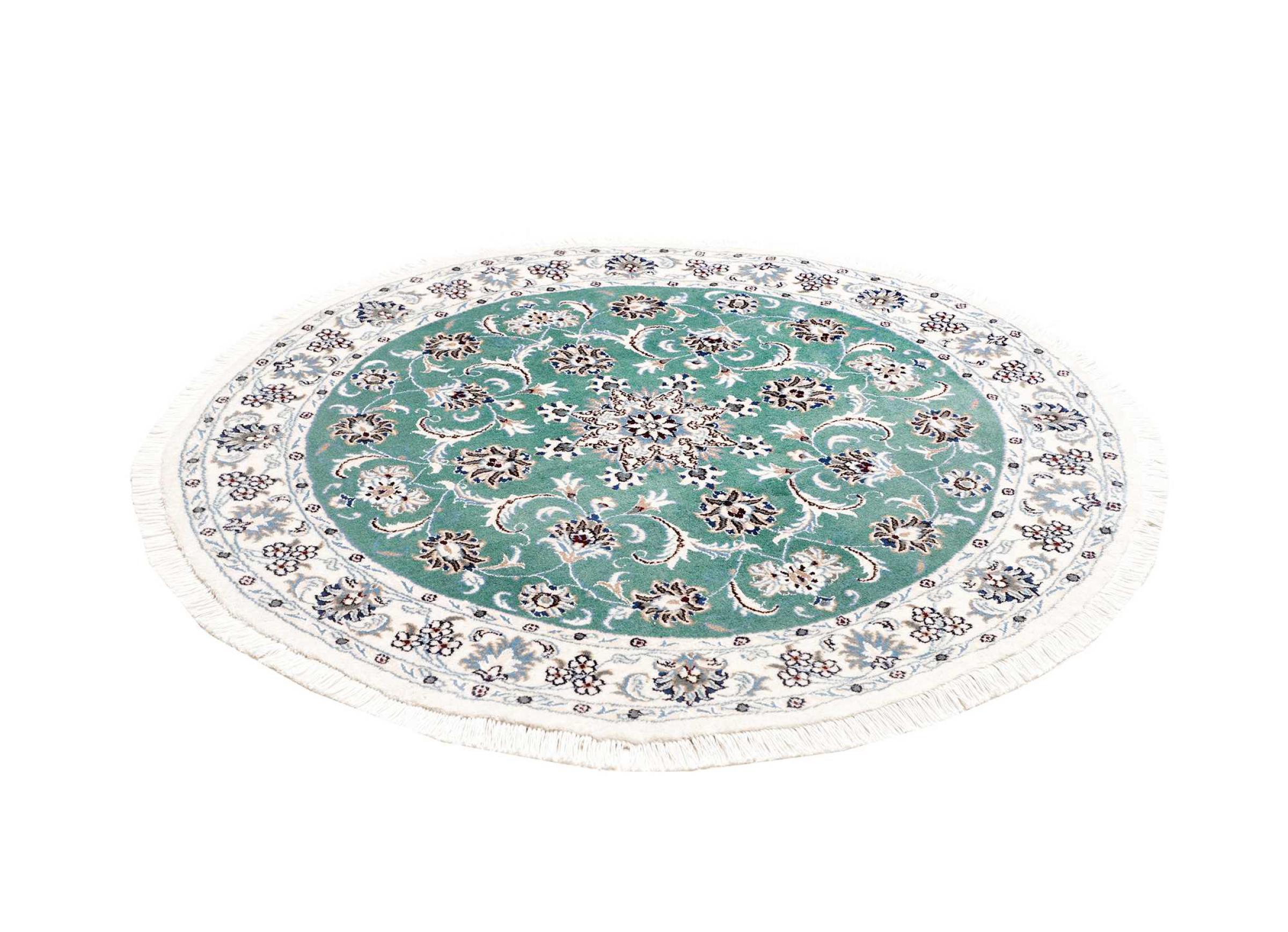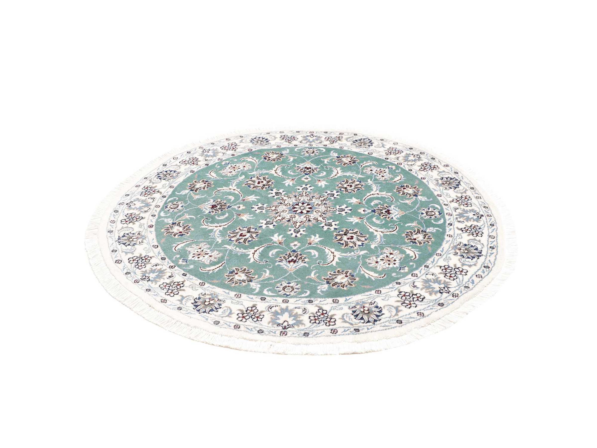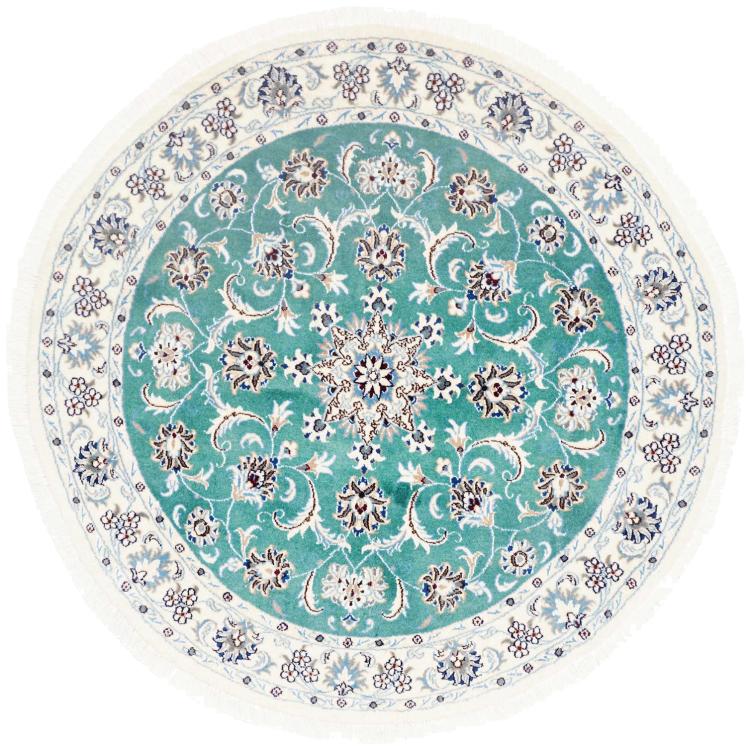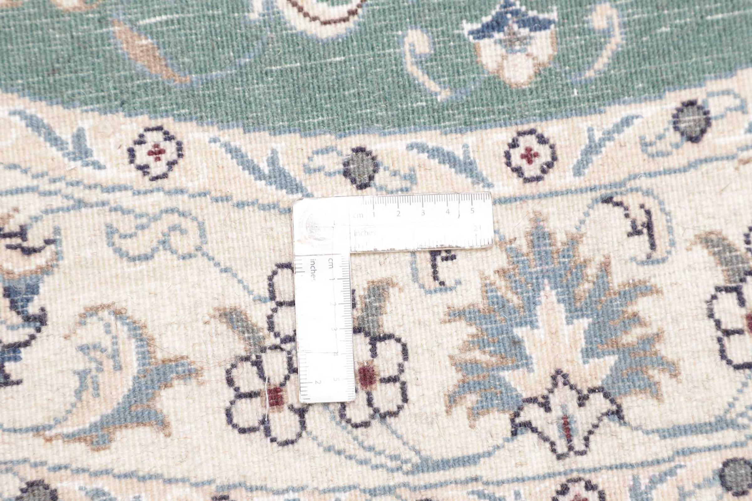 この Nain ラグは 12La と評価されています。 ナインらしい配色で上品かつ高貴に見えます。 このペルシャ絨毯は、ダシュテ・カヴィル砂漠の西端にあるナイン市で高品質のウールと天然シルクを使って手織りされました。 12La では、Nain 9La や 6La ほど細かく詳細な装飾が施されていません。