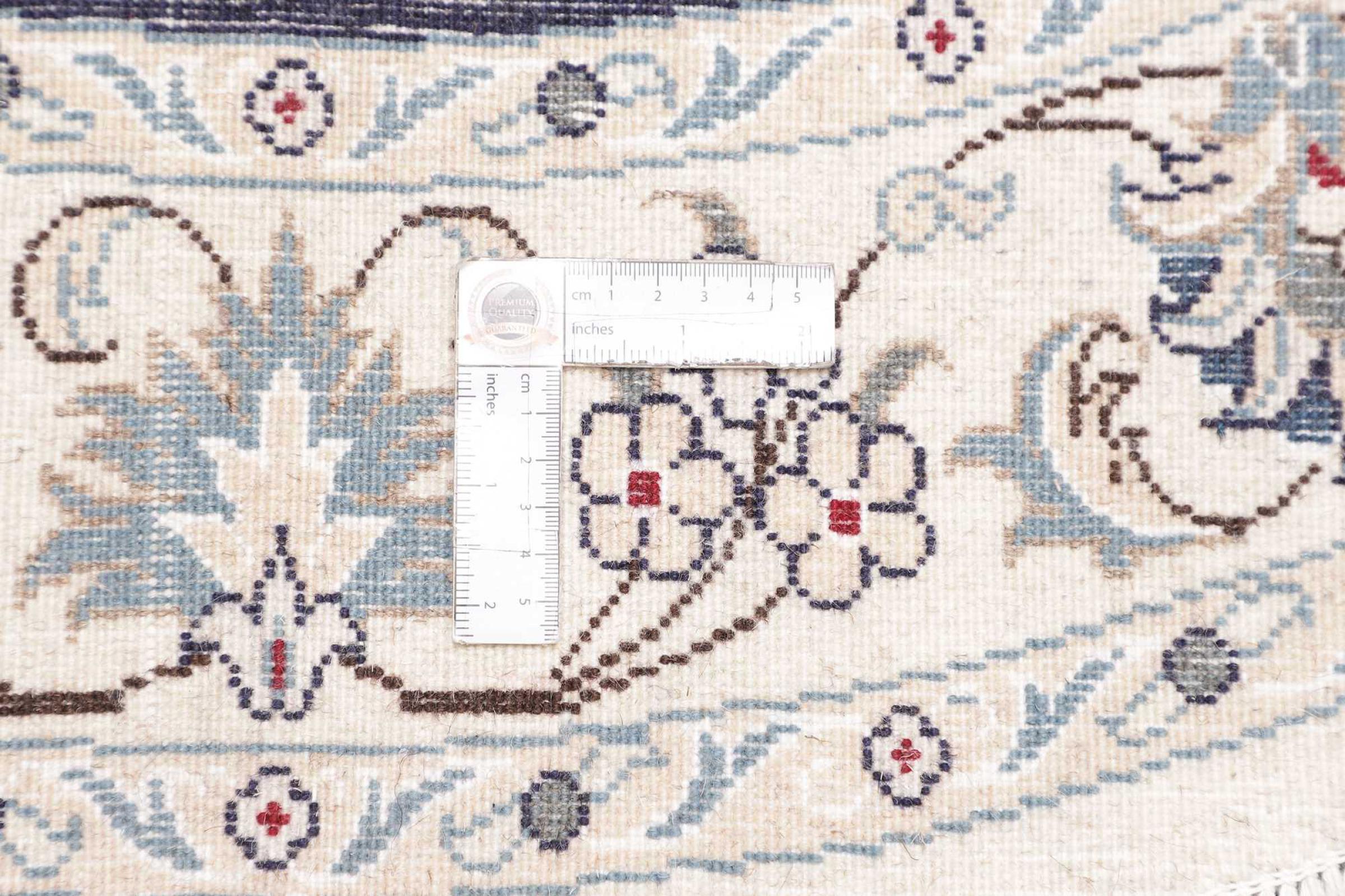この Nain ラグは 12La と評価されています。 ナインらしい配色で上品かつ高貴に見えます。 このペルシャ絨毯は、ダシュテ・カヴィル砂漠の西端にあるナイン市で高品質のウールと天然シルクを使って手織りされました。 12La では、Nain 9La や 6La ほど細かく詳細な装飾が施されていません。
