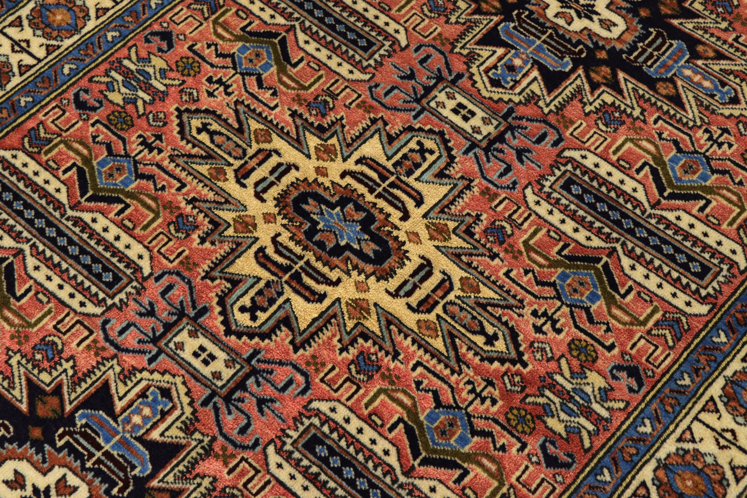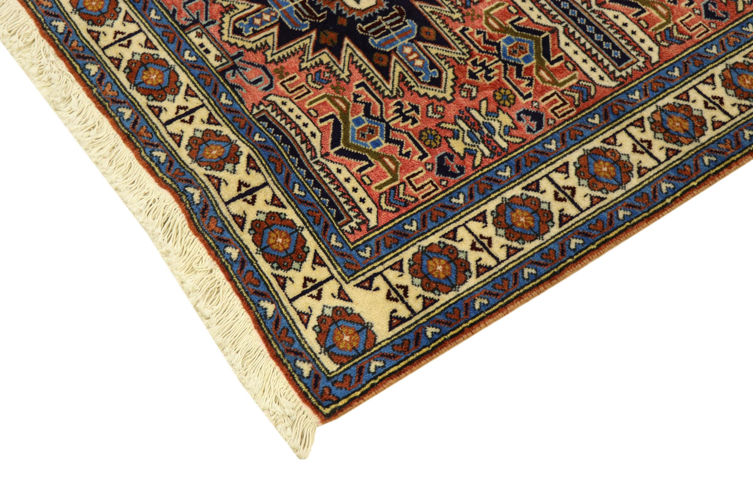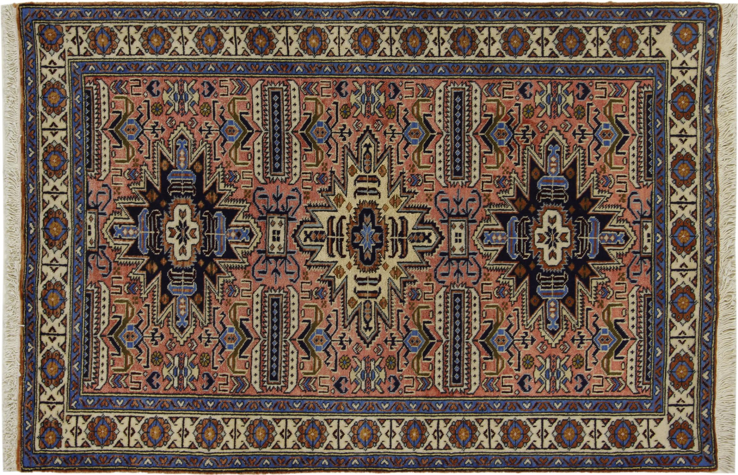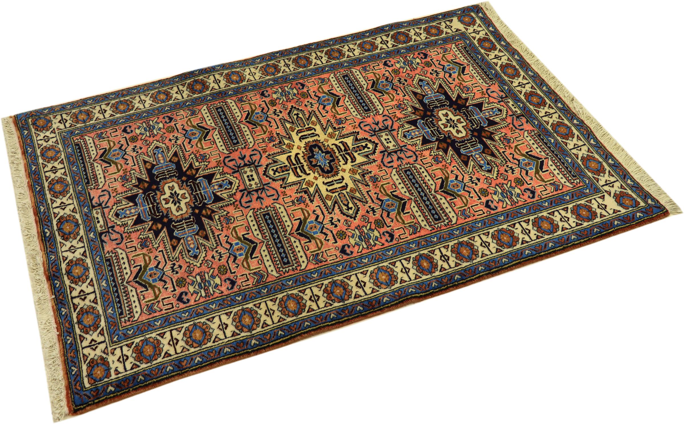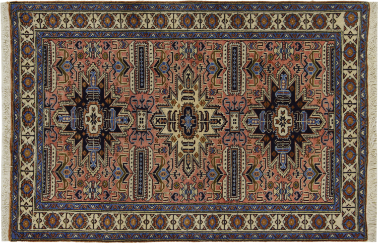 イラン(旧ペルシャ)の村や遊牧民の絨毯に属する絨毯です。この種の絨毯は、昔からの伝統で、小さな町や村で手で結ばれています。遊牧民でさえ、今でもペルシャ絨毯を野外で結びます。絨毯は柄がなく、頭から完全に結びます。古典的な装飾品が特徴で、直線的で幾何学的なパターンで配置されています。 文化的に伝統的な起源を持つこのカーペットは、古代ペルシャを体現するユニークな個性を持っています。