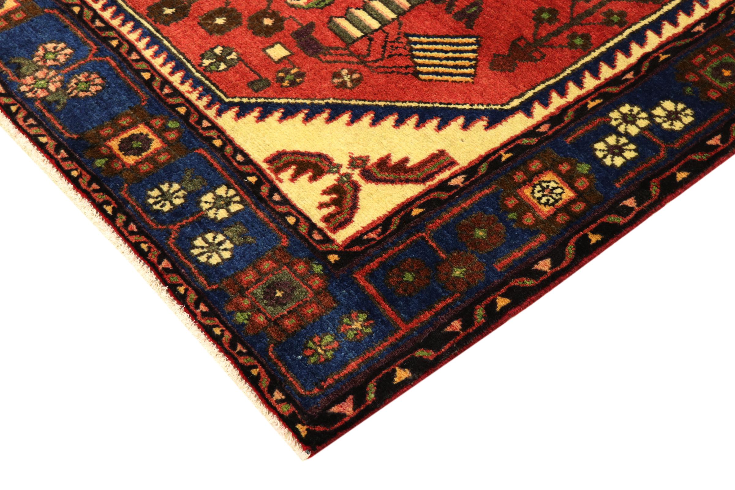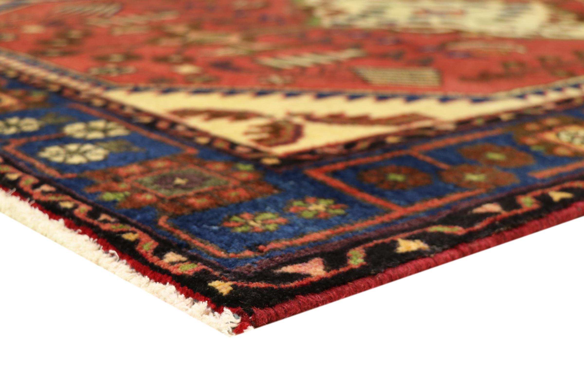 このペルシャ ナハヴァンド絨毯はイラン西部で手織りされたものです。 丈夫なので頻繁に使用する場所にも適しています。 ここで重要な要素は、高品質のウール、光沢のある色、持続可能なノット密度です。 どのナハヴァンドにも、少しの青が欠けてはなりません。