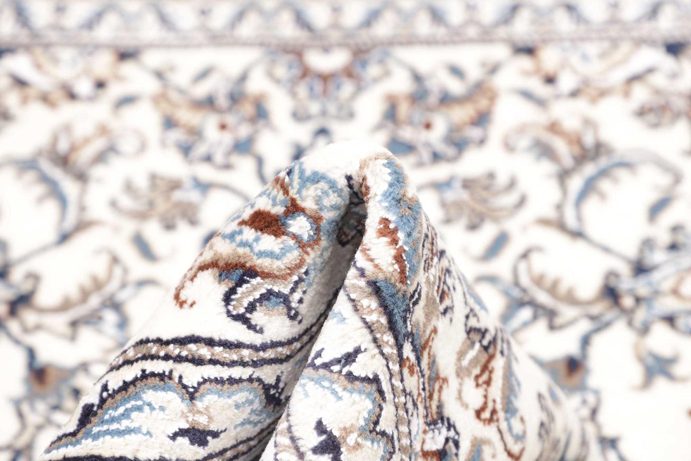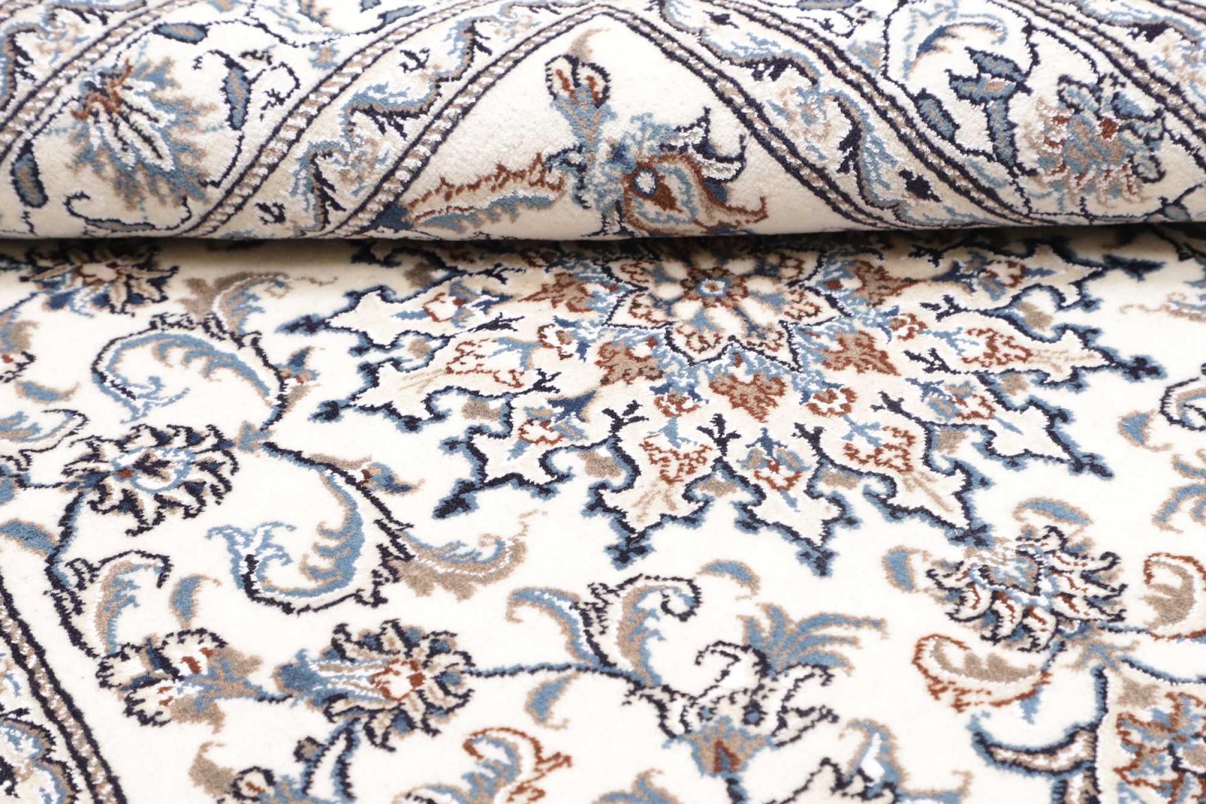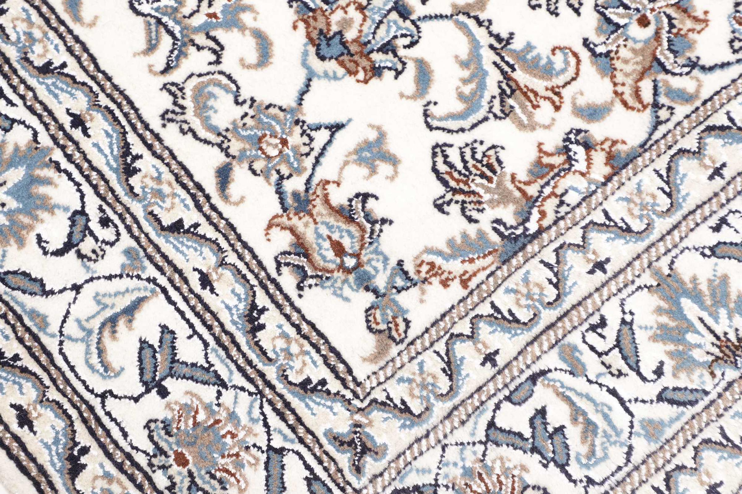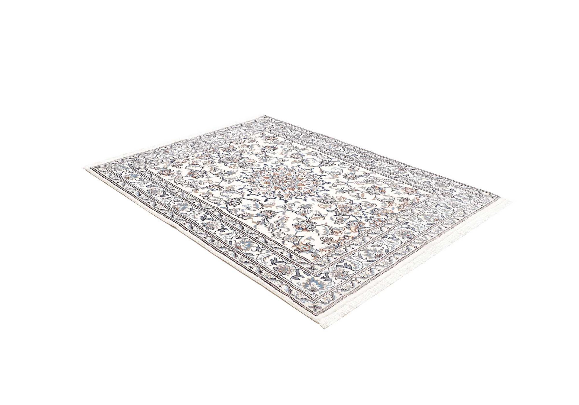 この Nain ラグは 12La と評価されています。 ナインらしい配色で上品かつ高貴に見えます。 このペルシャ絨毯は、ダシュテ・カヴィル砂漠の西端にあるナイン市で高品質のウールと天然シルクを使って手織りされました。 12La では、Nain 9La や 6La ほど細かく詳細な装飾が施されていません。