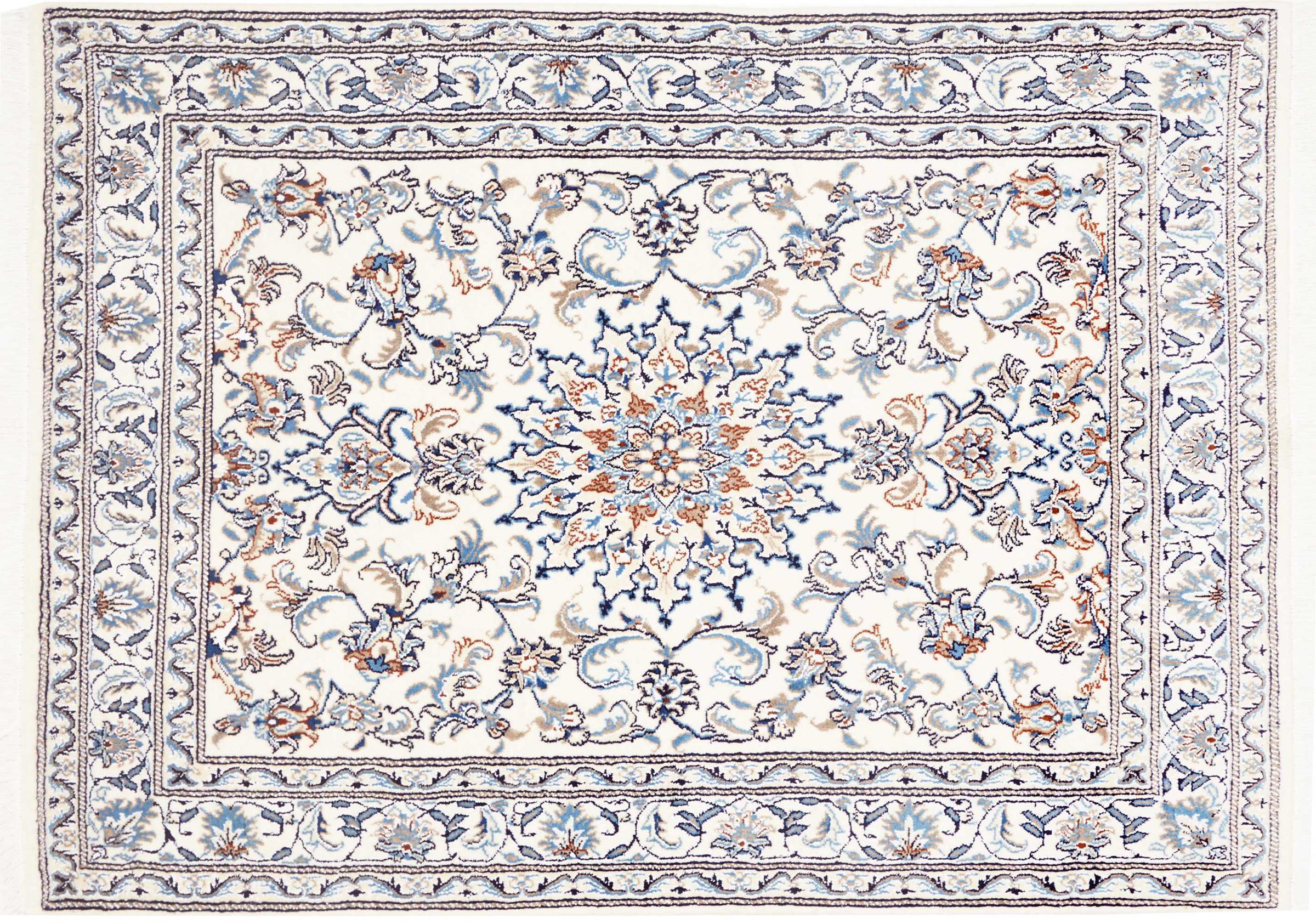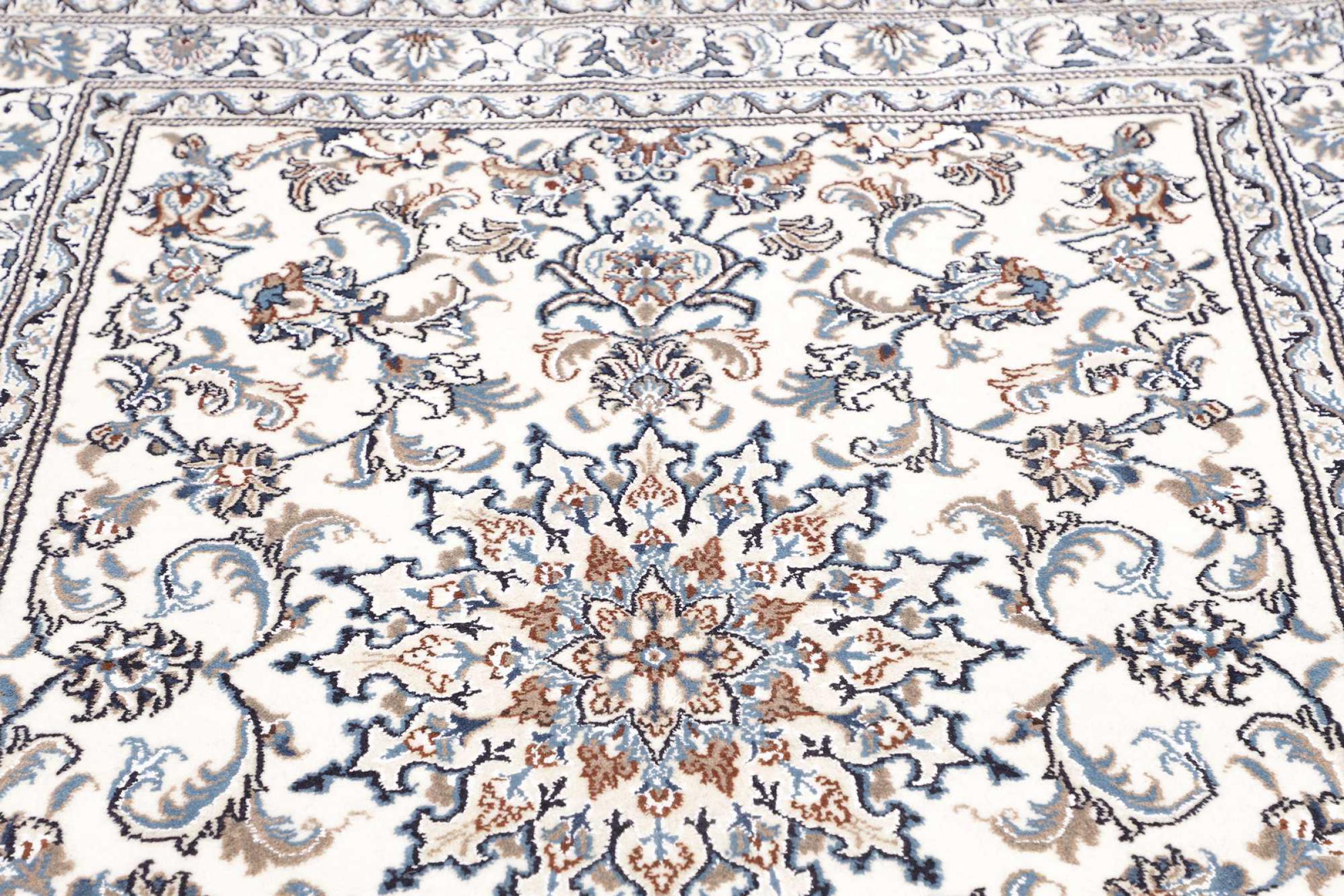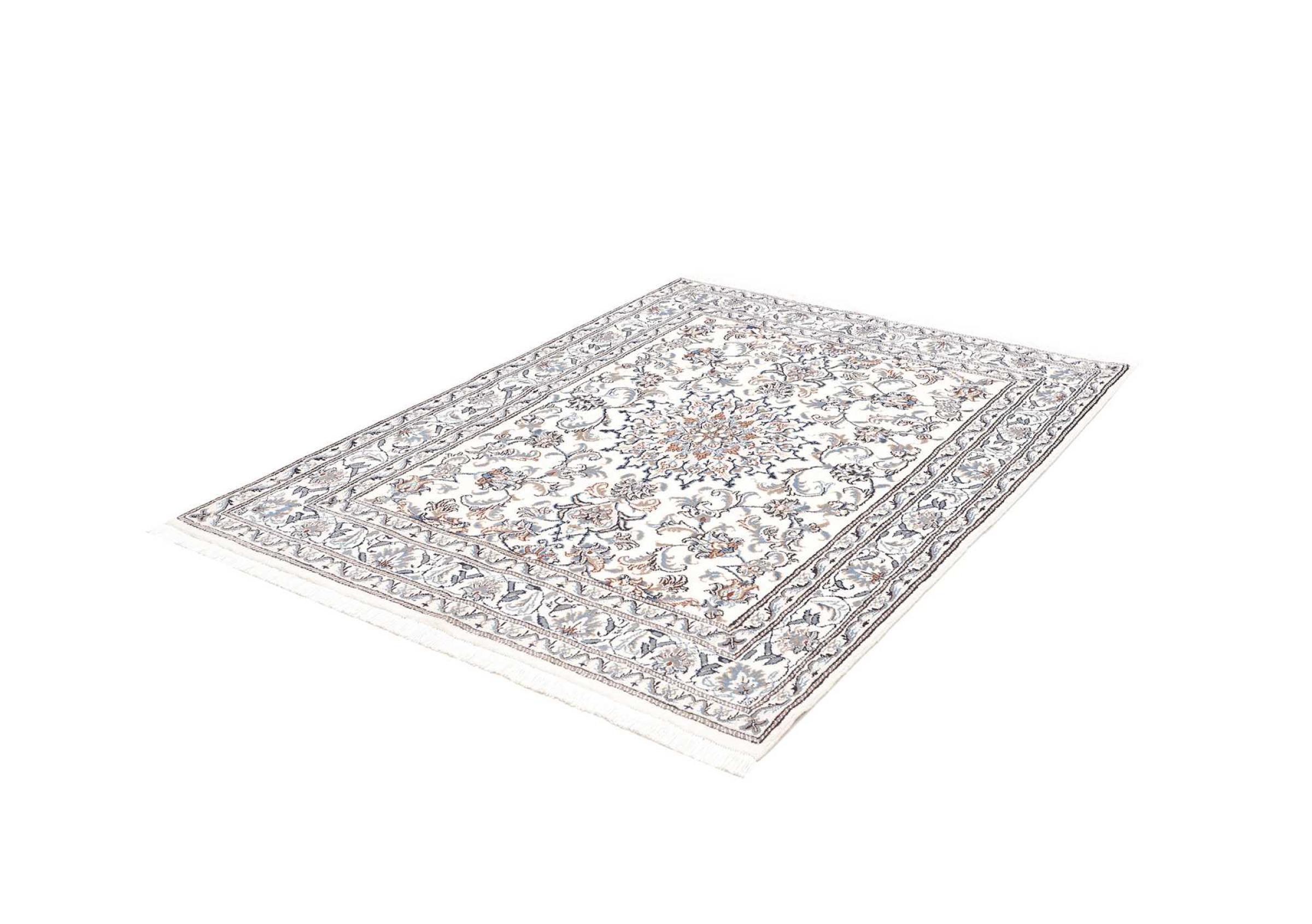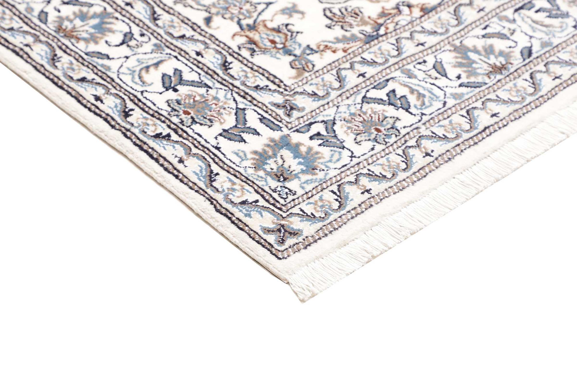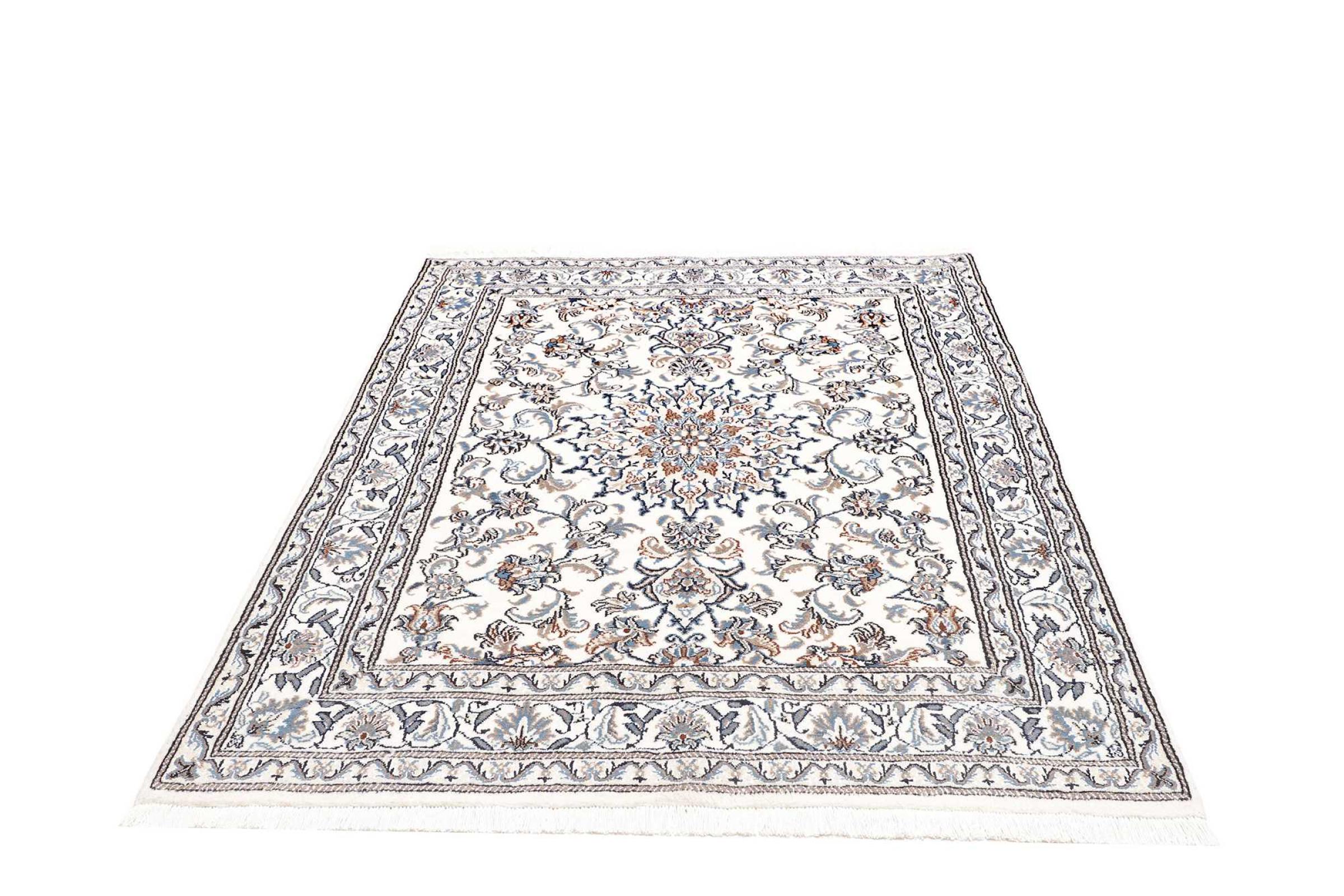 この Nain ラグは 12La と評価されています。 ナインらしい配色で上品かつ高貴に見えます。 このペルシャ絨毯は、ダシュテ・カヴィル砂漠の西端にあるナイン市で高品質のウールと天然シルクを使って手織りされました。 12La では、Nain 9La や 6La ほど細かく詳細な装飾が施されていません。