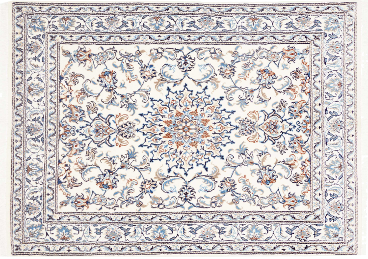 イランで最大の砂漠の1つの国境にあるナイン市のカーペットは、世界で最も有名なペルシャ絨毯の1つです。 彼らの典型的なデザインは、花の装飾品、メダリオン、ベージュと赤または青の色と紛れもないものです。 4La、6La、9La、12Laという名前のおかげで、Nainカーペットの繊細さが一目でわかります。 「ラ」の数値が低いほど、ノット密度が高くなり、カーペットの繊度が高くなります。